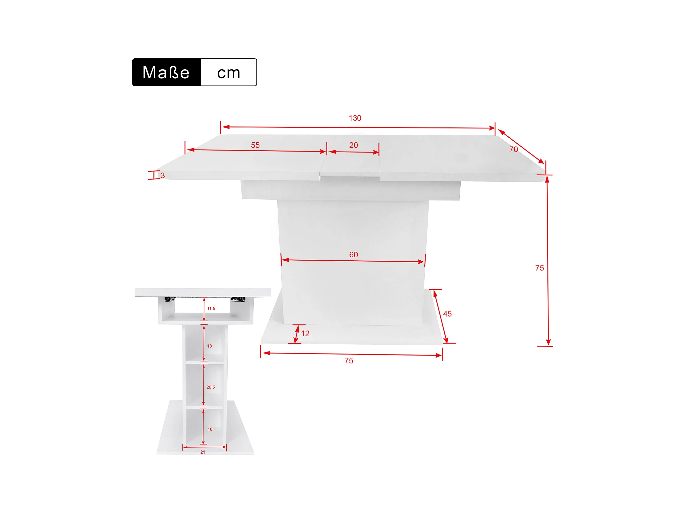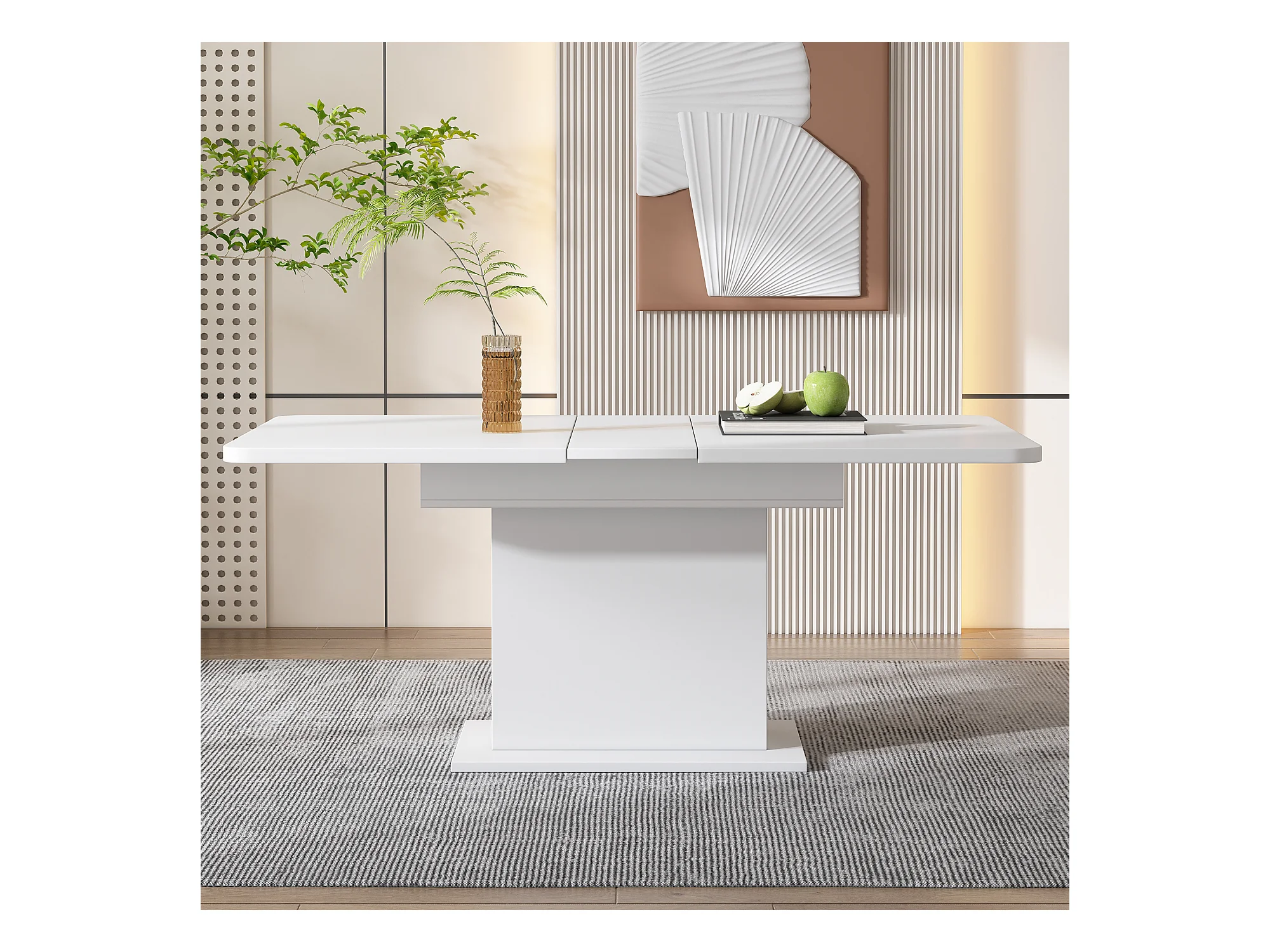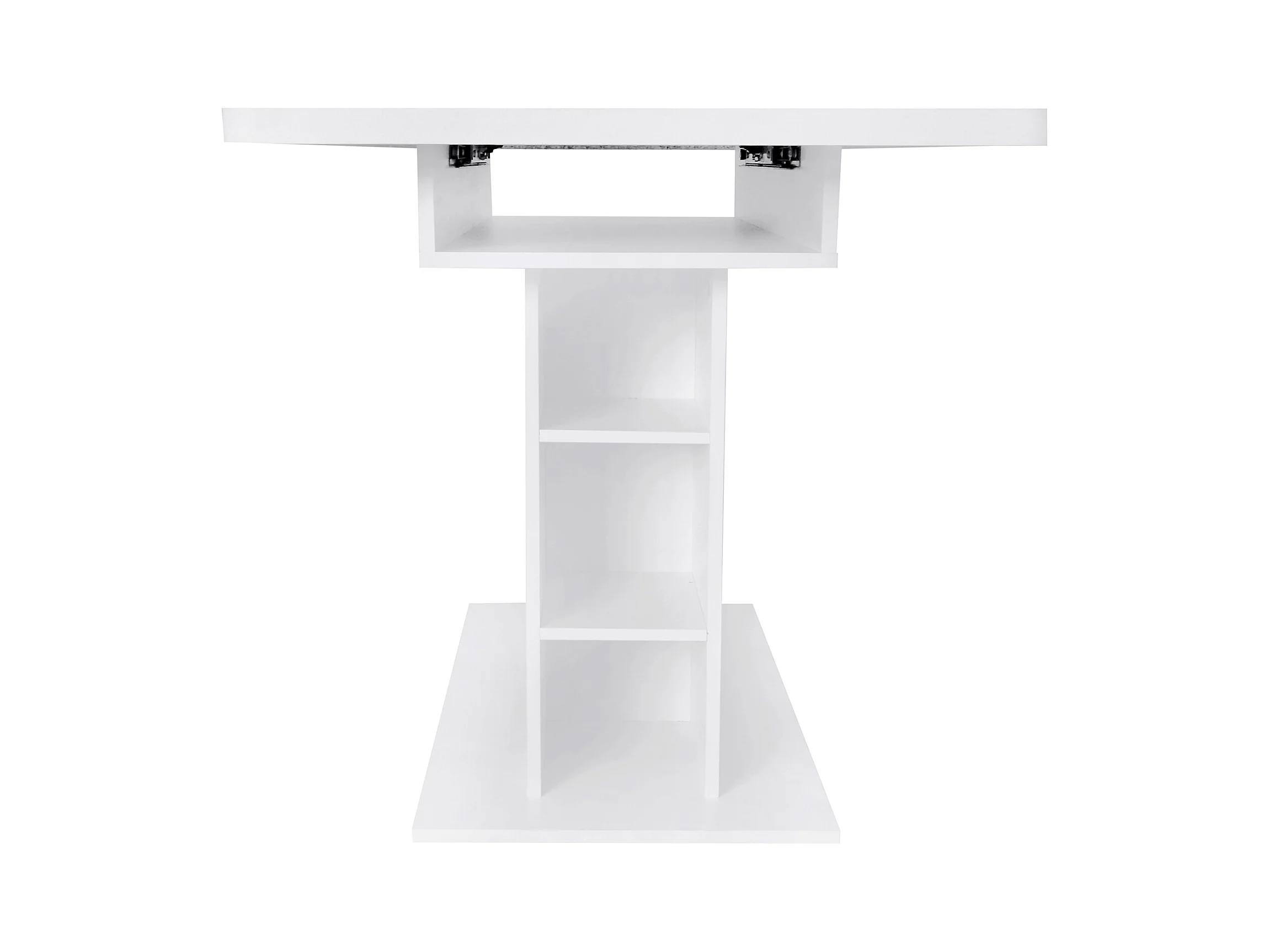 Table à manger rectangulaire - Table à manger blanche avec rangement et plateau réglable - pour salle à manger et salon