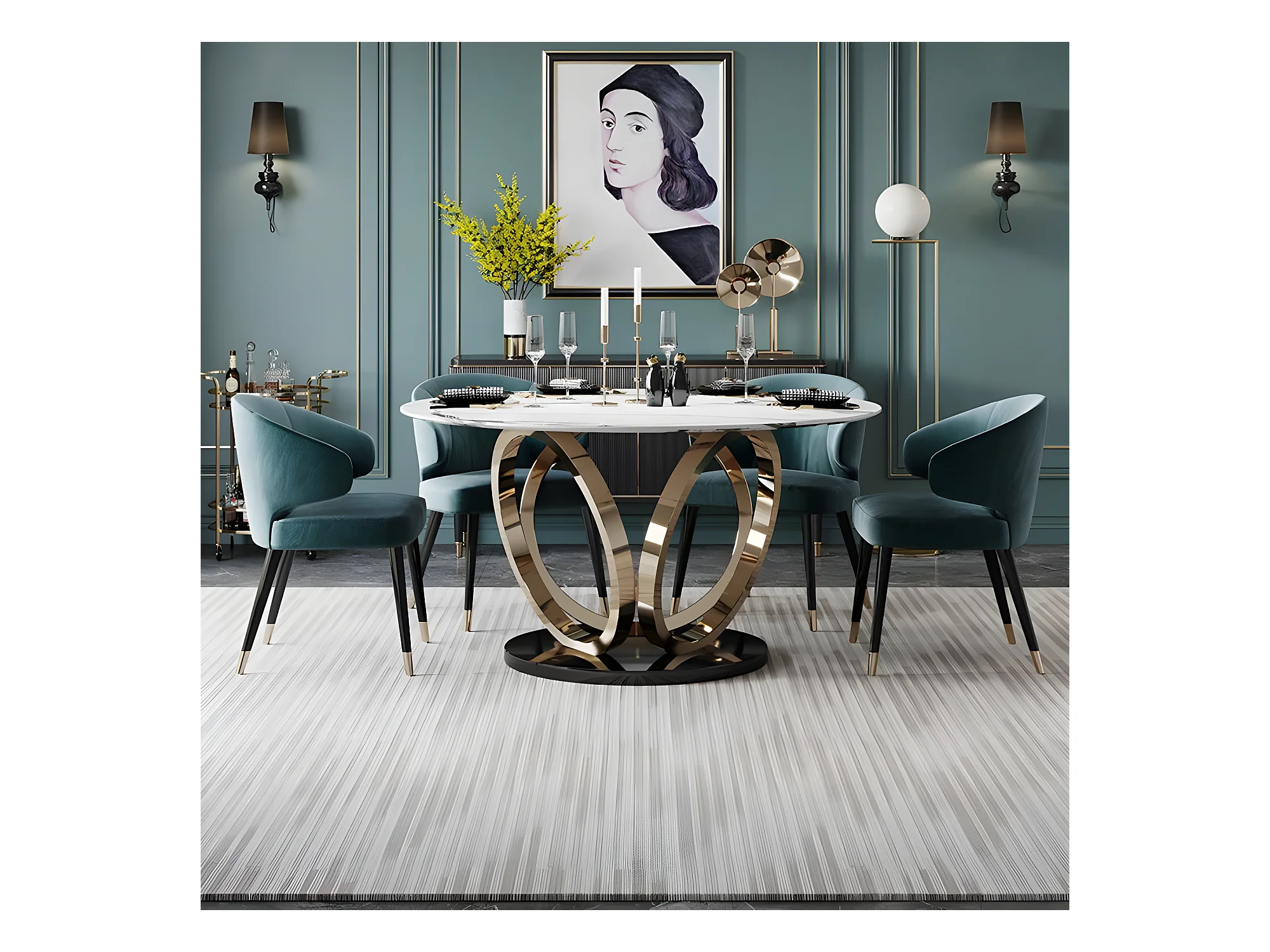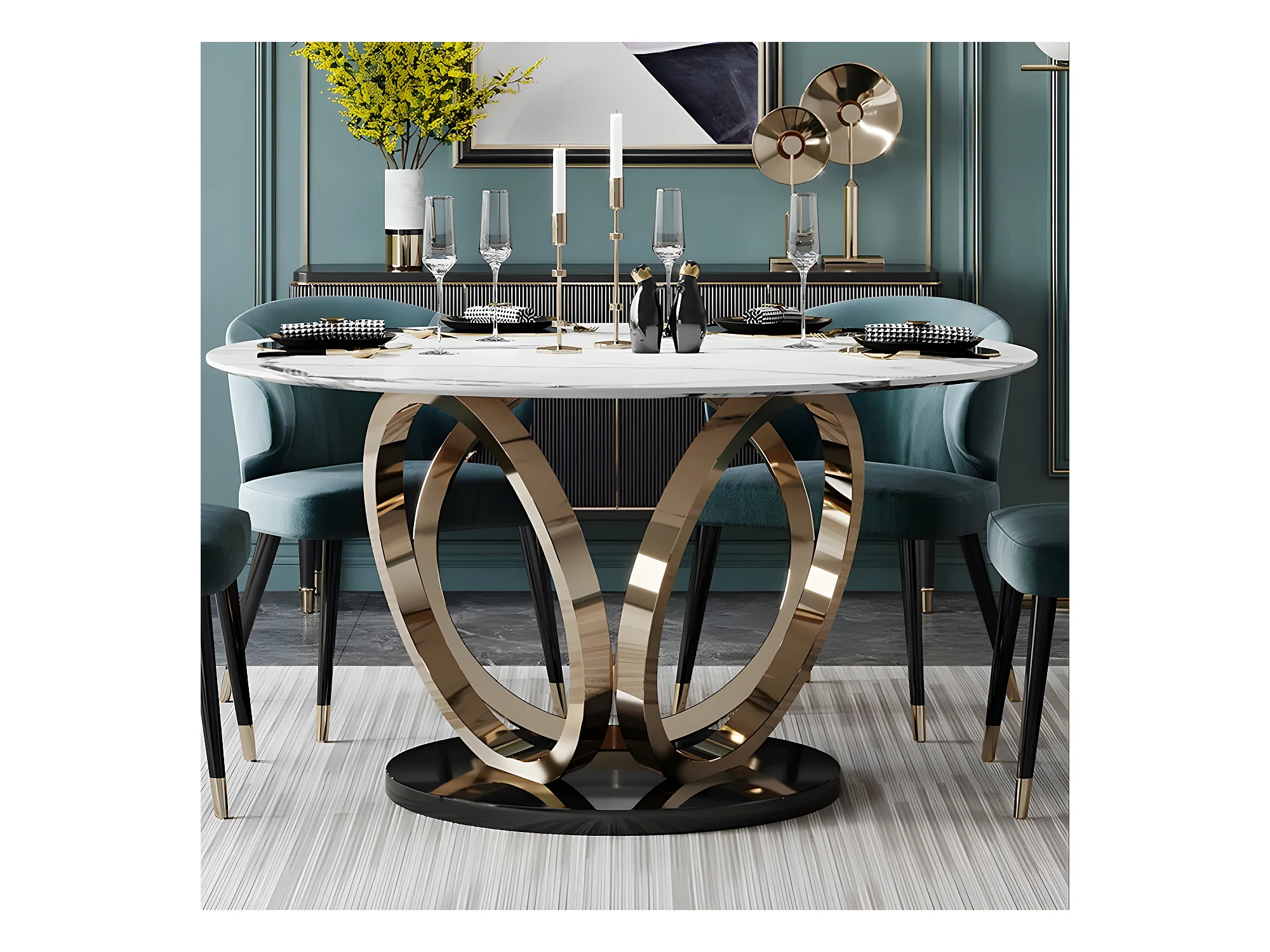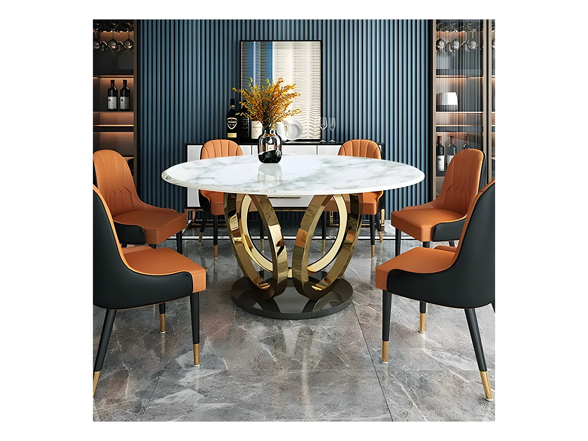 Table À Manger Rond Céramique Effet Marbre Blanc Pied Couleur Or Alliance