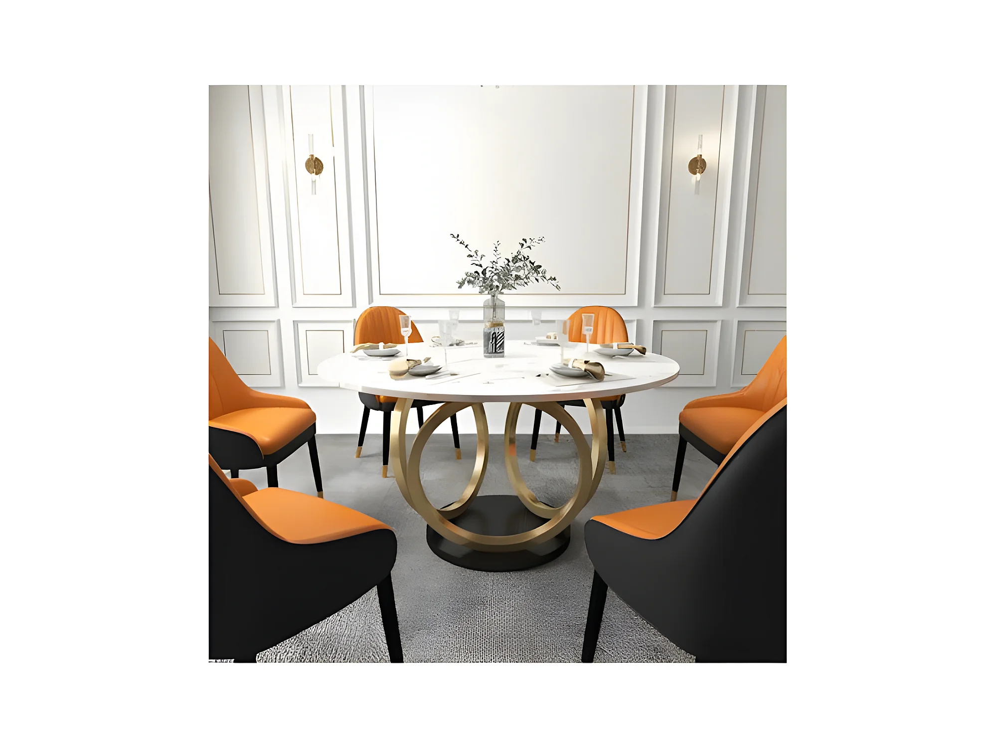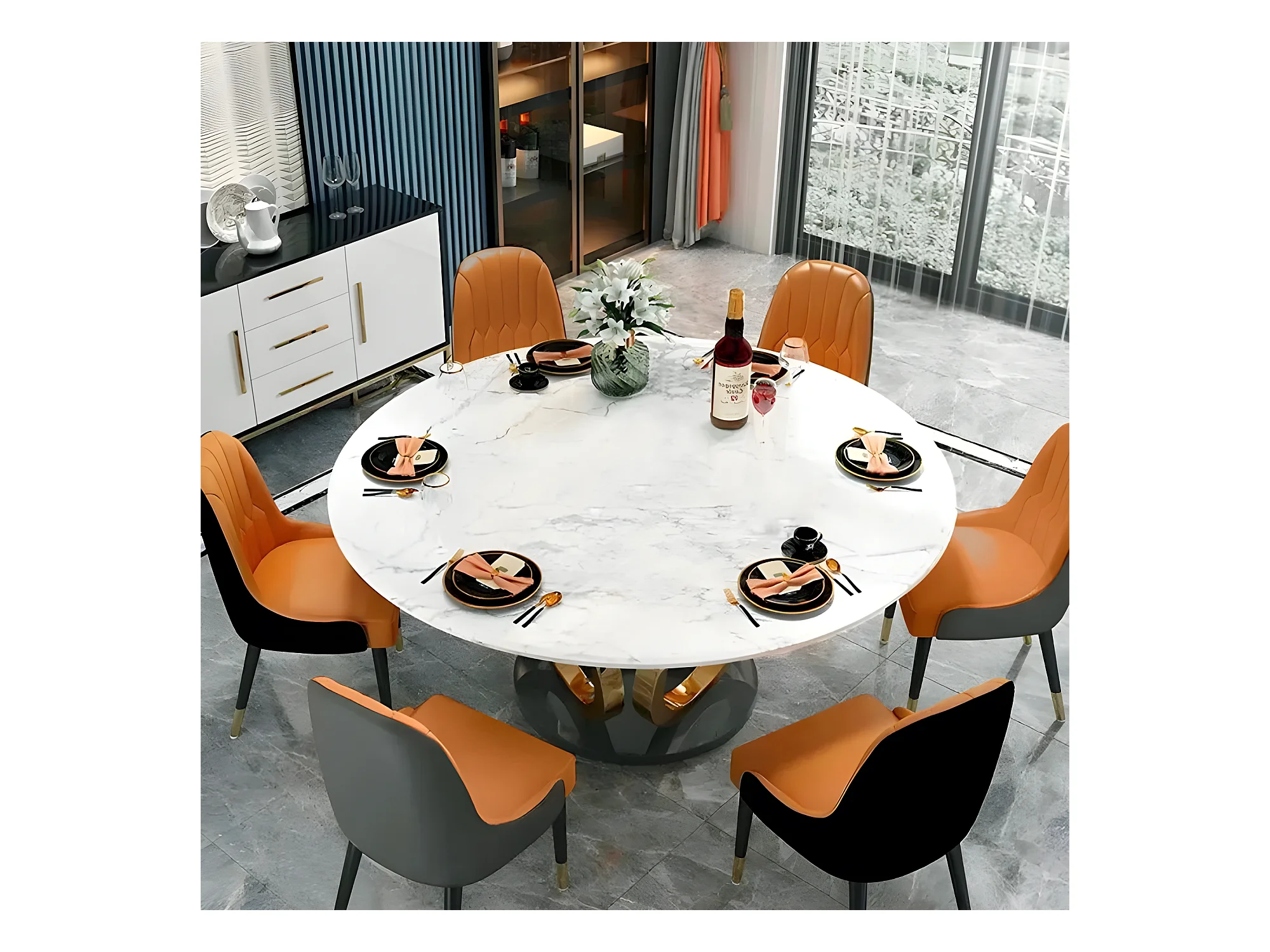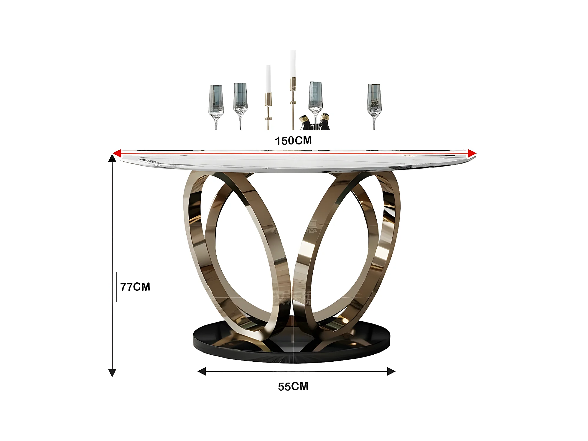 Table À Manger Rond Céramique Effet Marbre Blanc Pied Couleur Or Alliance