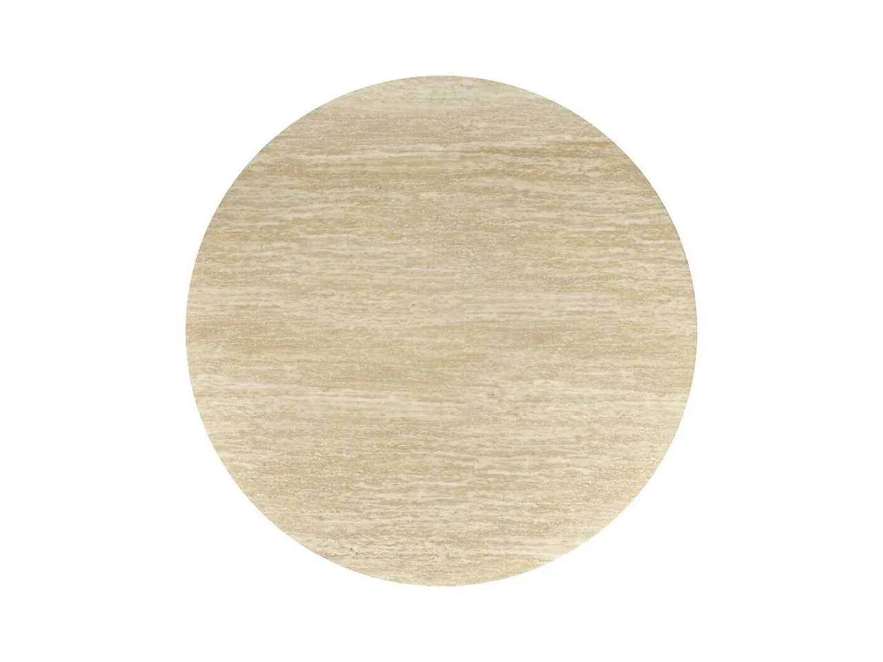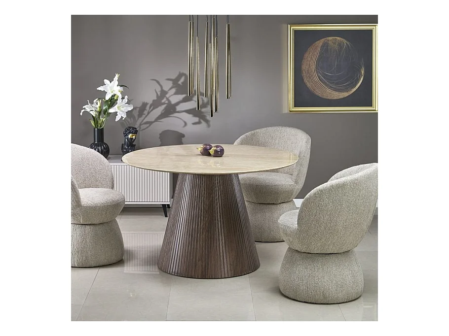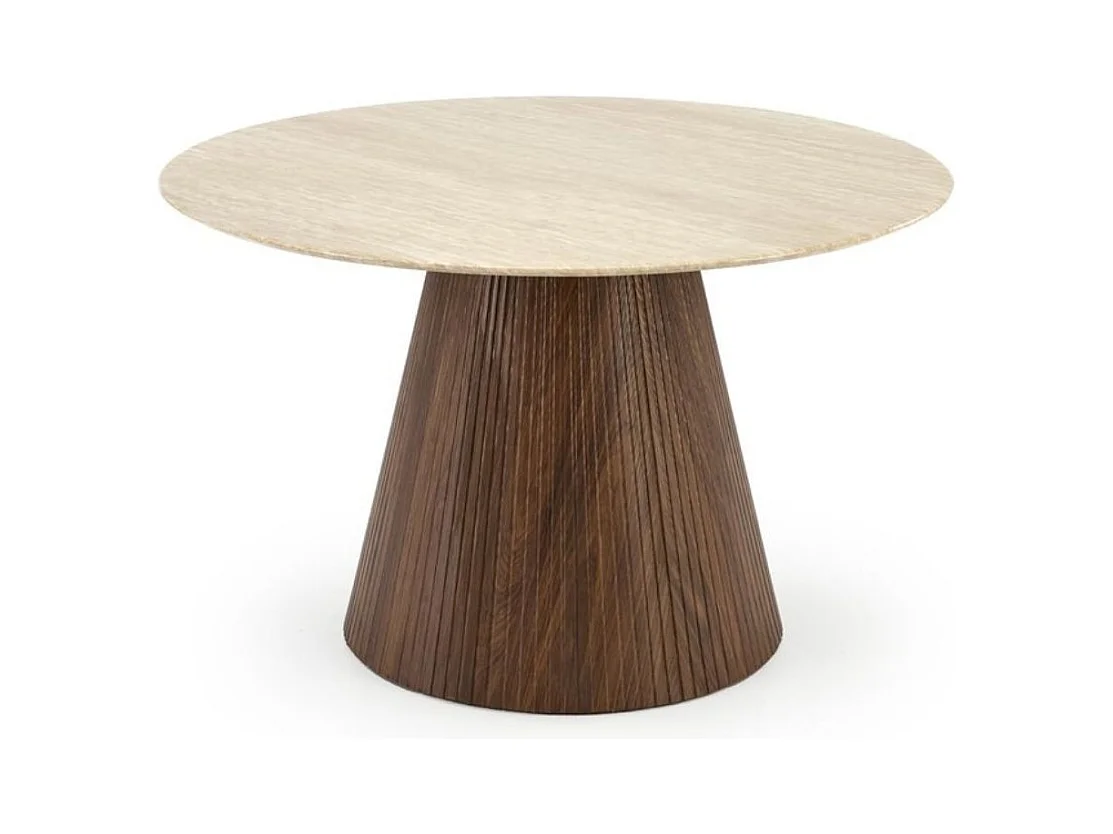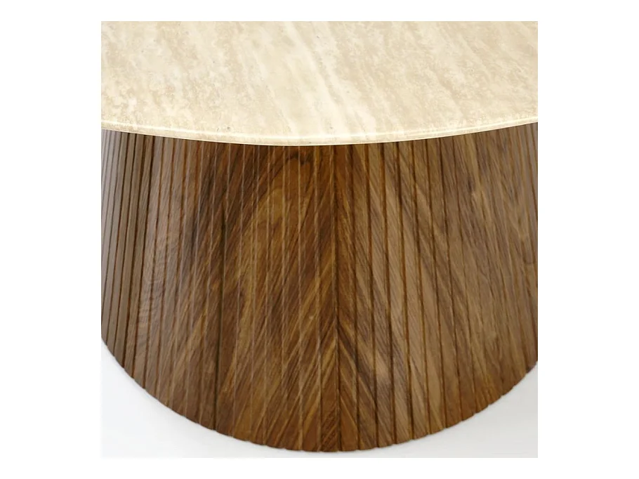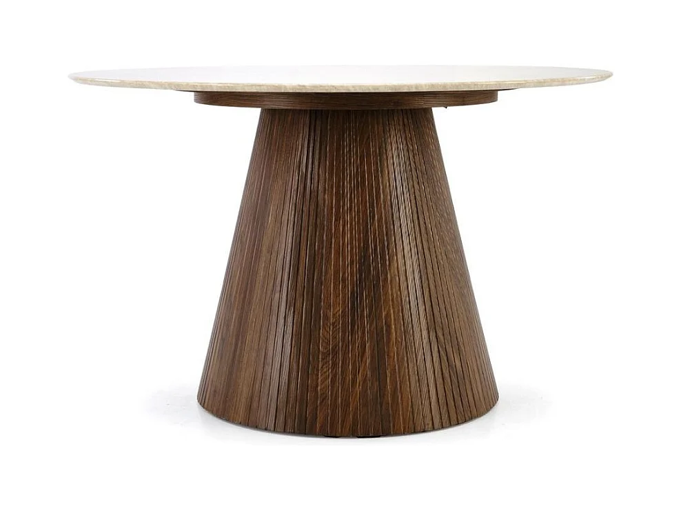 Table a manger ronde 120 cm plateau marbre travertin et pied bois MIKA