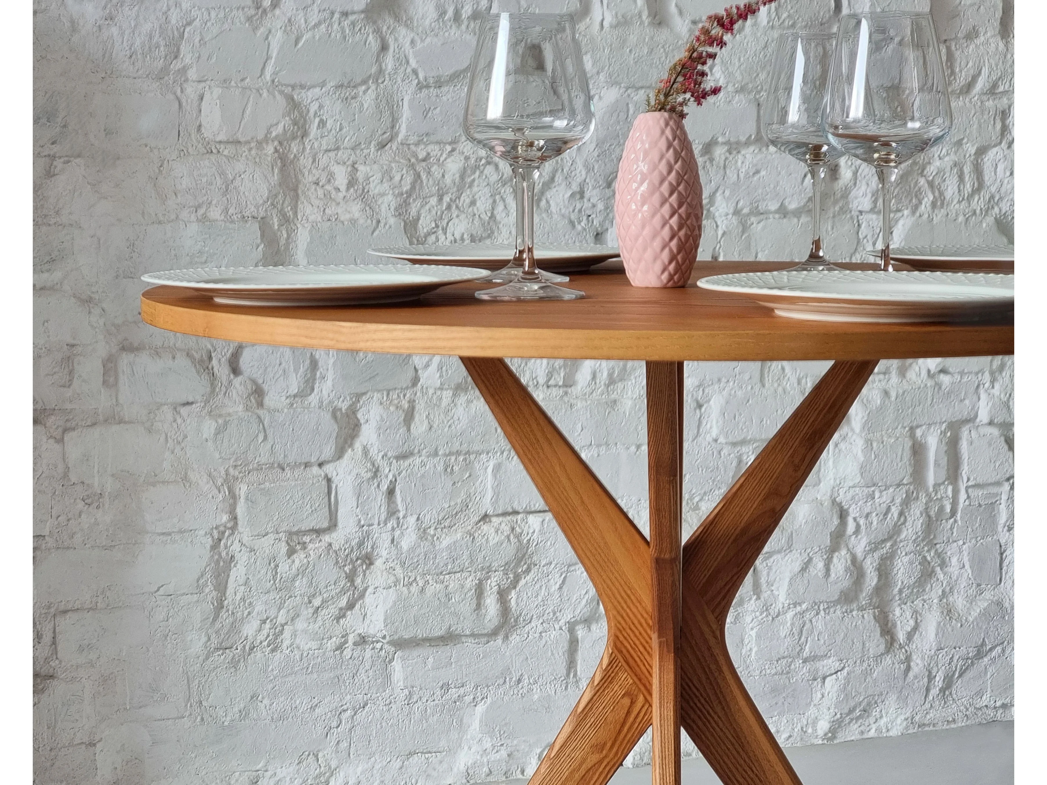 Table à manger ronde 60 cm Jubi frêne teinté noyer