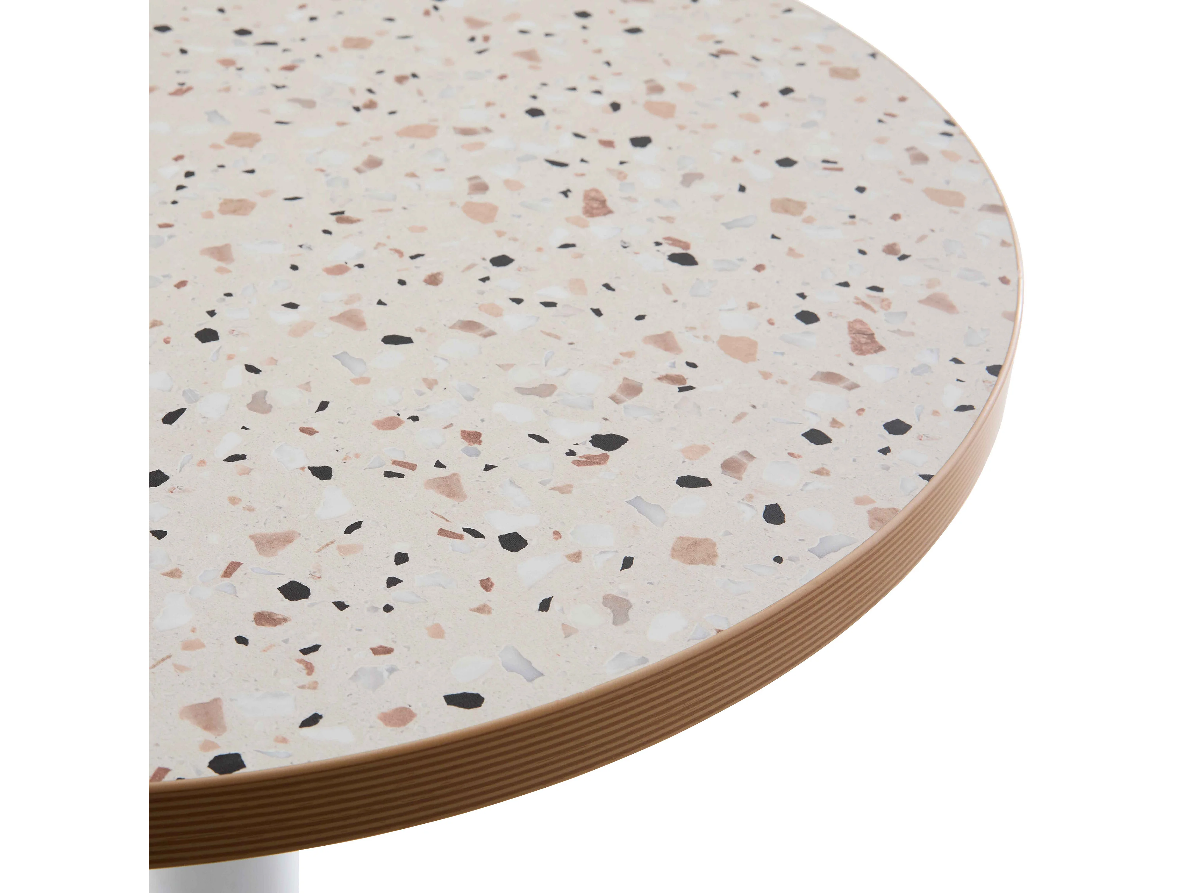 Table à manger ronde 60 cm pied blanc et revêtement terrazzo