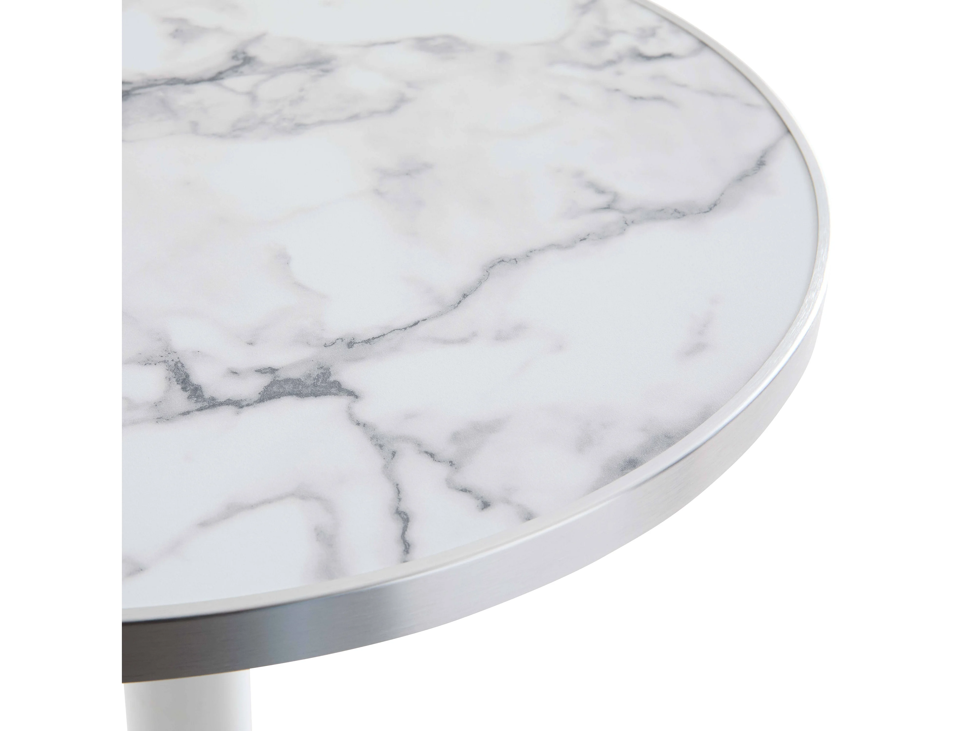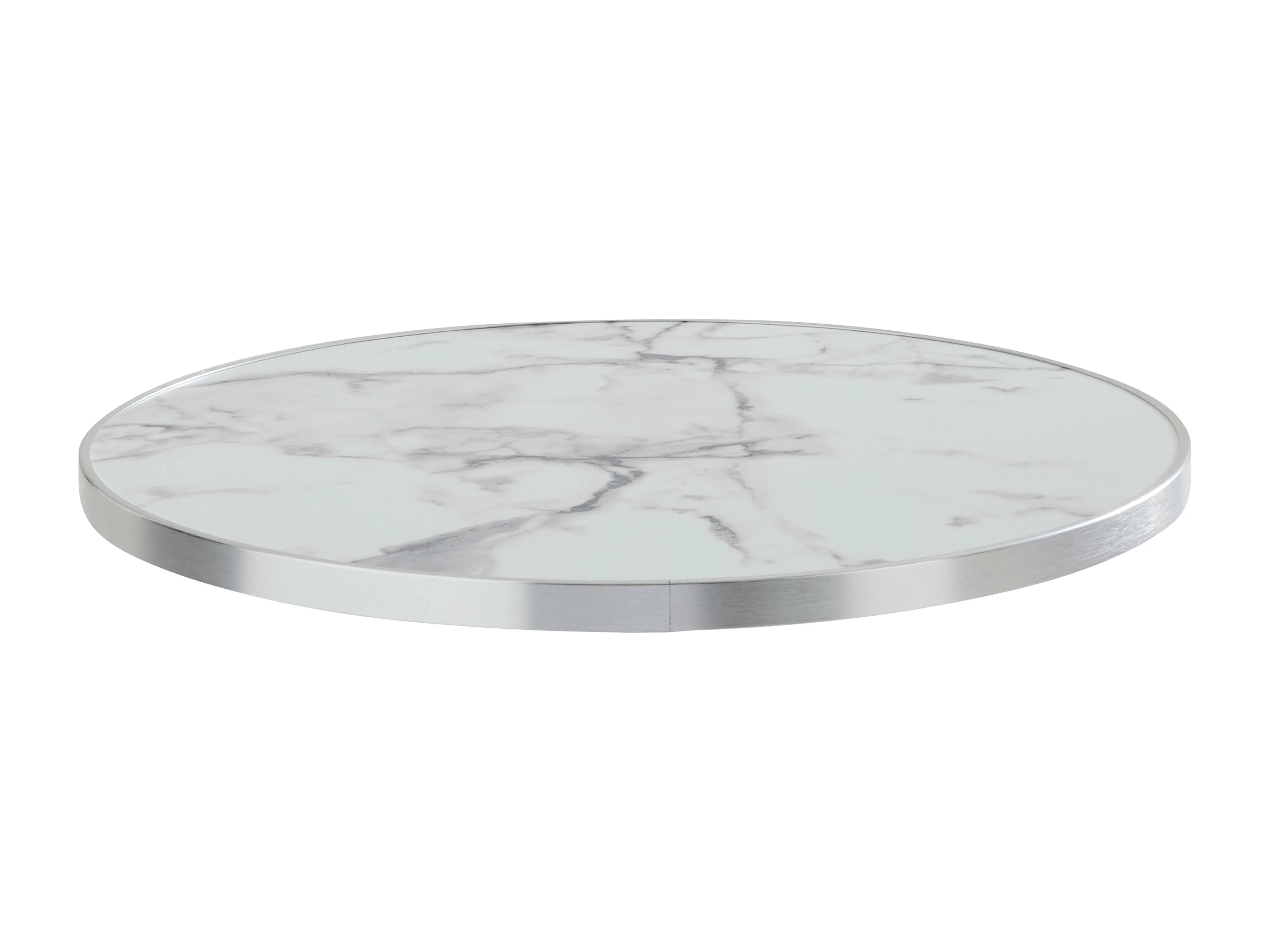 Table à manger ronde 60 cm plateau marbre blanc/argent et pied argenté