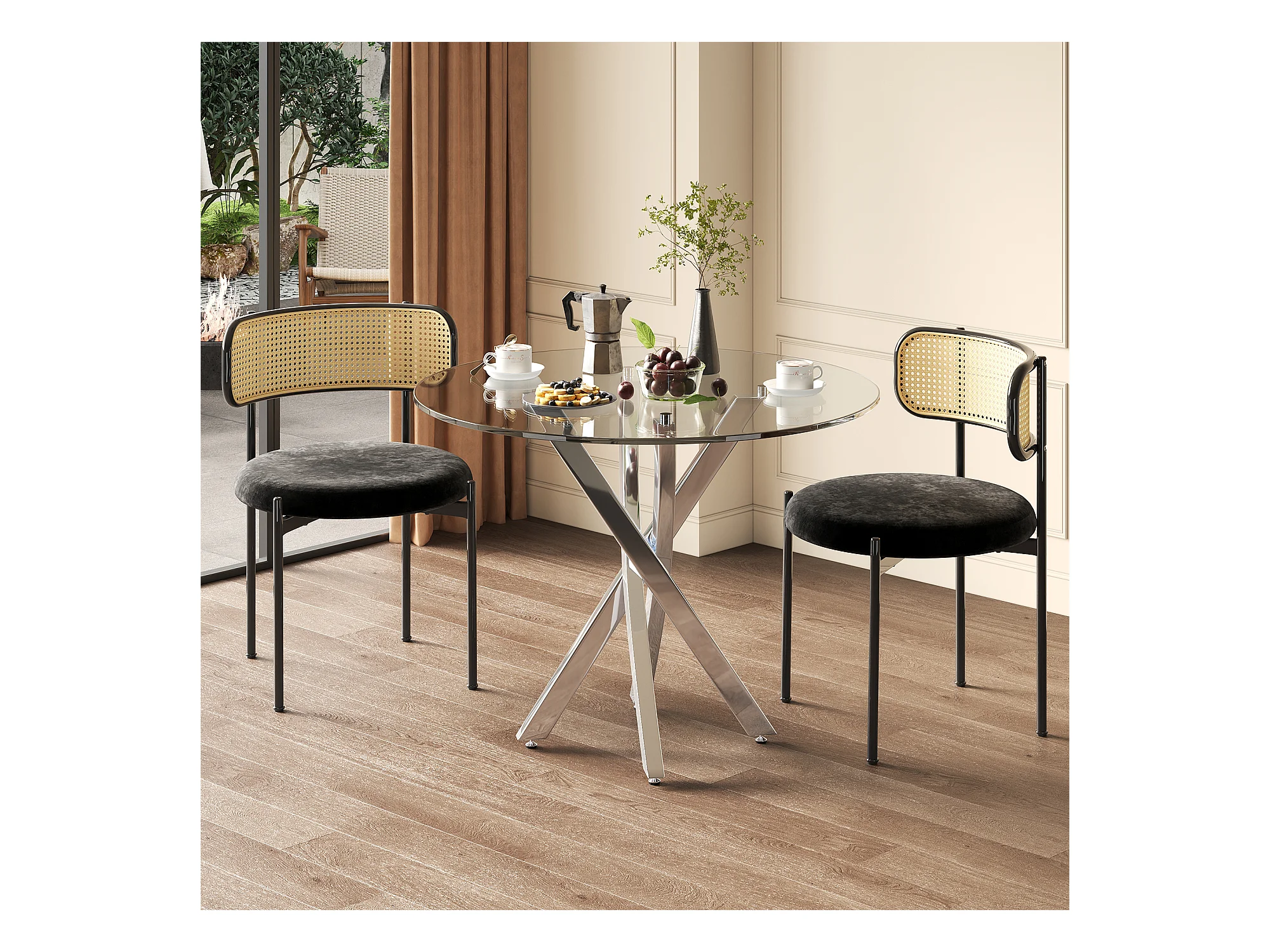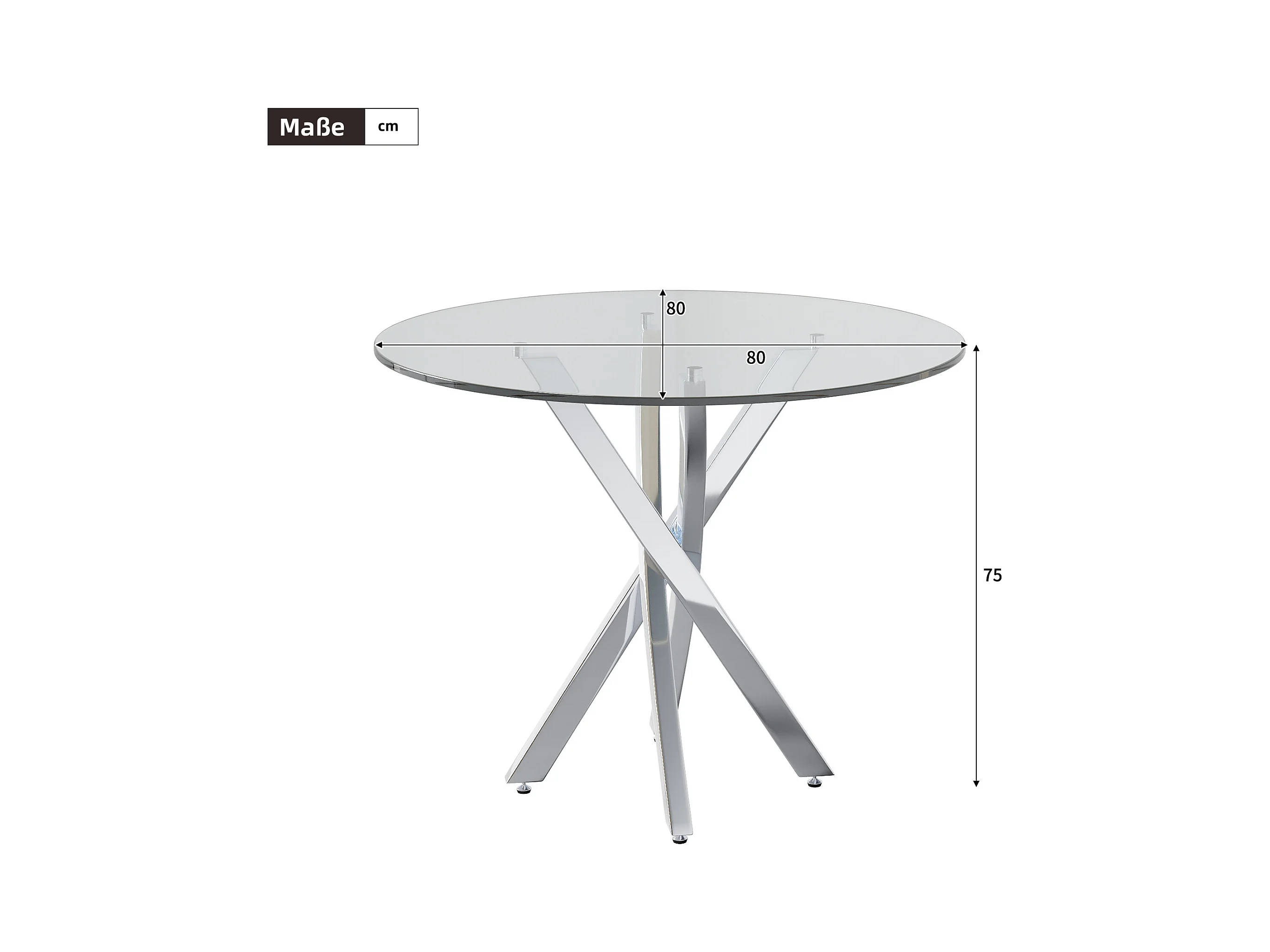 Table à manger ronde 80x80x75 cm - plateau en verre trempé - pieds galvanisés - argent