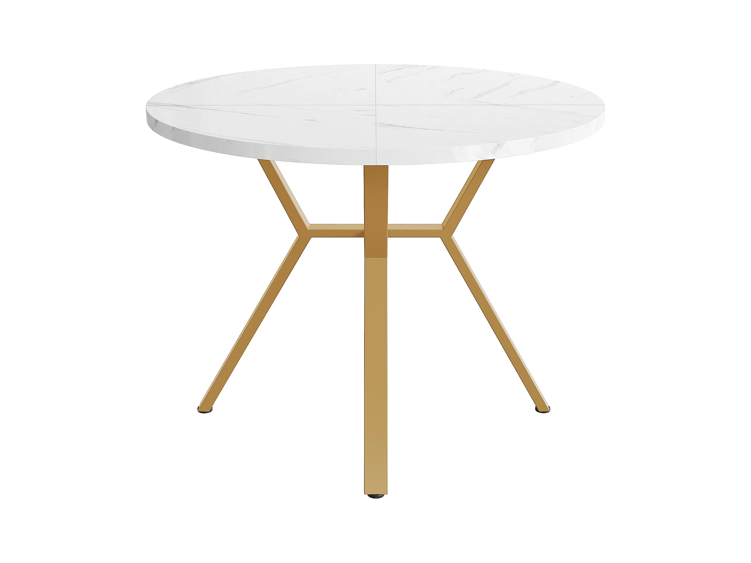 Table ronde pour salle à manger, MDF imitation marbre, pieds métalliques dorés, (100x100x76 cm)