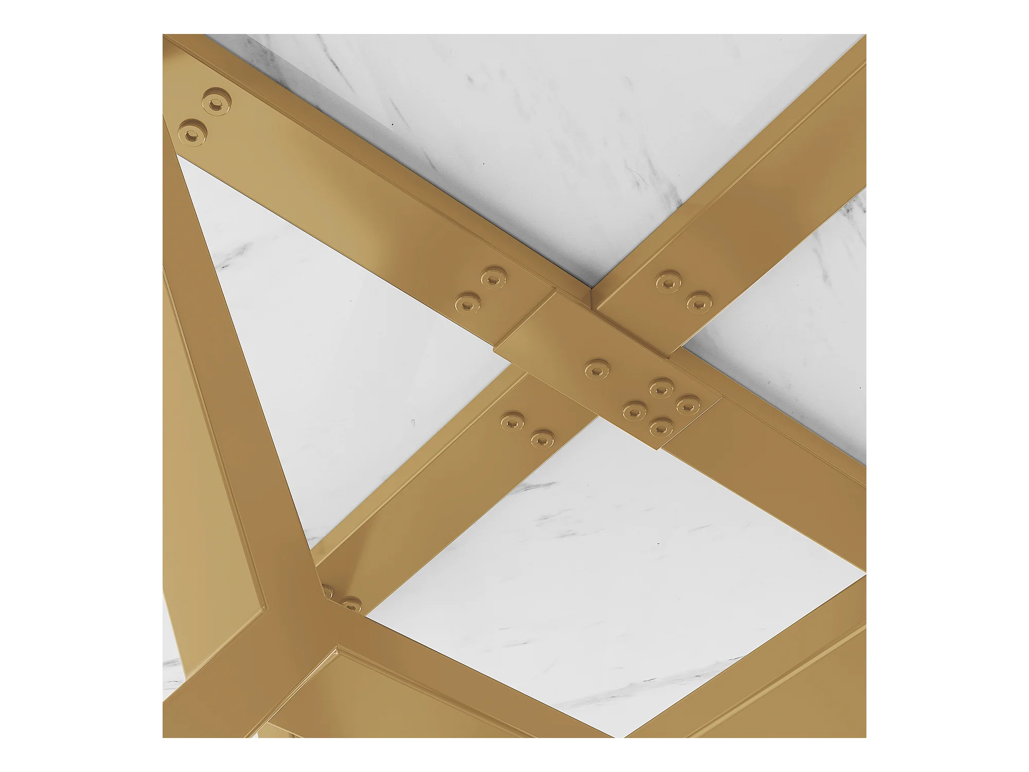 Table ronde pour salle à manger, design moderne, plateau MDF imitation marbre, pieds métalliques dorés, (80x80x76 cm)