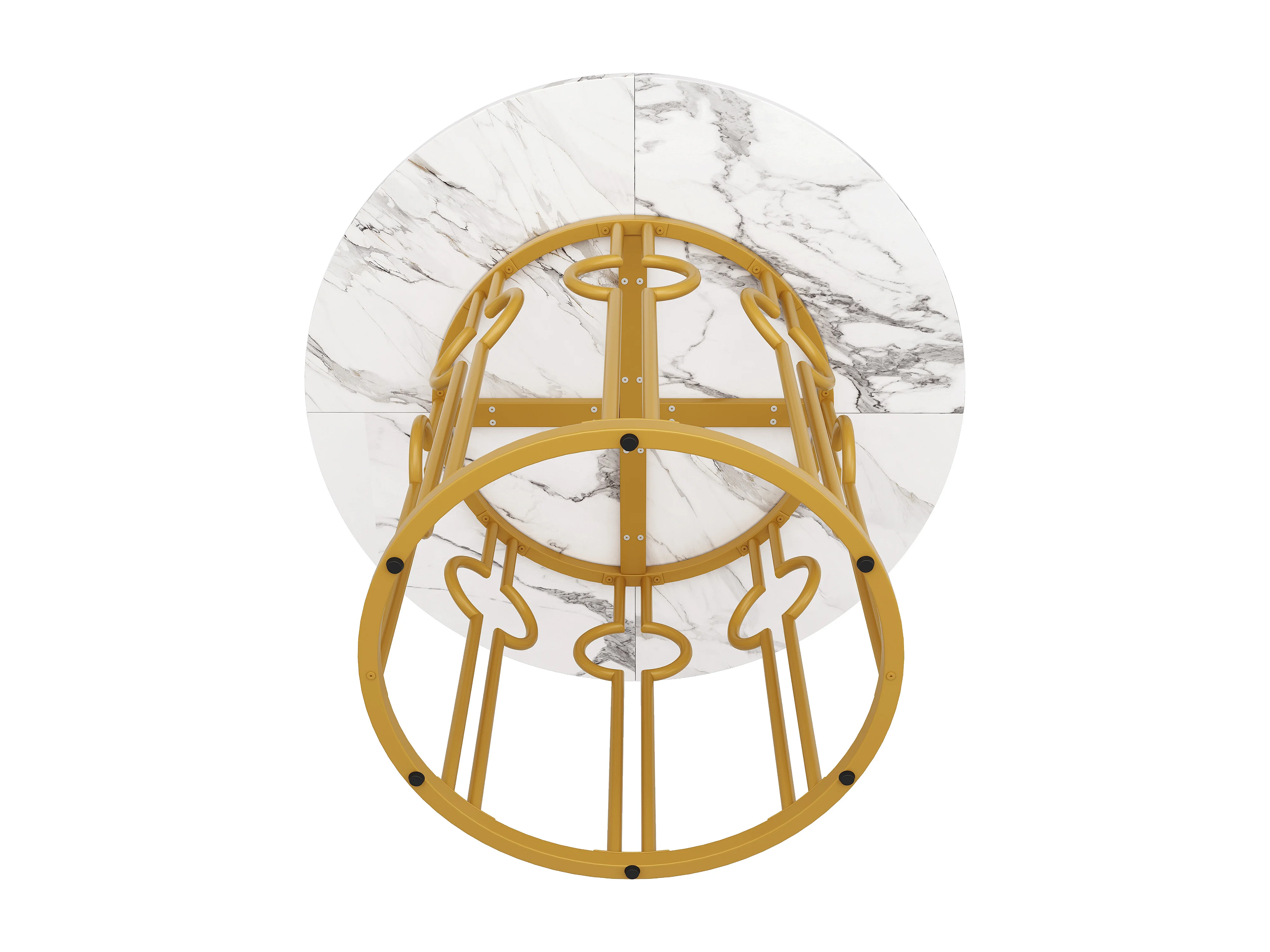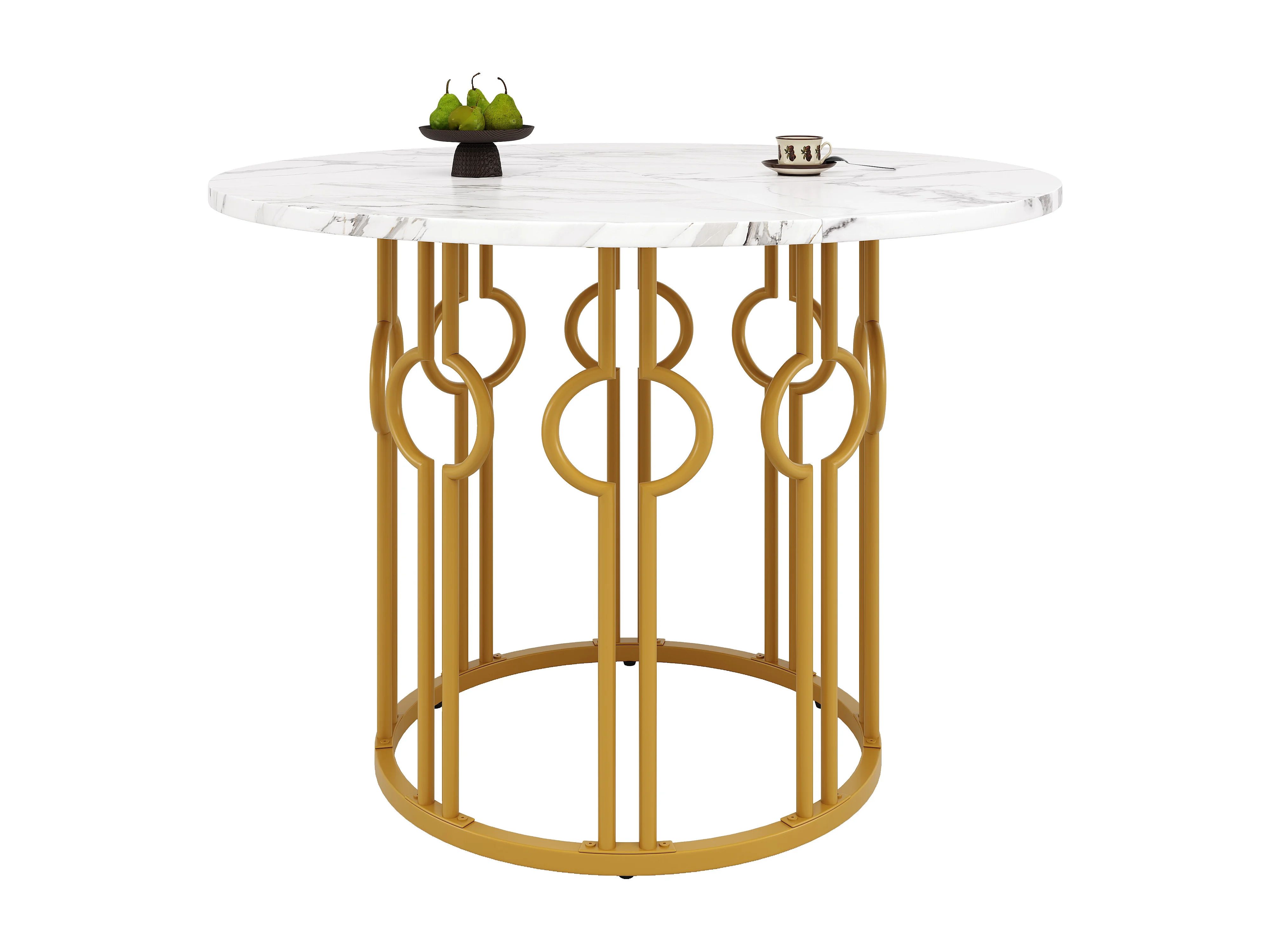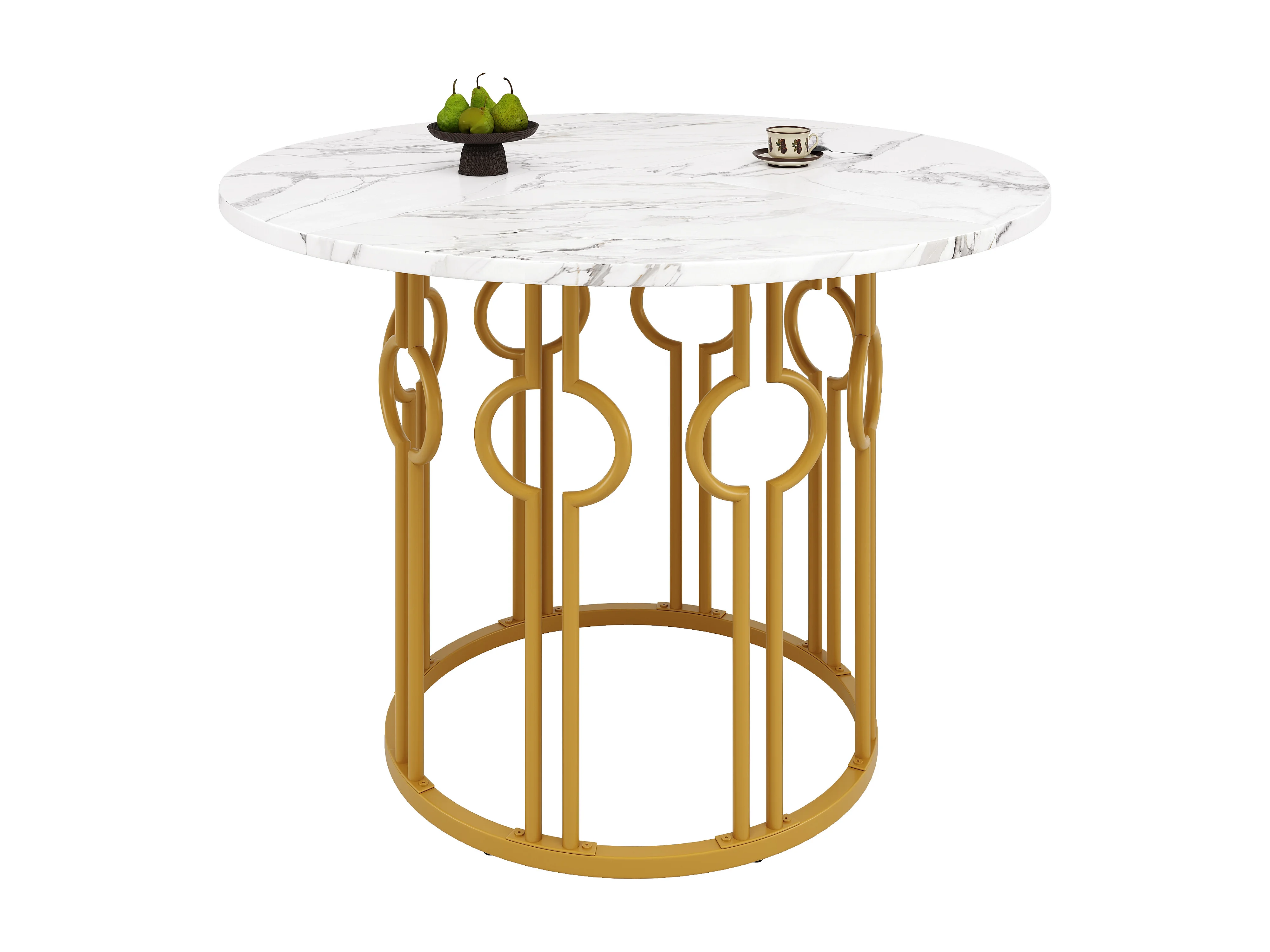 Table à manger ronde avec plateau en placage marbre blanc, pieds central en métal doré - 100x100x76cm