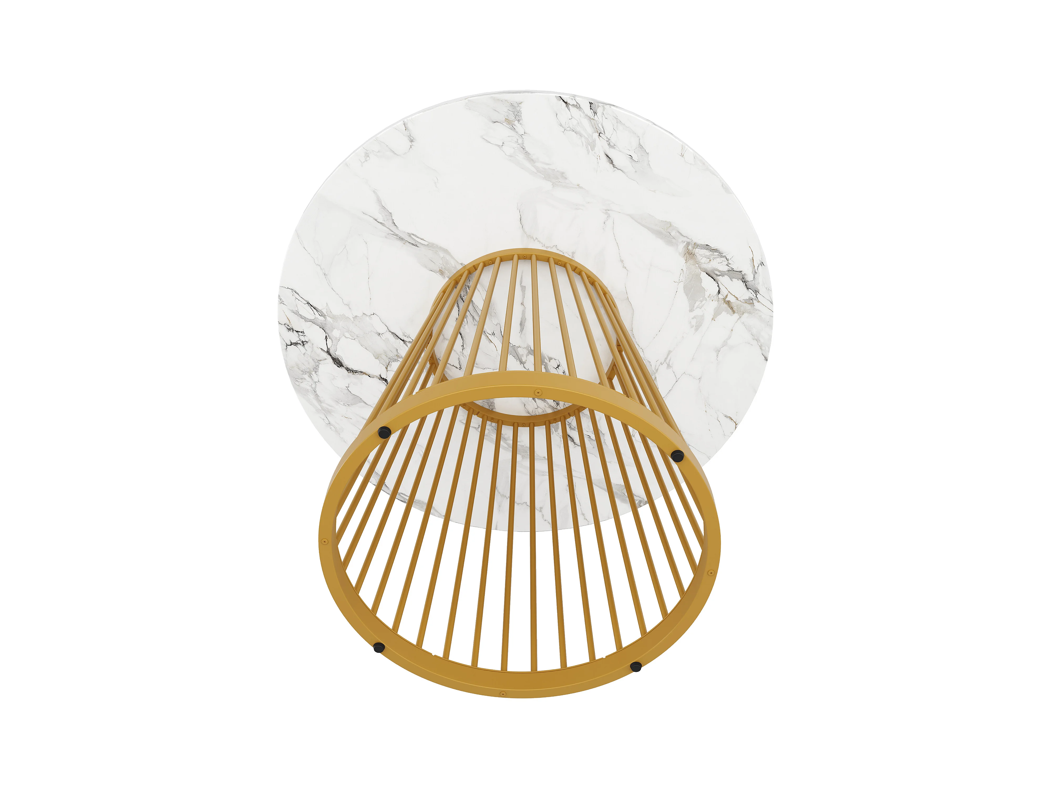 Table à manger ronde avec plateau en placage marbre blanc et 1 étagère de jambe, cadre en métal doré - 80x80x76cm