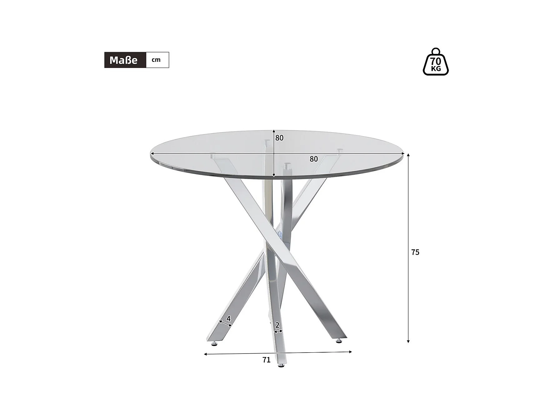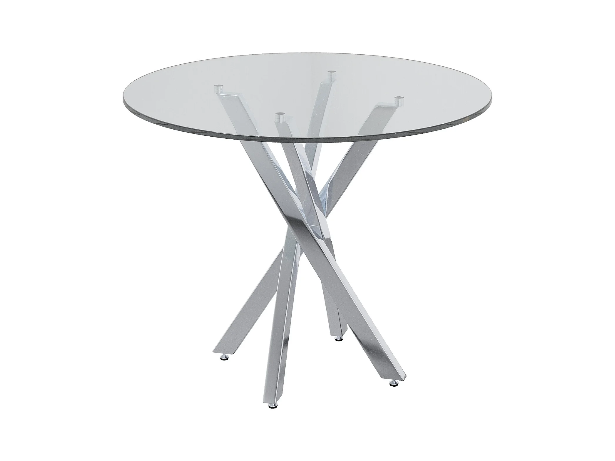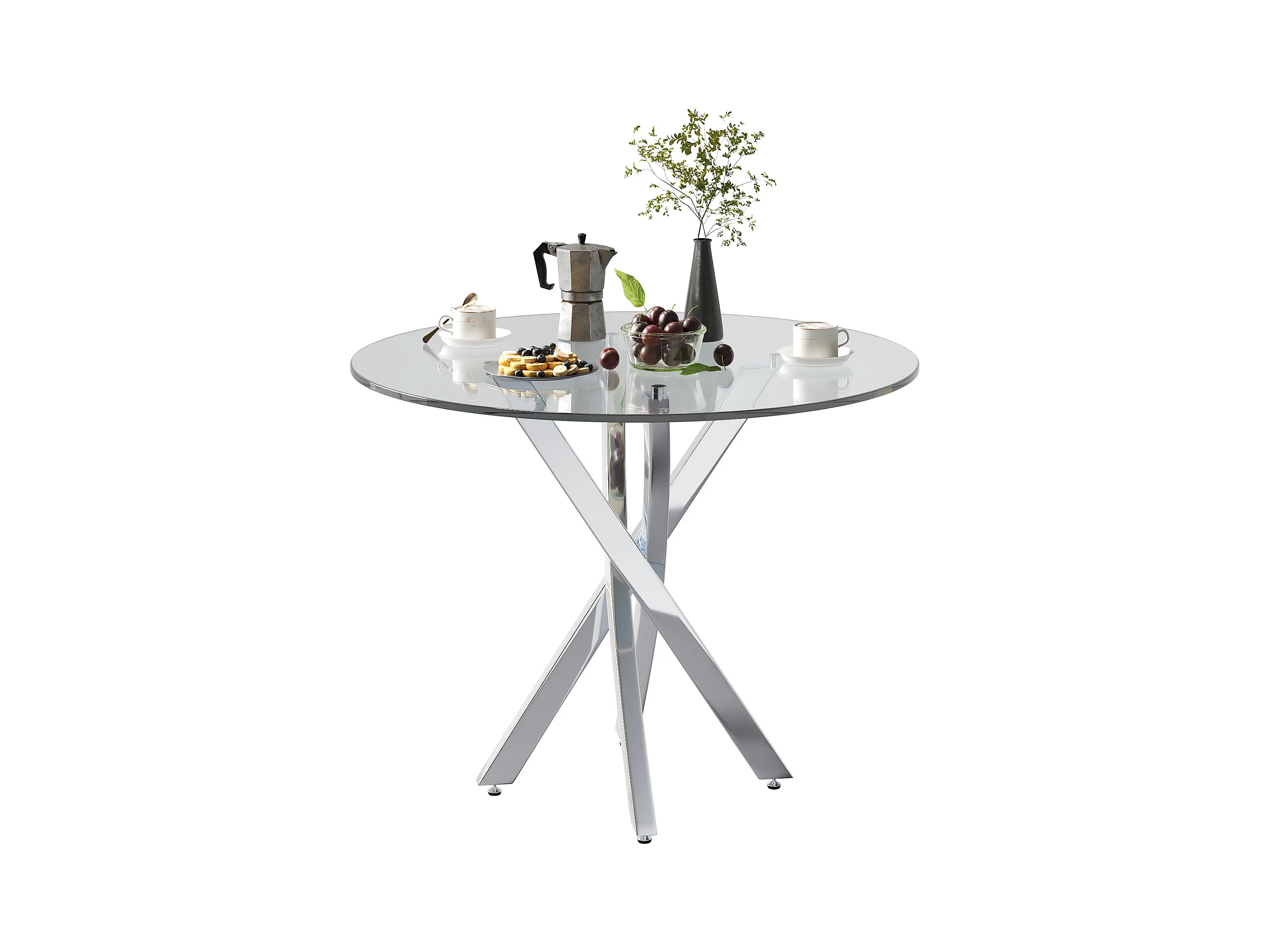 Table à manger ronde avec plateau en verre trempé et pieds argentés - pour salon et salles à manger