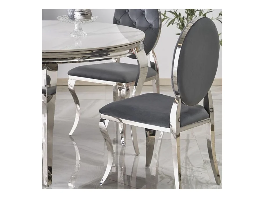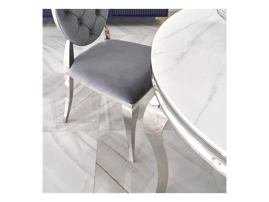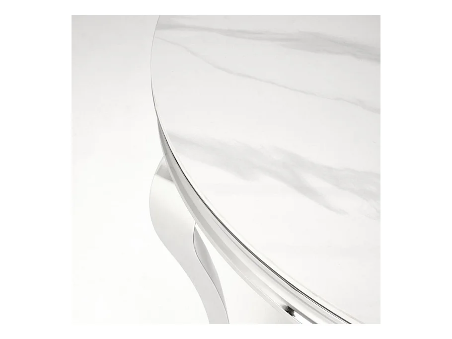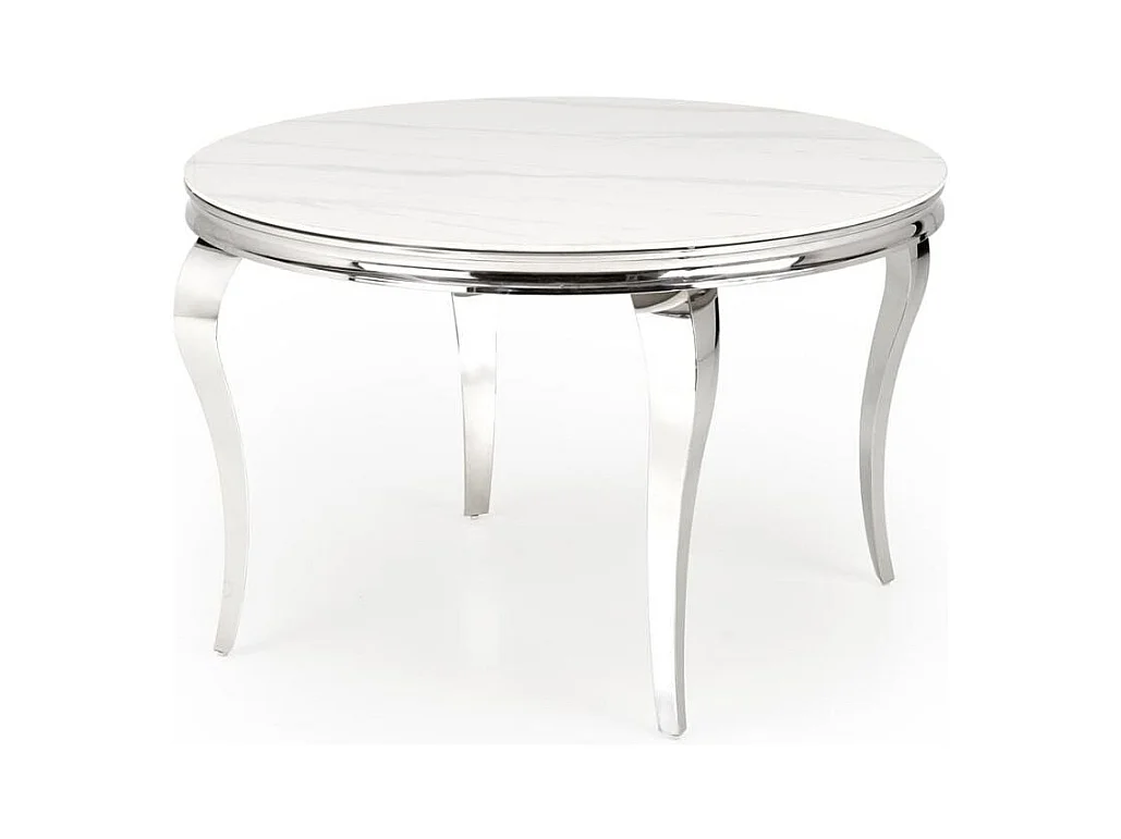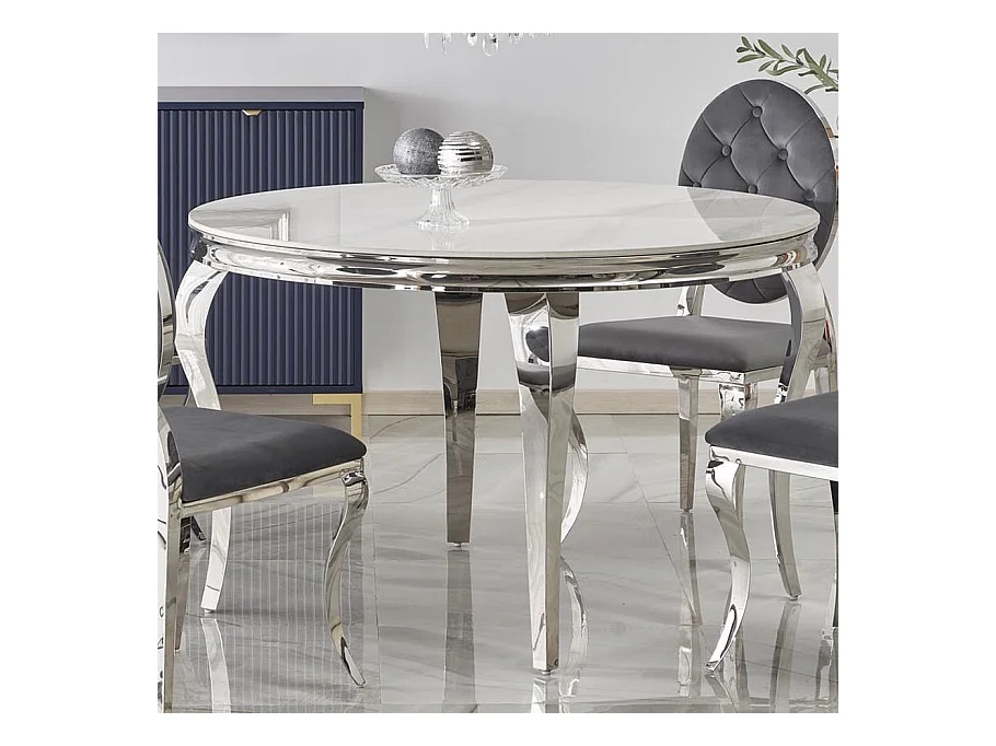 Table à manger ronde baroque 120 cm aspect marbre, pieds argentés CANICA