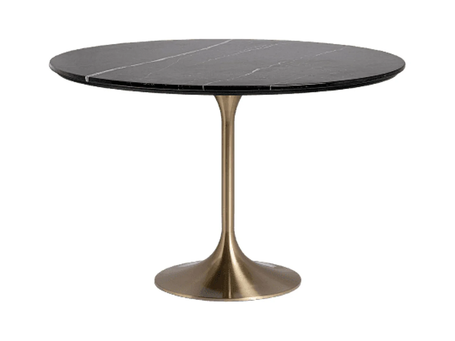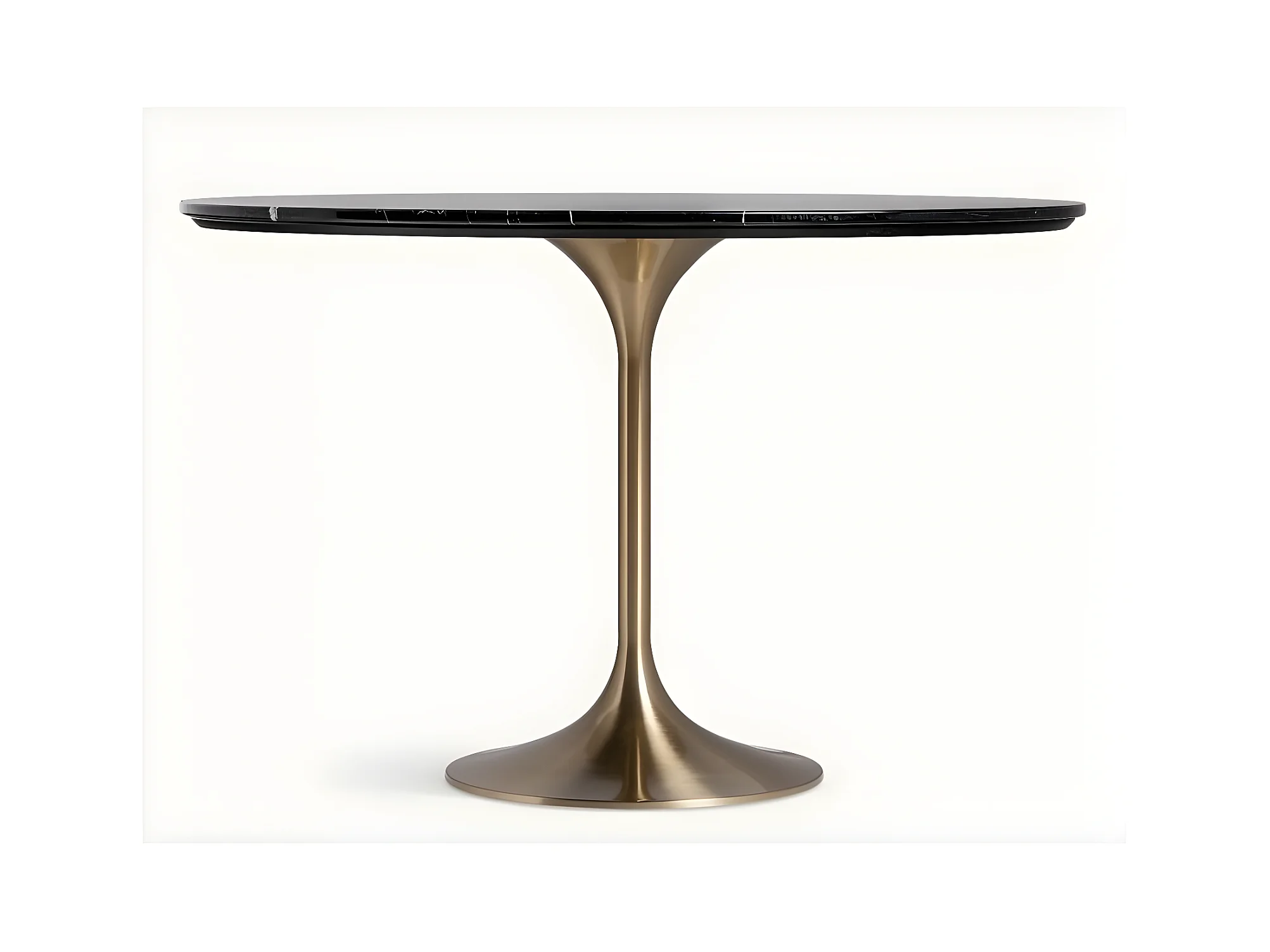 Table à manger ronde céramique et pied acier doré style art déco Korne-Couleur Noir-Diamètre 120 cm