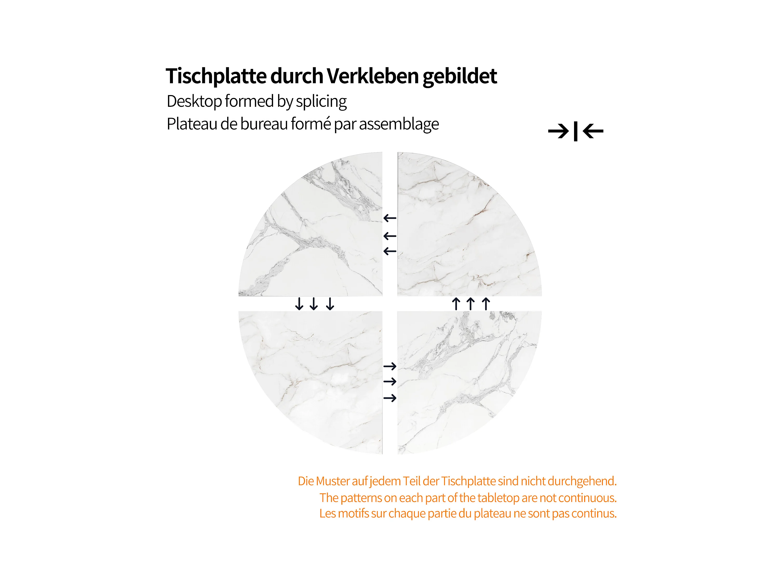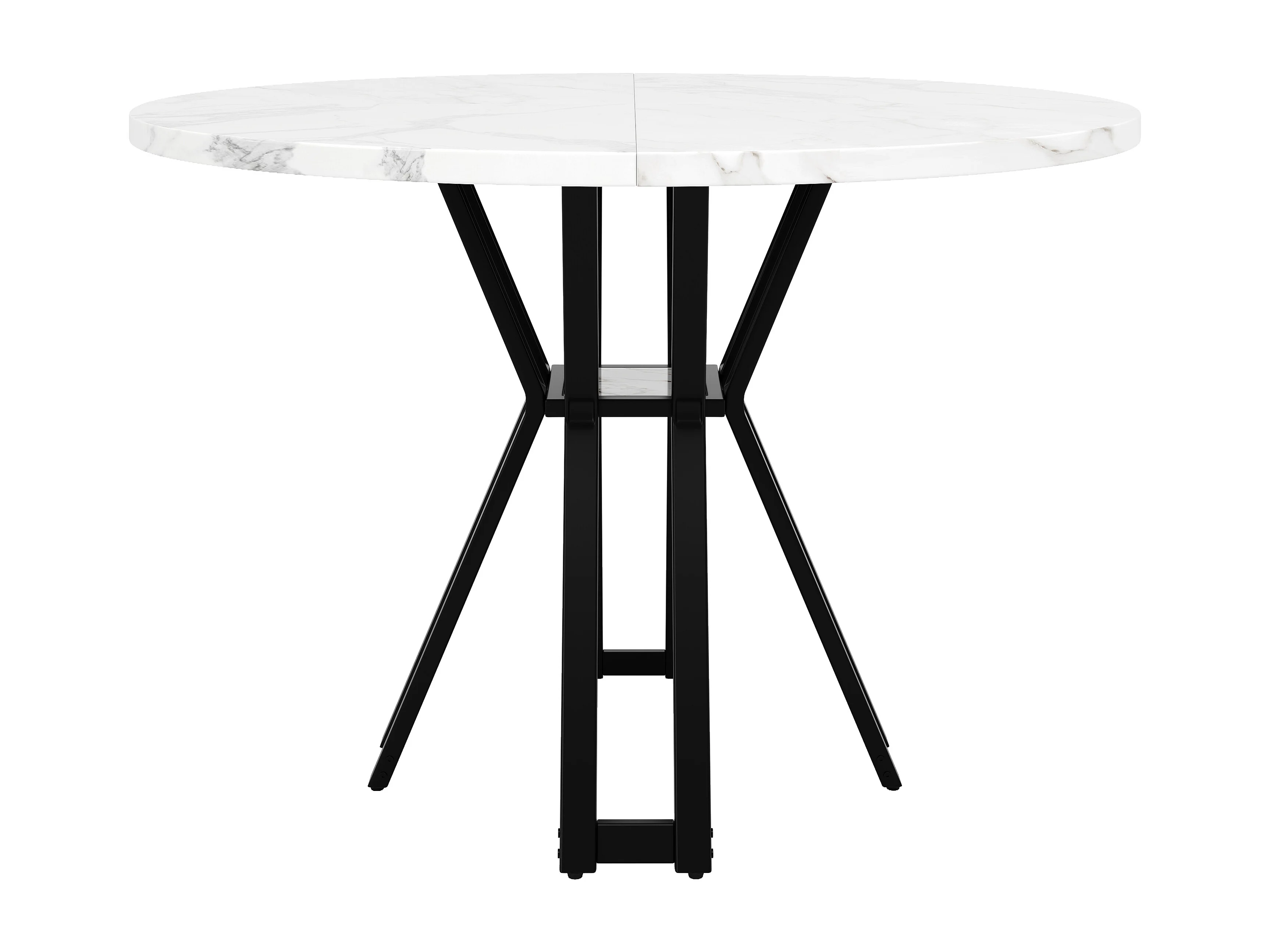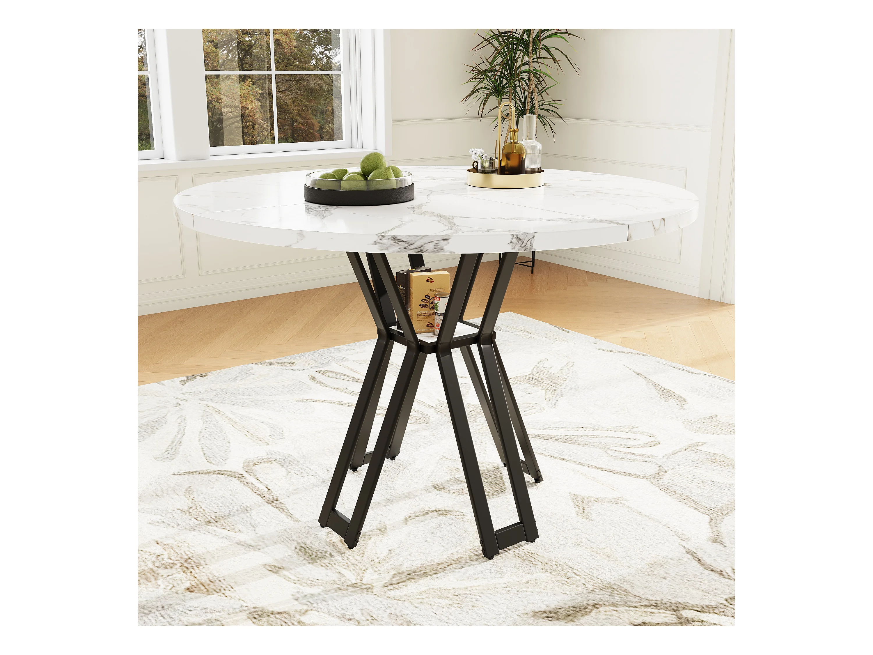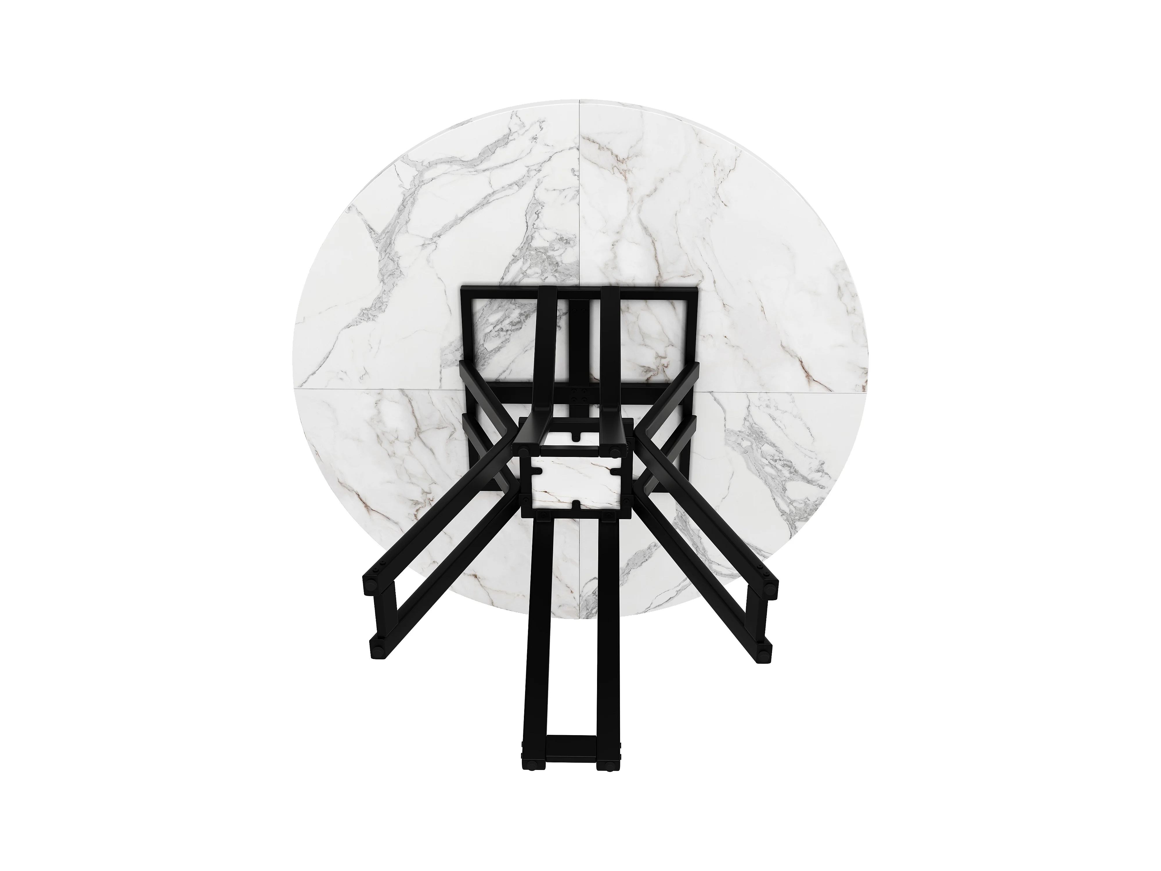 Table à manger ronde, design moderne, MDF et métal noir, marbrée, pour 4-6 personnes (100x100x76 cm)