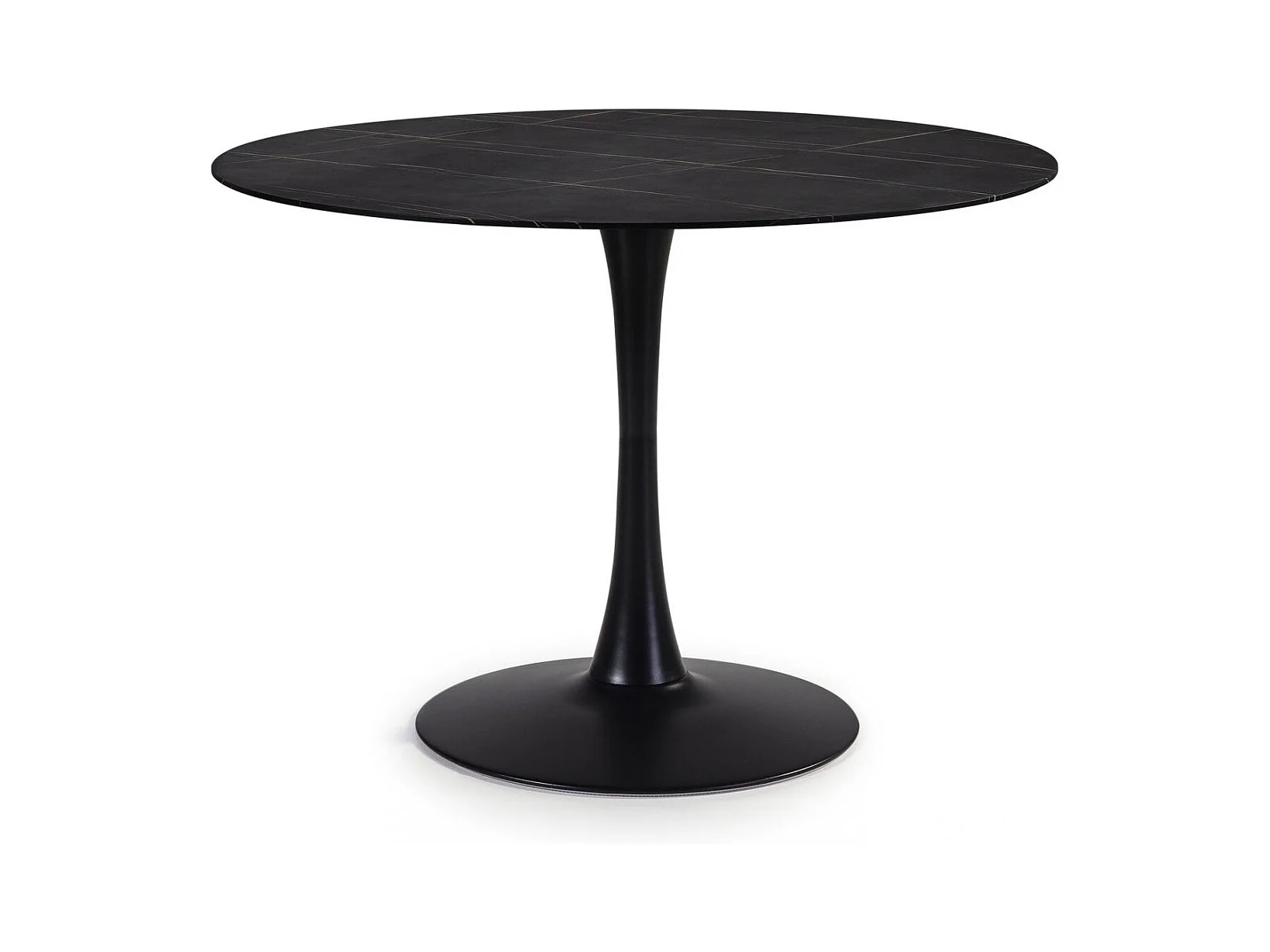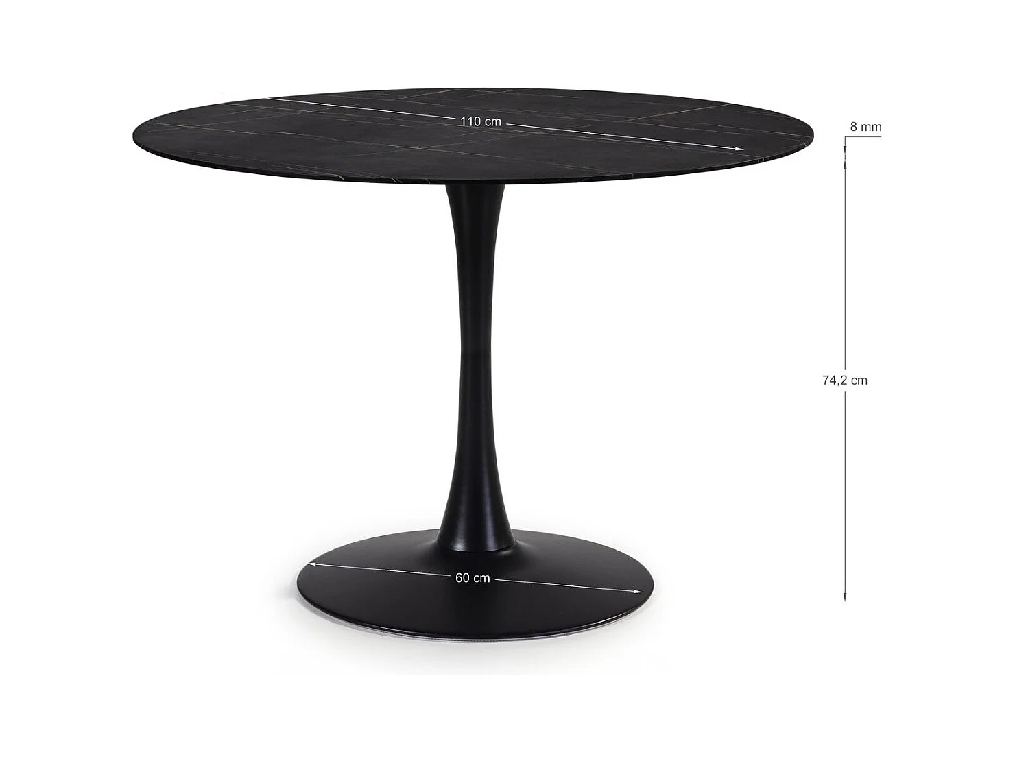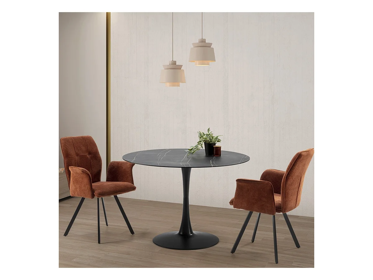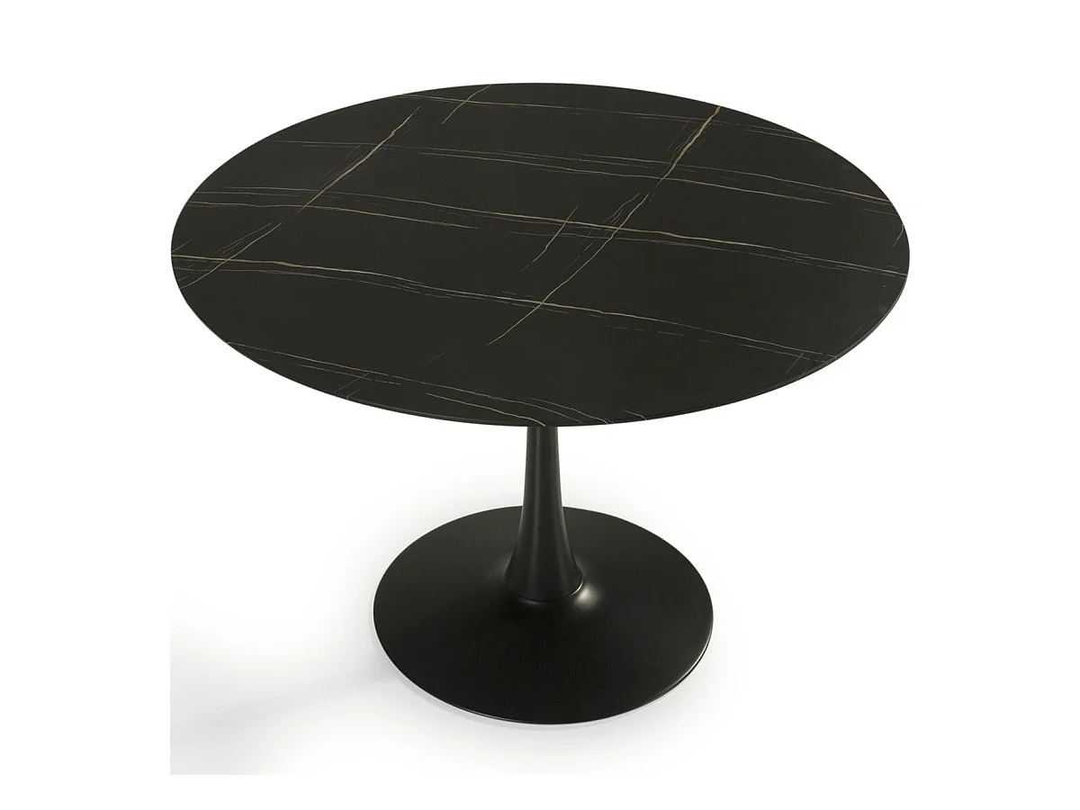 Table à manger ronde effet marbre noir 4 pers. 110 cm - Prima