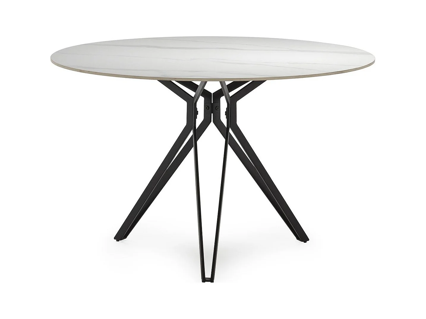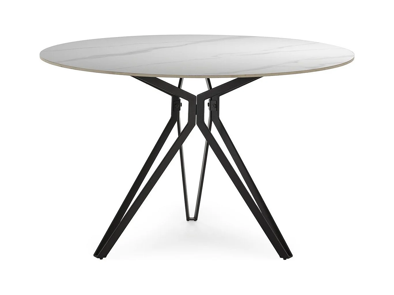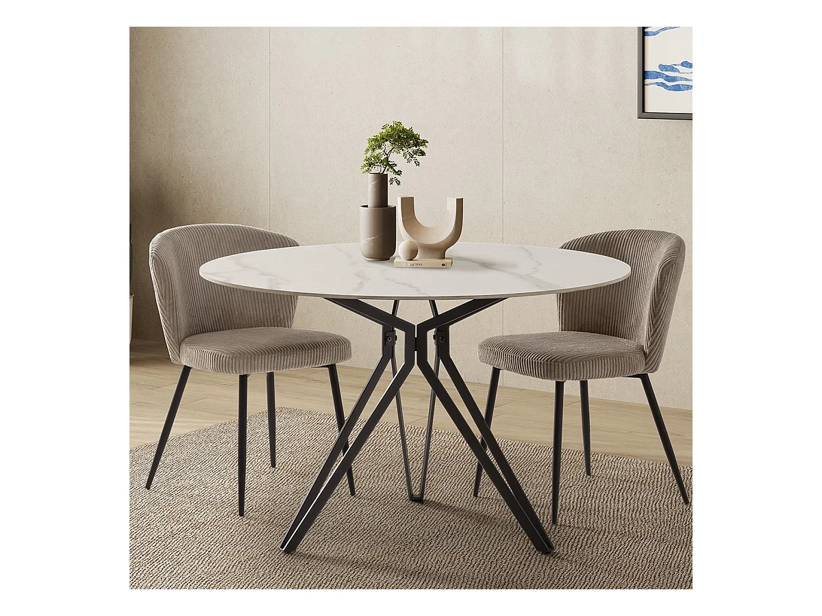 Table à manger ronde en céramique effet marbre blanc 4 personnes 120 cm - Cuma