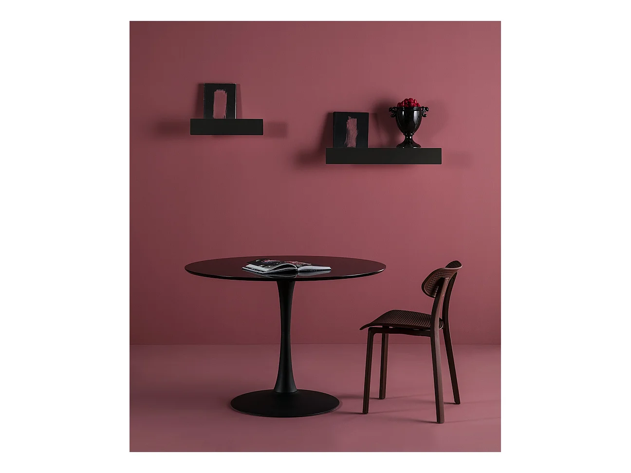 Table à manger ronde en MDF avec armature en métal laqué noir - Diamètre 110 x Hauteur 75 cm
