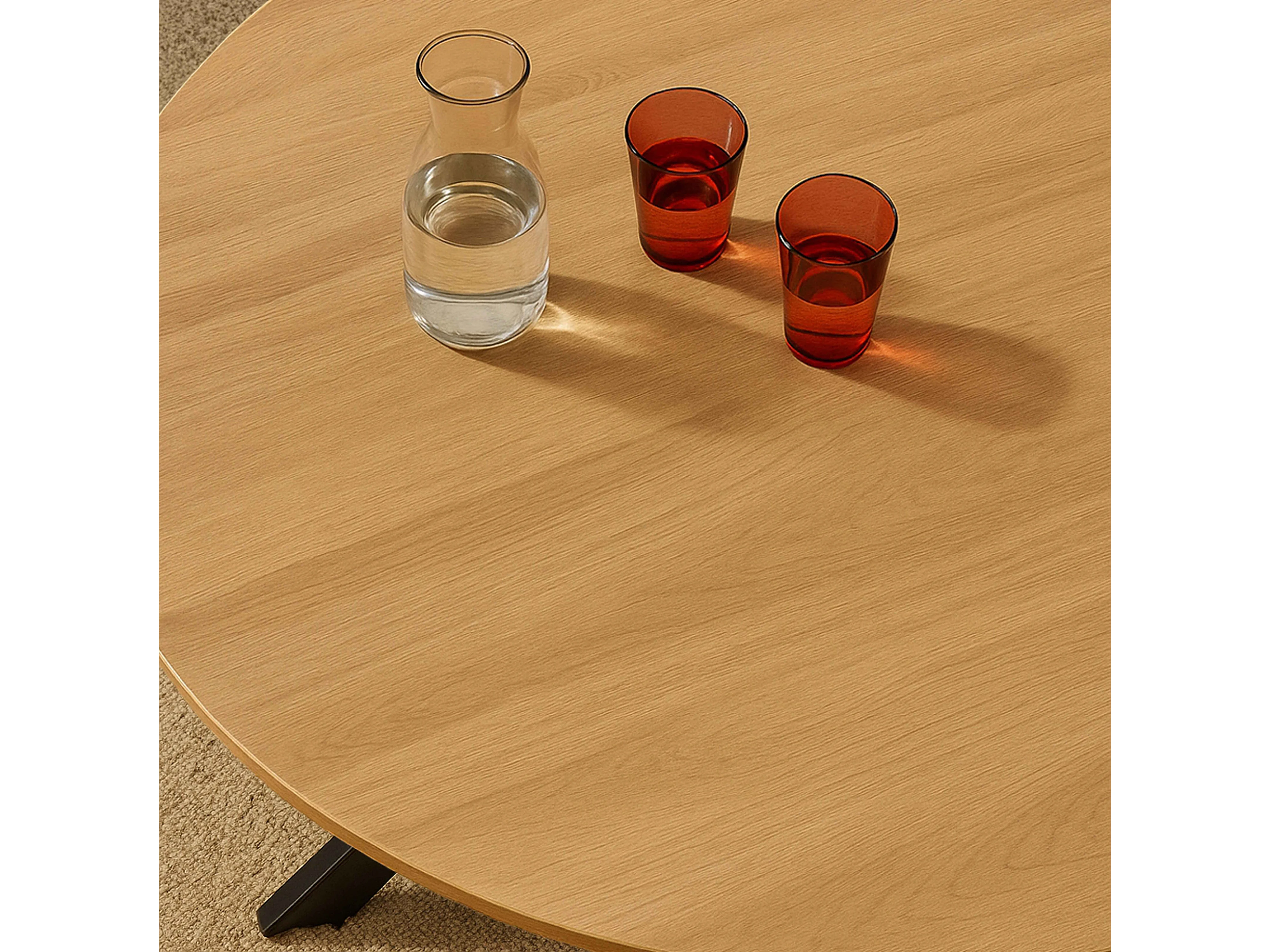 Table à manger ronde en MDF et aluminium noir et bois