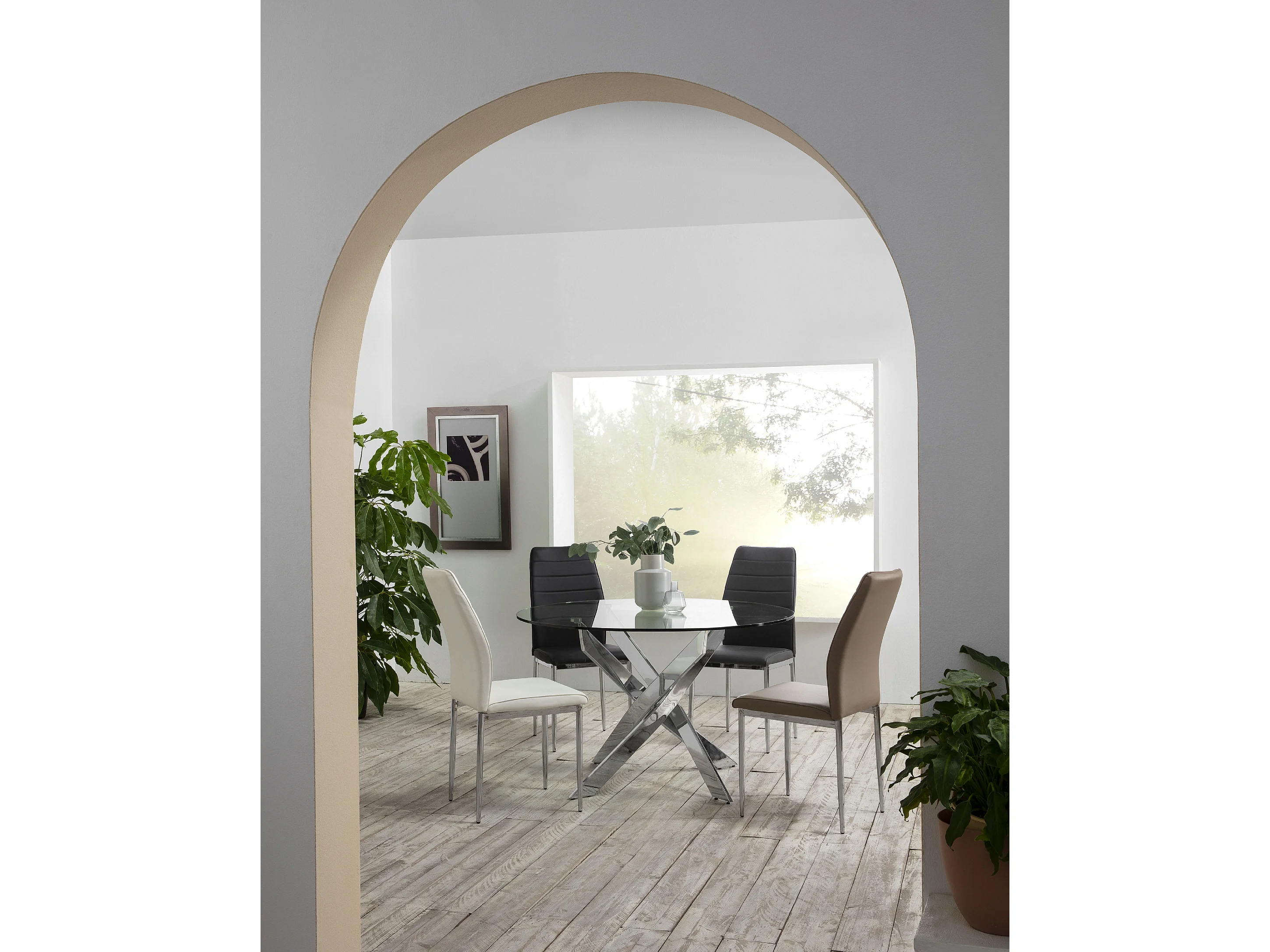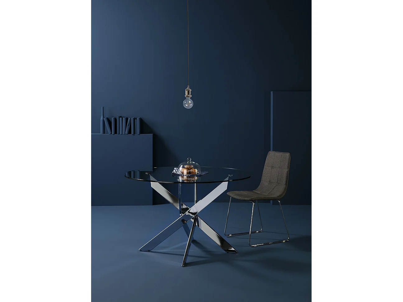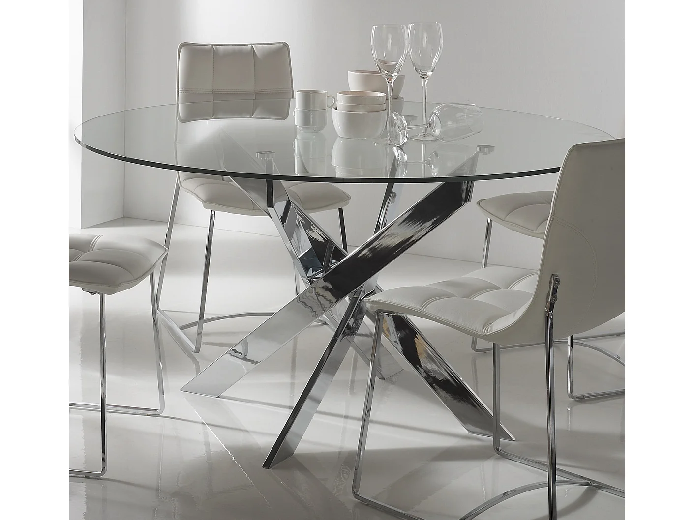 Table à manger ronde en verre trempé avec pieds en métal chromé - Diamètre 120 x Hauteur 75 cm