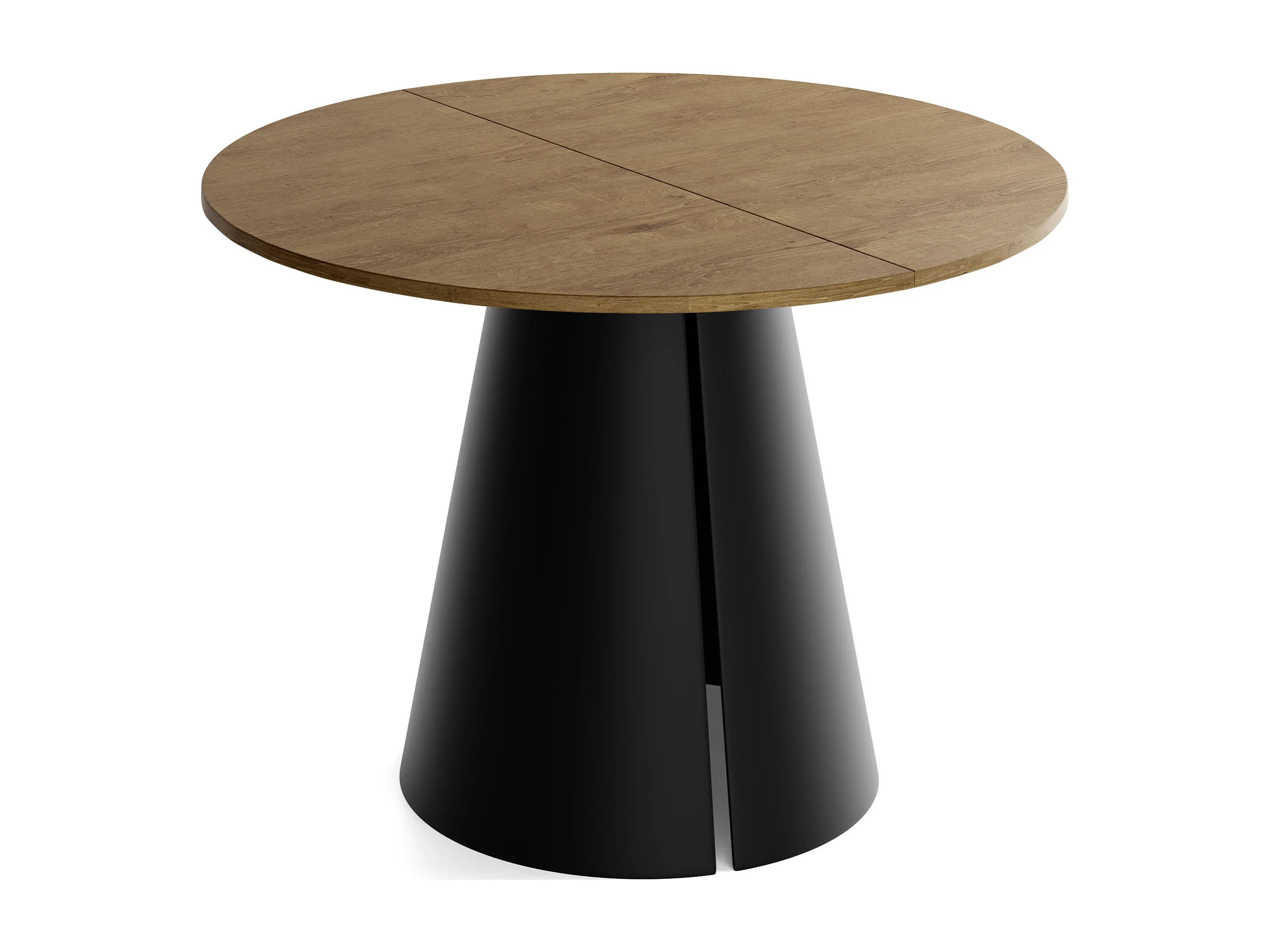 Table à Manger Ronde Extensible – 100 à 180 cm – Table Industrielle avec Pieds en Métal Coniques Noirs pour 5 à 8 Personnes – Gain de Place – Chêne Marron Rustique
