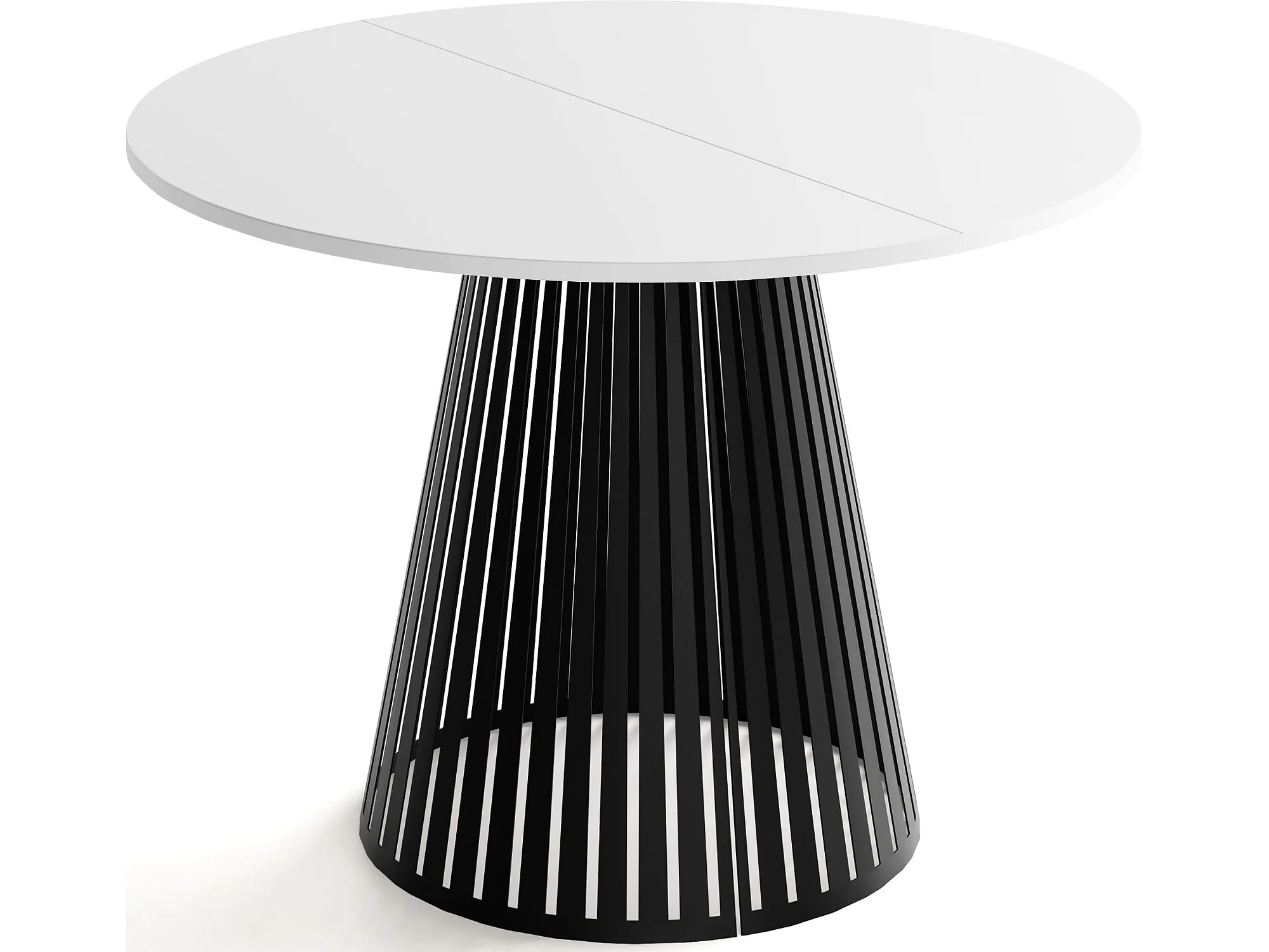 Table à Manger Ronde Extensible avec Lamelles Style Loft 100 cm – Design Industriel avec Pieds en Métal Noir, Gain de Place pour Salon, Salle à Manger – Blanc
