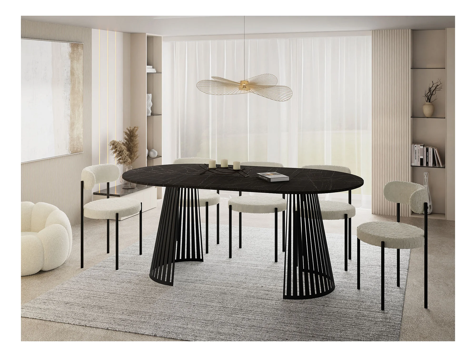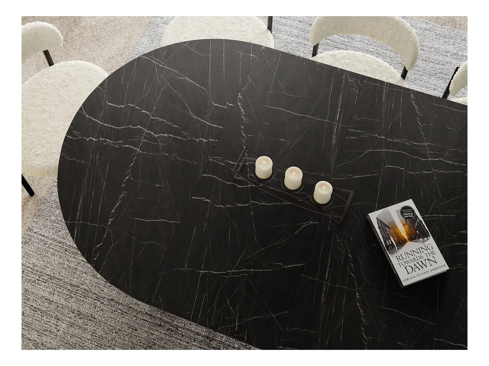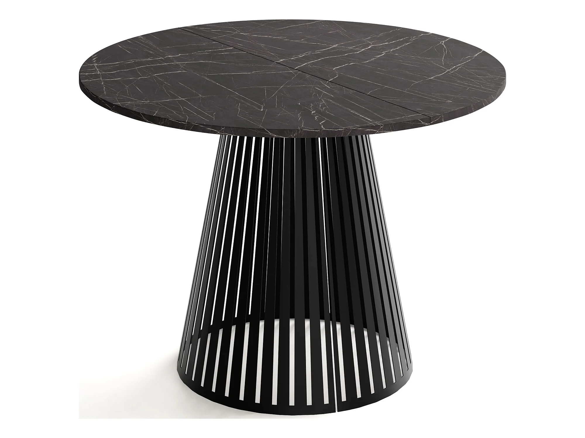 Table à Manger Ronde Extensible avec Lamelles Style Loft 100 cm – Design Industriel avec Pieds en Métal Noir, Gain de Place pour Salon, Salle à Manger – Marbre Noir