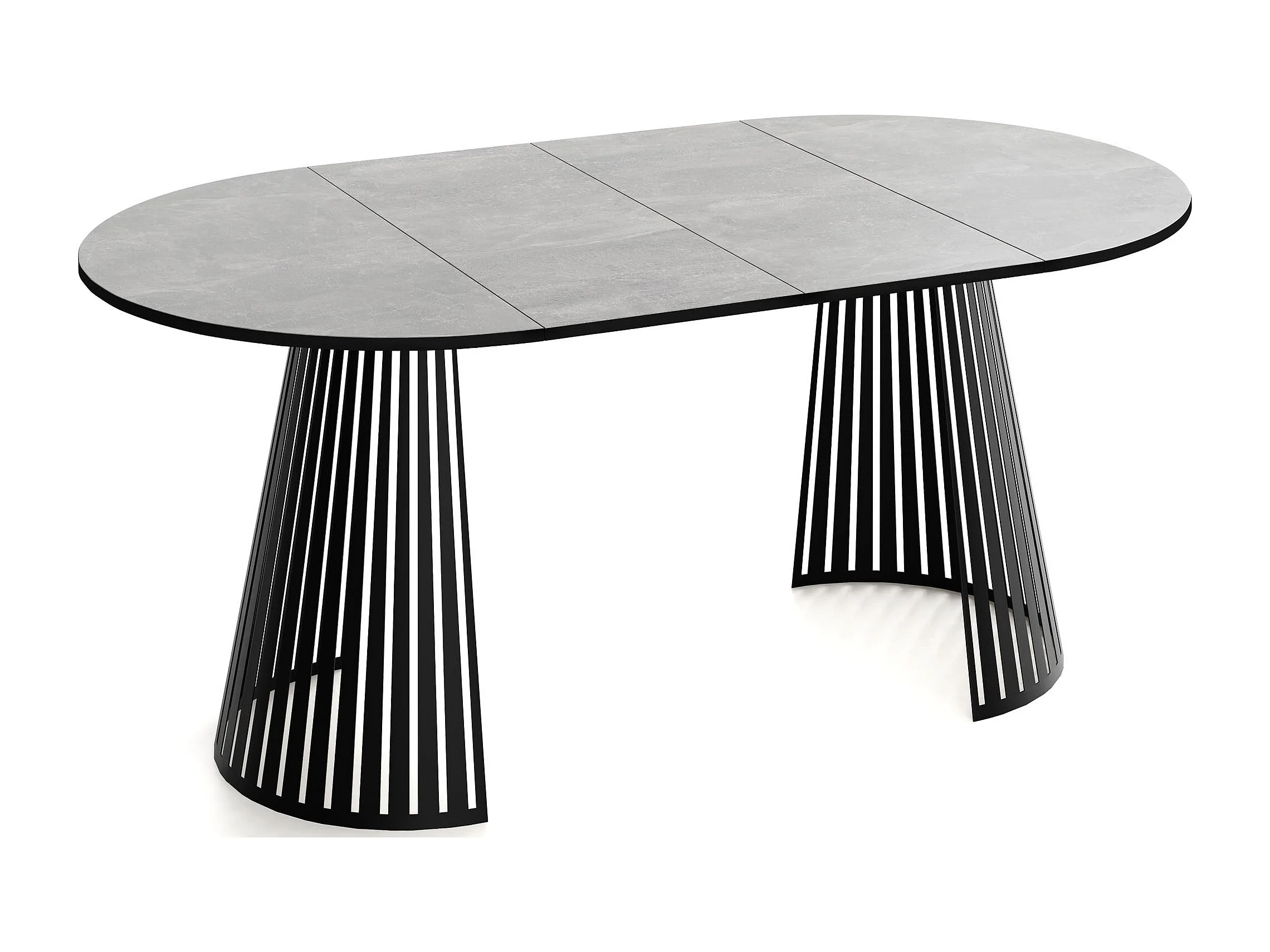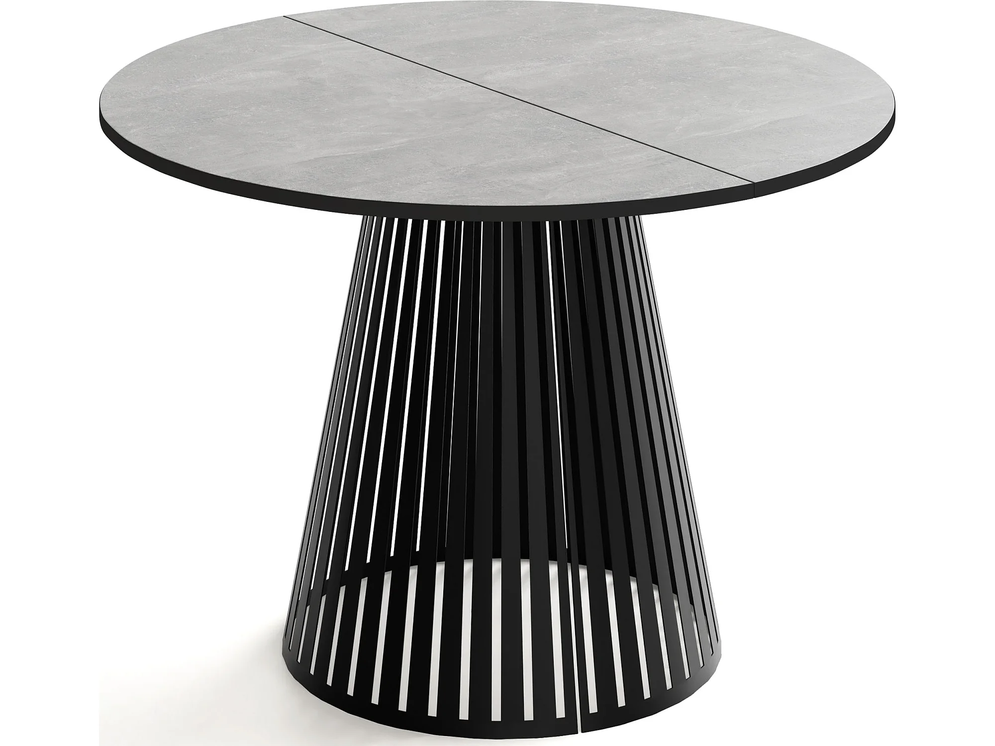 Table à Manger Ronde Extensible avec Lamelles Style Loft 120 cm – Design Industriel avec Pieds en Métal Noir, Gain de Place pour Salon – Gris Béton