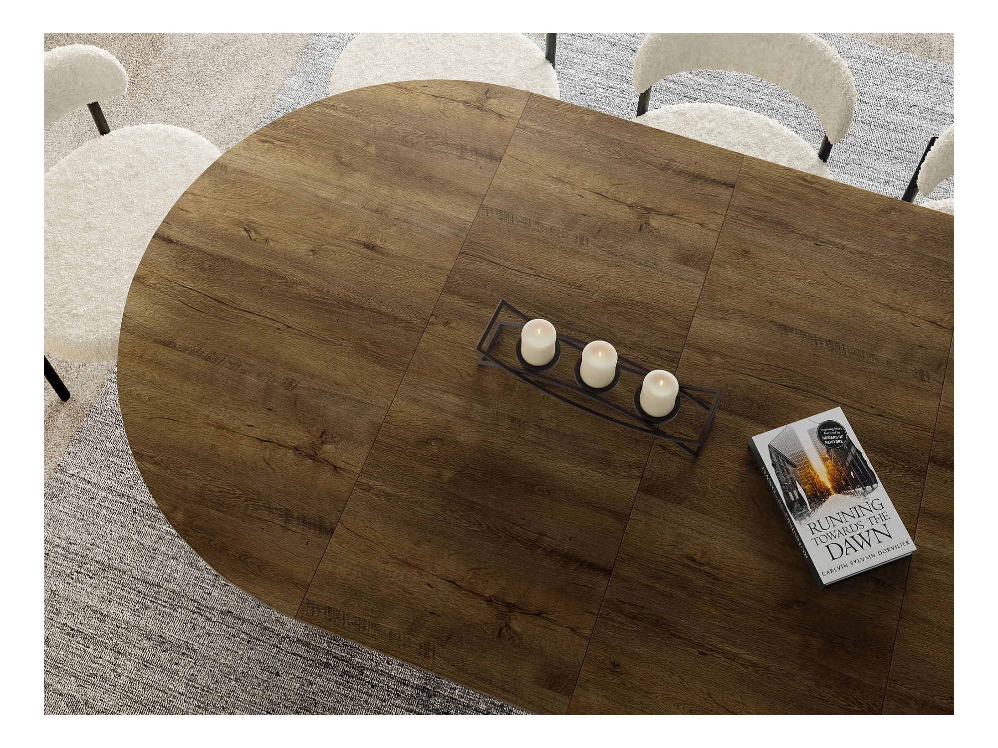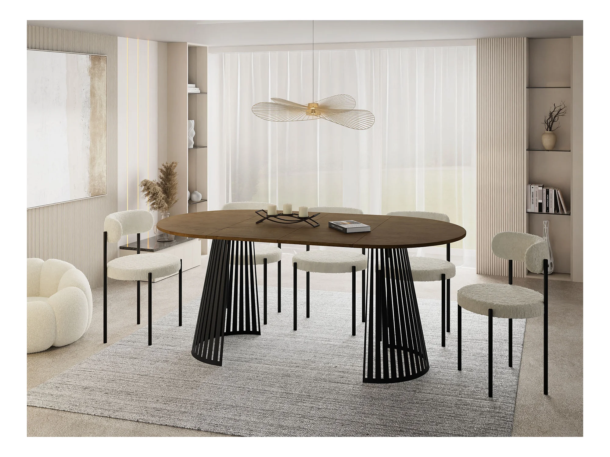 Table à Manger Ronde Extensible avec Lamelles Style Loft 120 cm – Design Industriel avec Pieds en Métal Noir, Gain de Place pour Salon – Marron