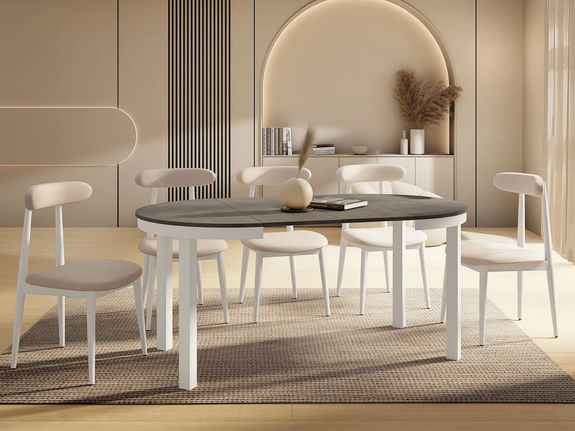 Table à Manger Ronde Extensible avec Pieds Métalliques Blancs – Table Industrielle – Table Gain de Place pour Salon ou Cuisine – 100 cm à 180 cm – Gris Béton Foncé