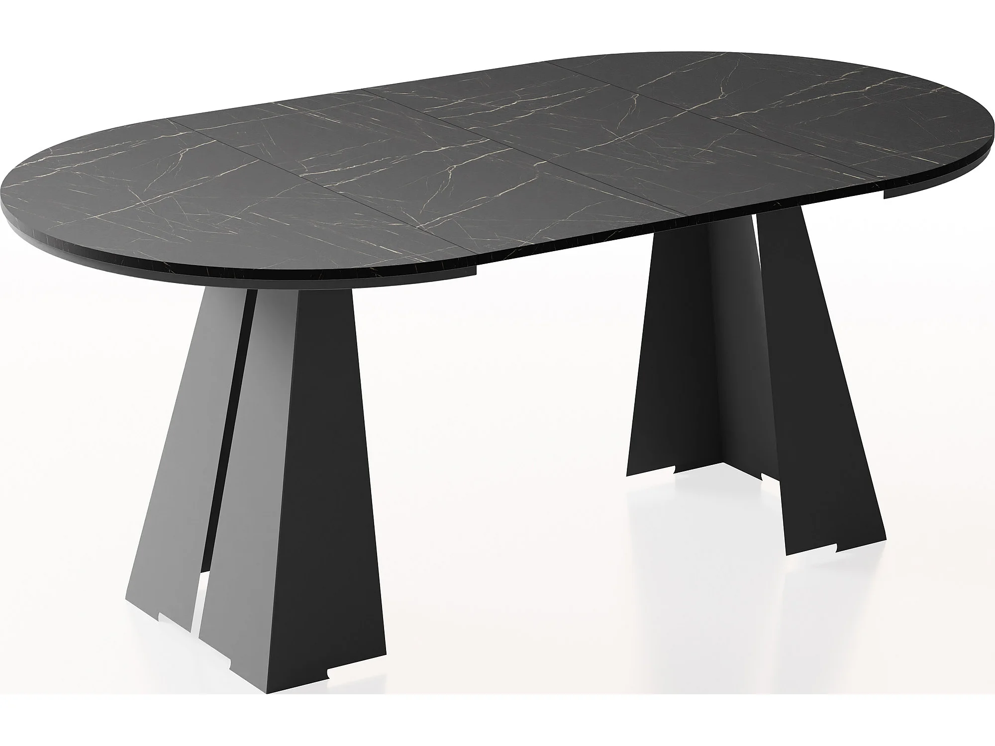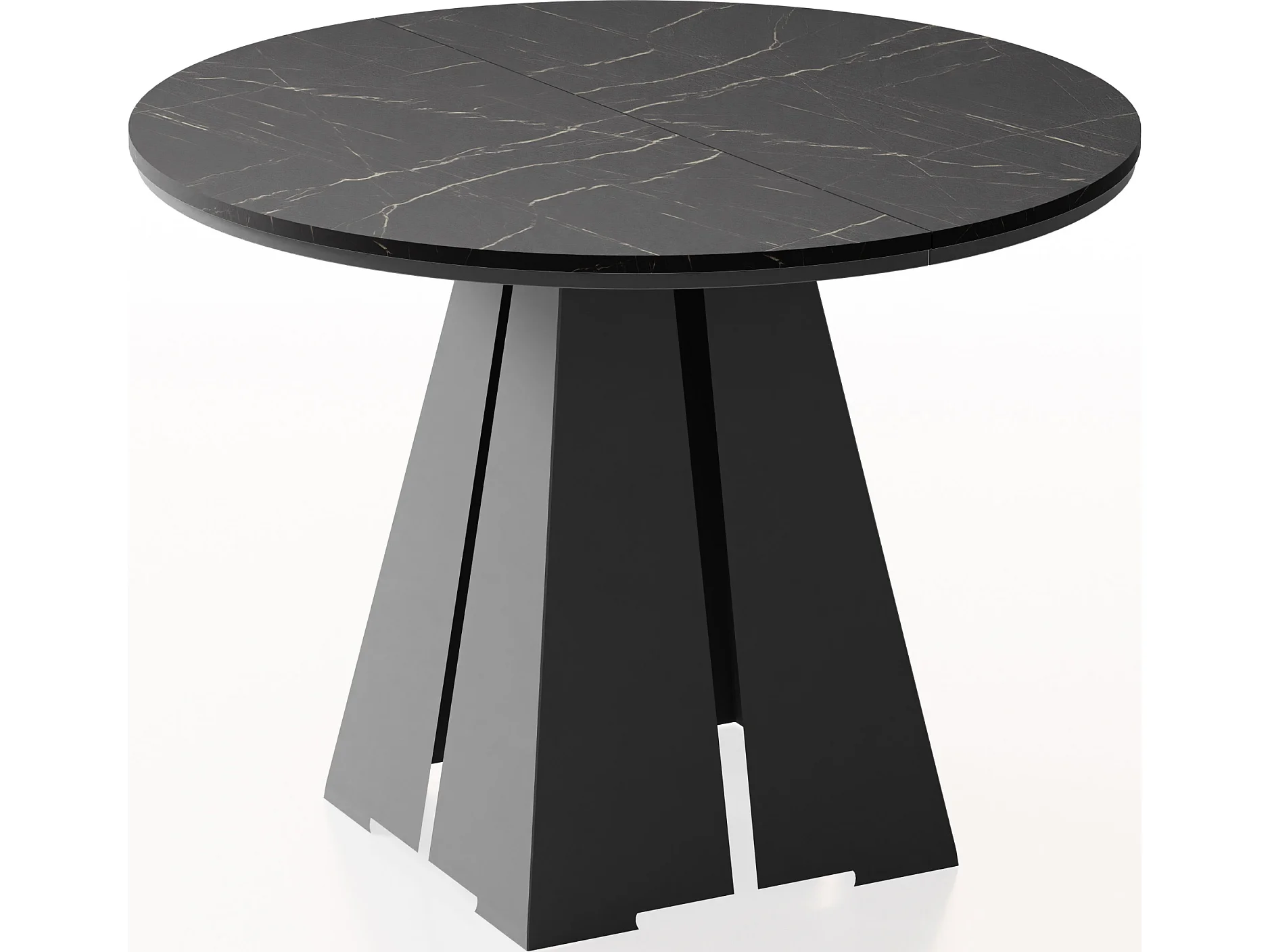 Table à Manger Ronde Extensible avec Piètement Métallique Noir - Table Industrielle Moderne - 120 cm à 200 cm - Fabriqué en UE - Marbre Noir