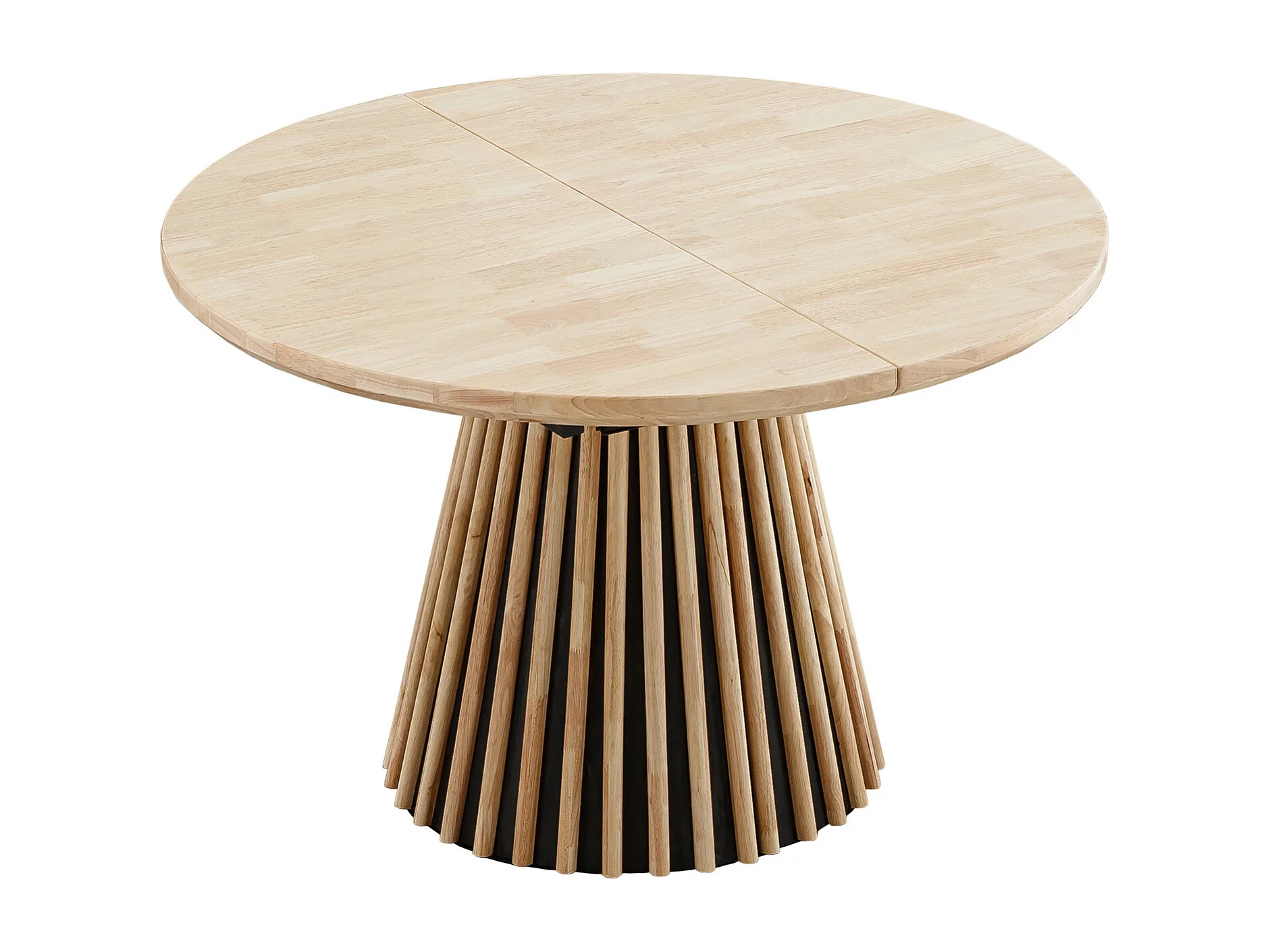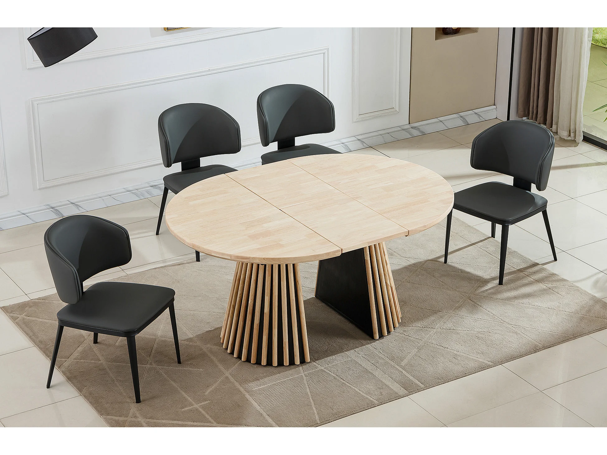 Table à manger ronde extensible coloris Chêne nordique/noir - Longueur 100-140-180 x Largeur 100 x Hauteur 76 cm