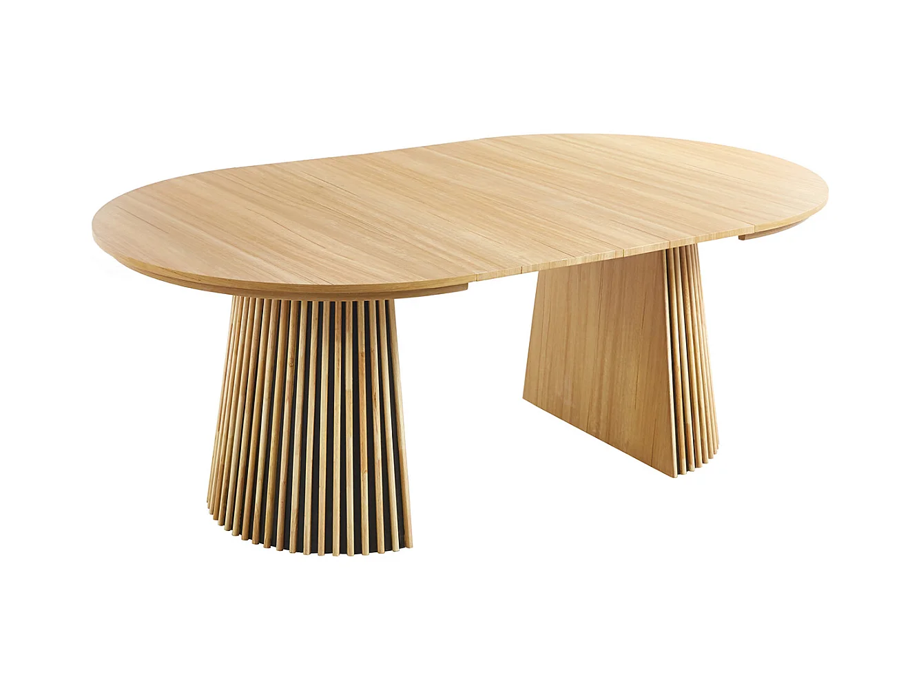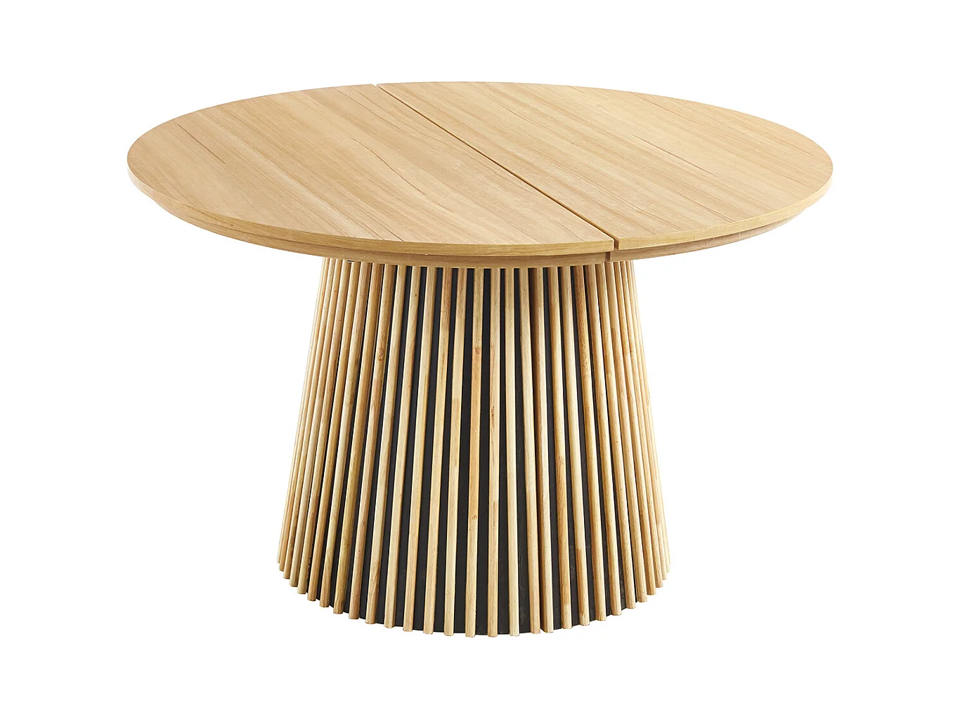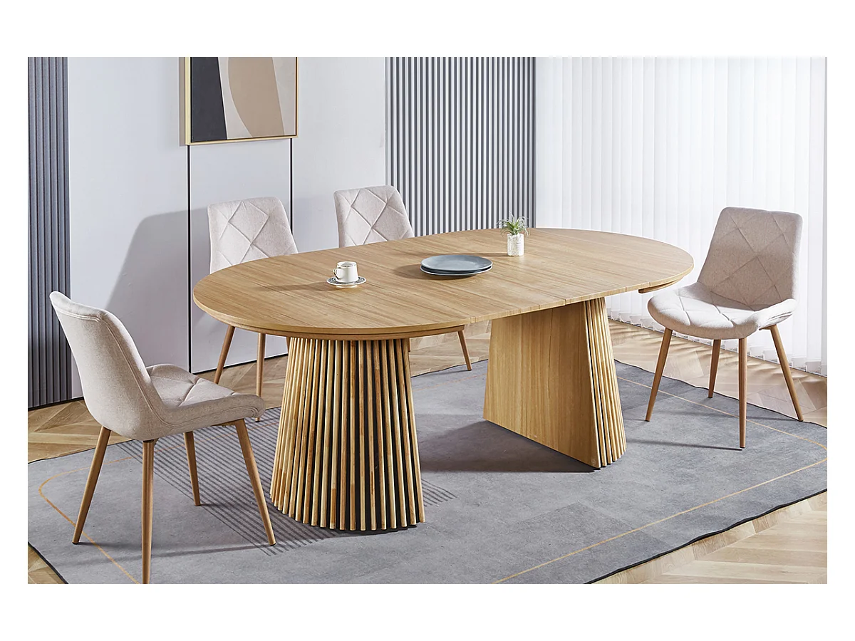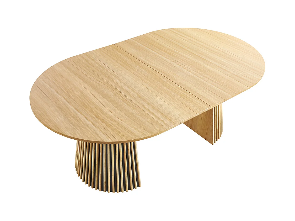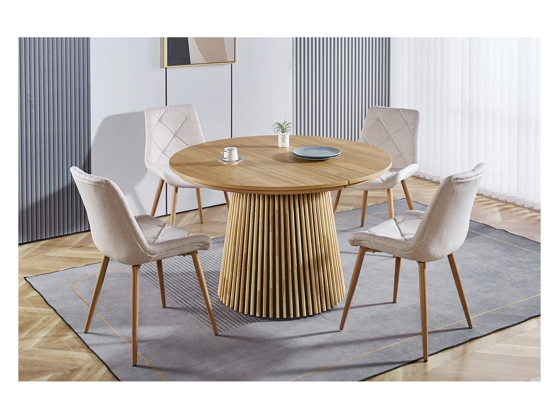 Table à manger ronde extensible en MDF et panneau mélamine coloris chêne - diamètre 120-200 x hauteur 75 cm