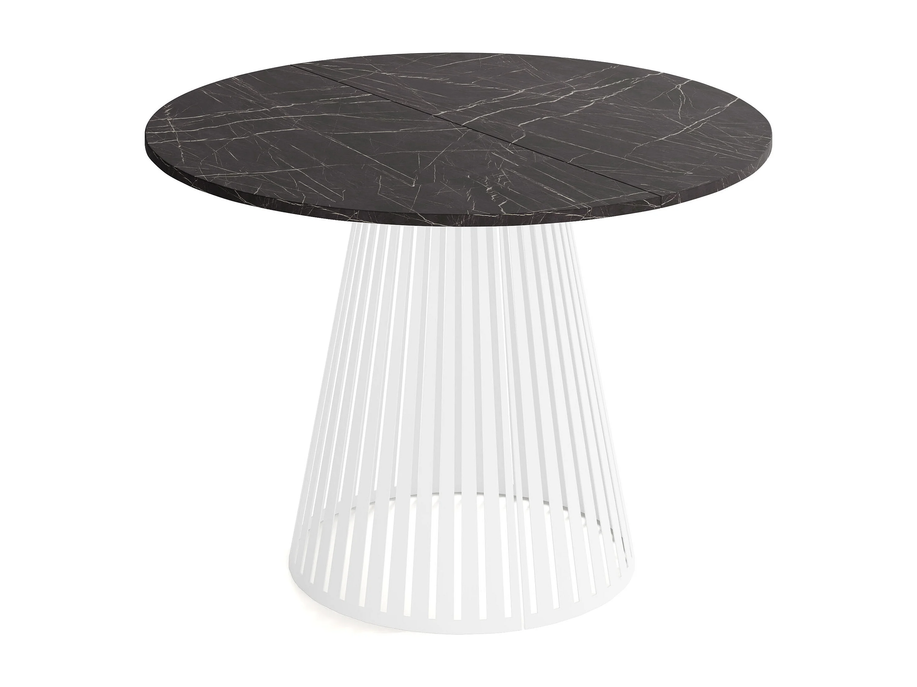 Table à Manger Ronde Extensible Style Loft – 100 à 180 cm – Design Industriel avec Pieds en Métal Blanc, Gain de Place pour Salon ou Salle à Manger – Marbre Noir
