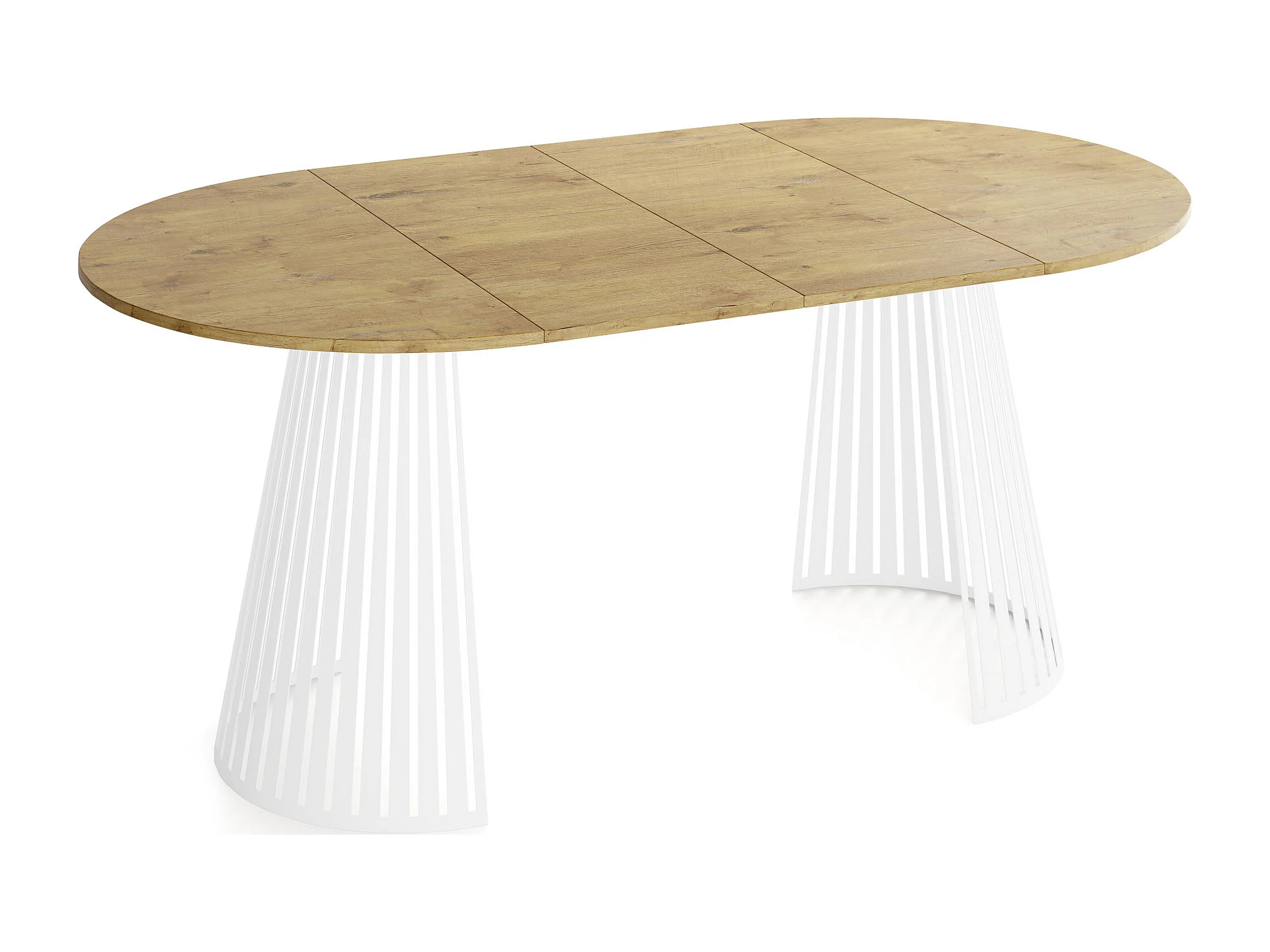 Table à Manger Ronde Extensible Style Loft – 100 à 180 cm – Design Industriel avec Pieds en Métal Blanc, Gain de Place pour Salon ou Salle à Manger – Marron