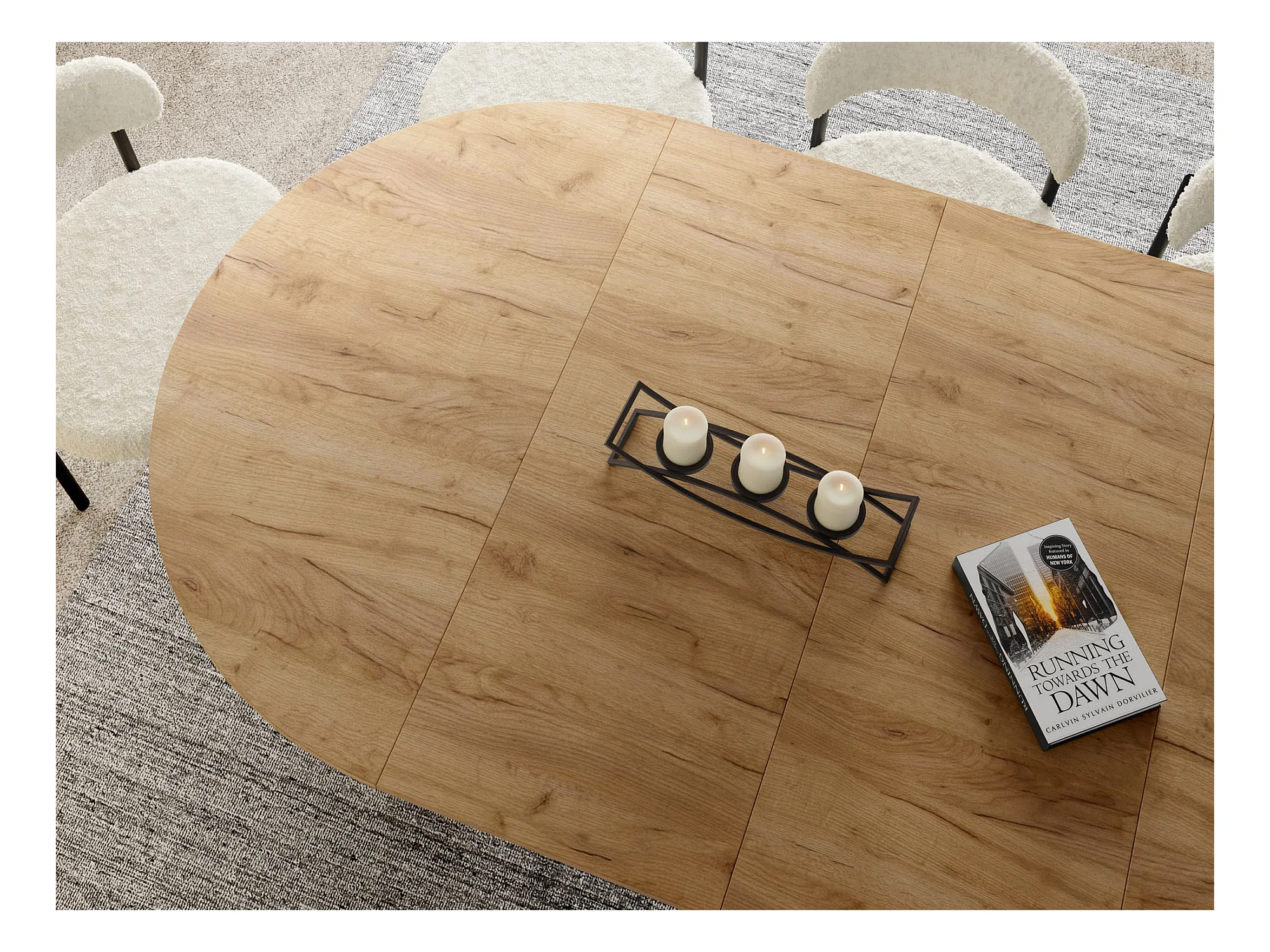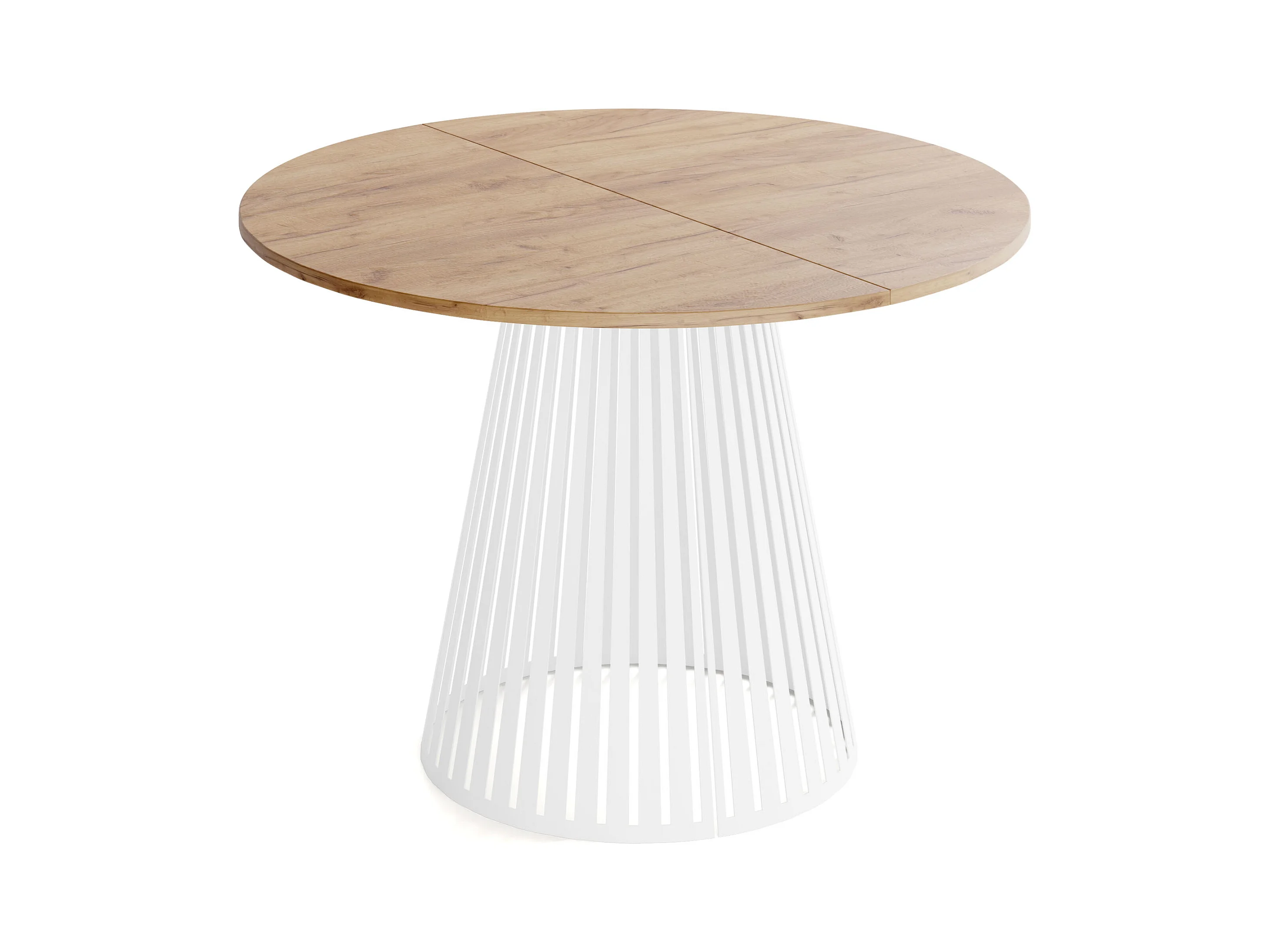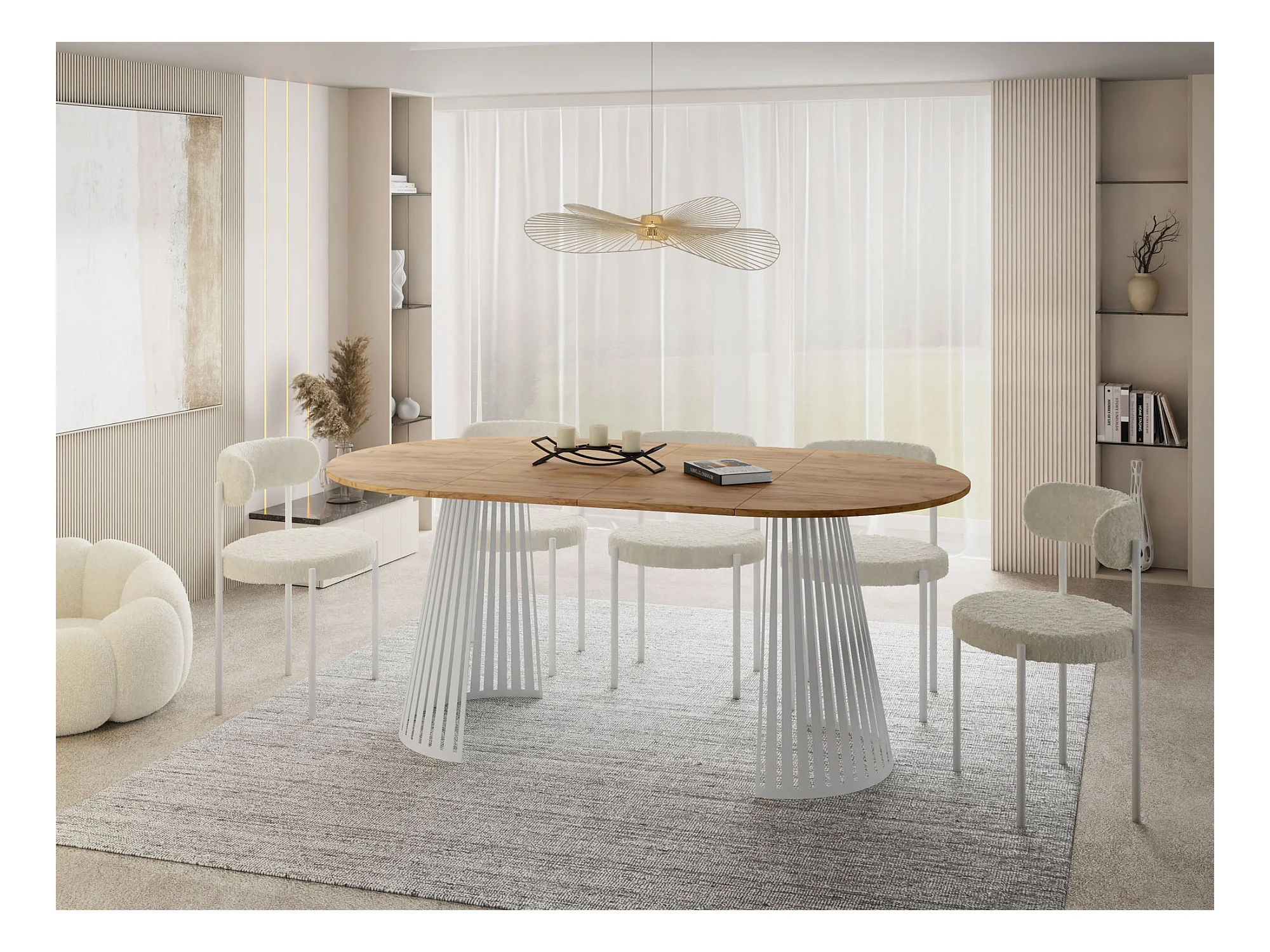 Table à Manger Ronde Extensible Style Loft – 100 à 180 cm – Design Industriel avec Pieds en Métal Blanc, Gain de Place pour Salon ou Salle à Manger – Marron