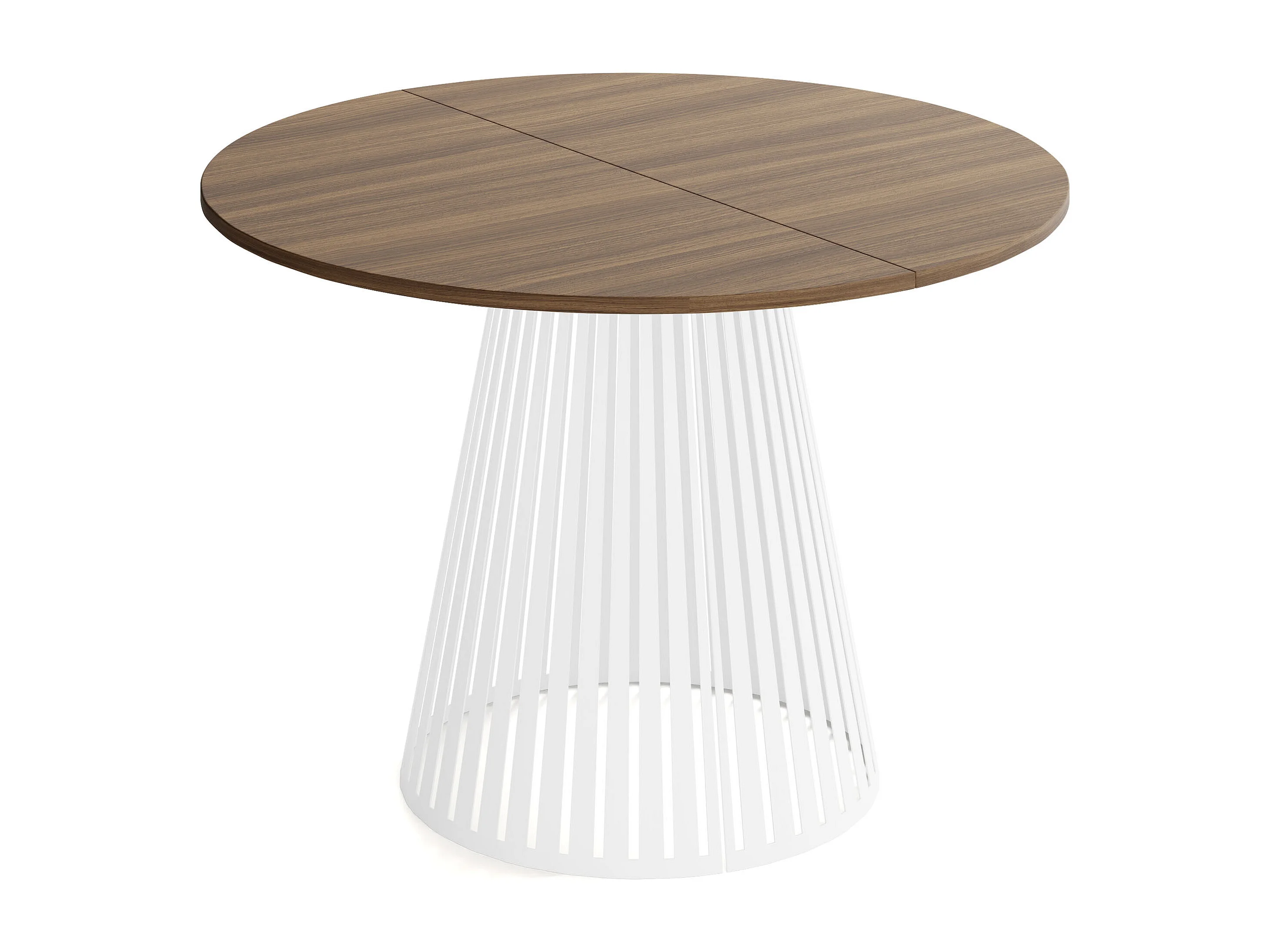 Table à Manger Ronde Extensible Style Loft – 100 à 180 cm – Design Industriel avec Pieds en Métal Blanc, Gain de Place pour Salon ou Salle à Manger – Marron Noyer