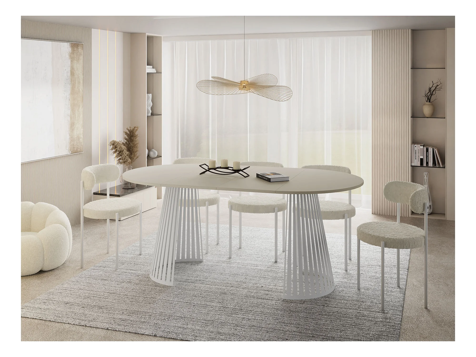 Table à Manger Ronde Extensible Style Loft – 100 à 180 cm – Design Industriel avec Pieds en Métal Blanc, Gain de Place pour Salon Salle à Manger – Beige Cachemire