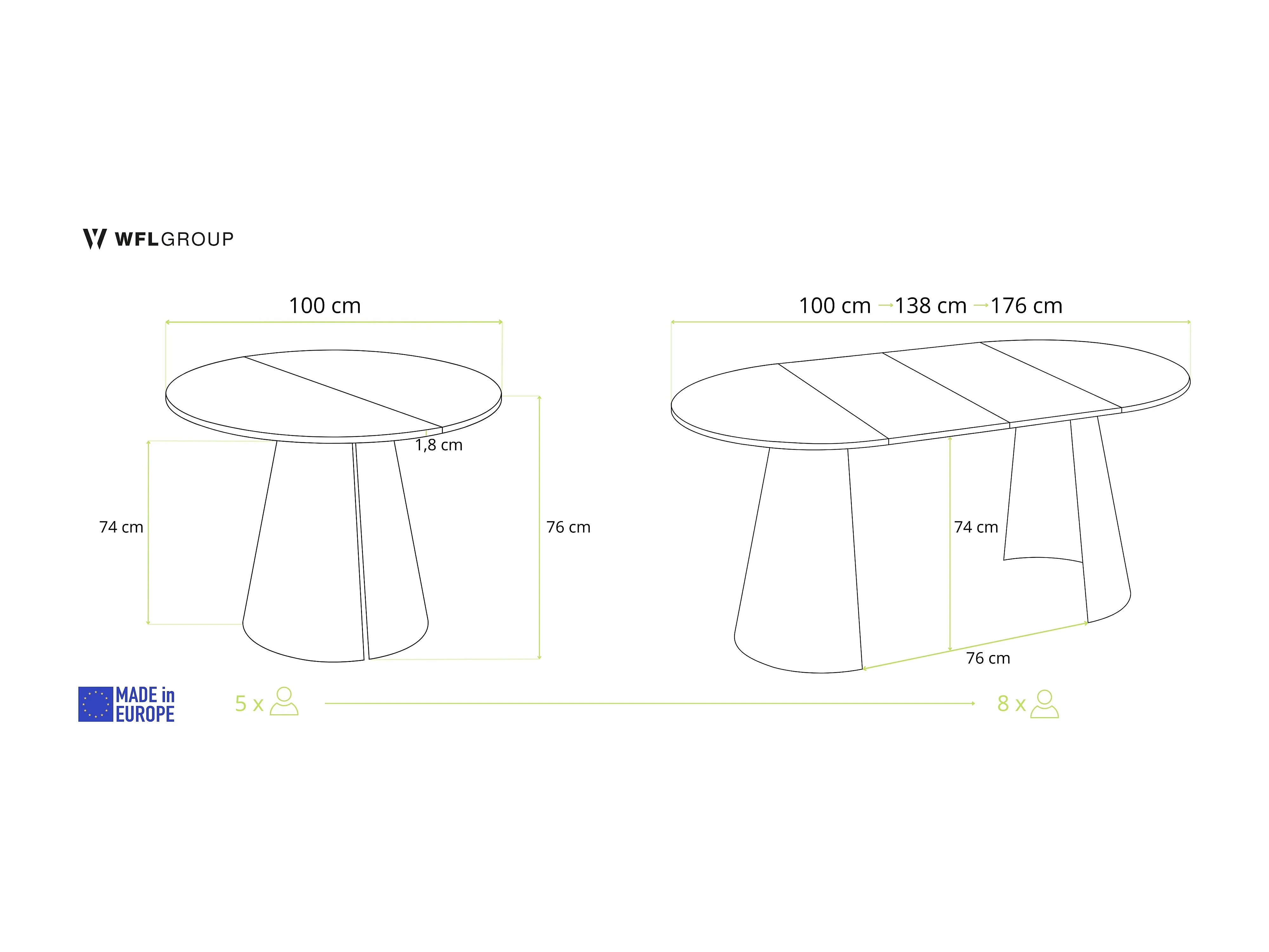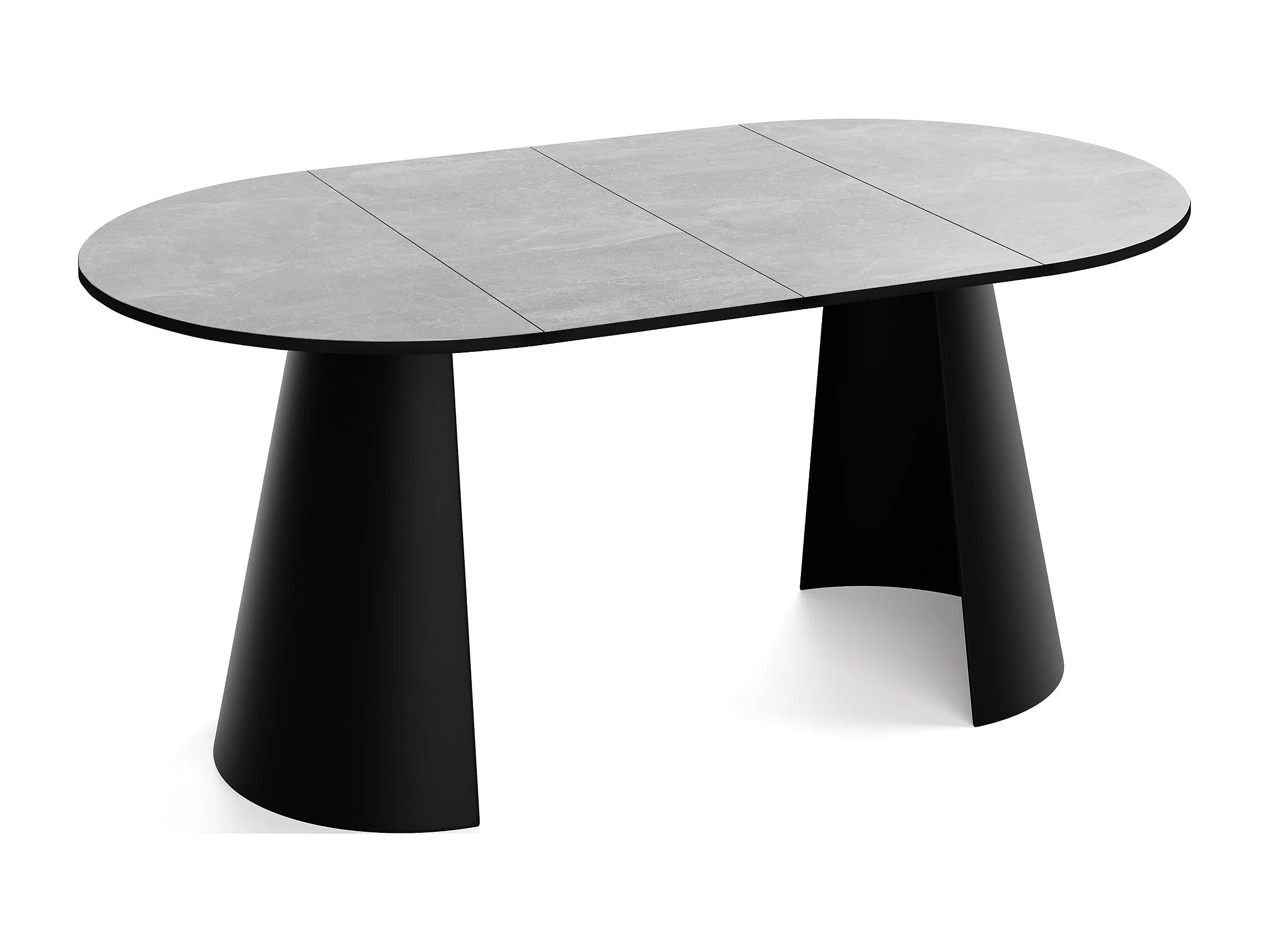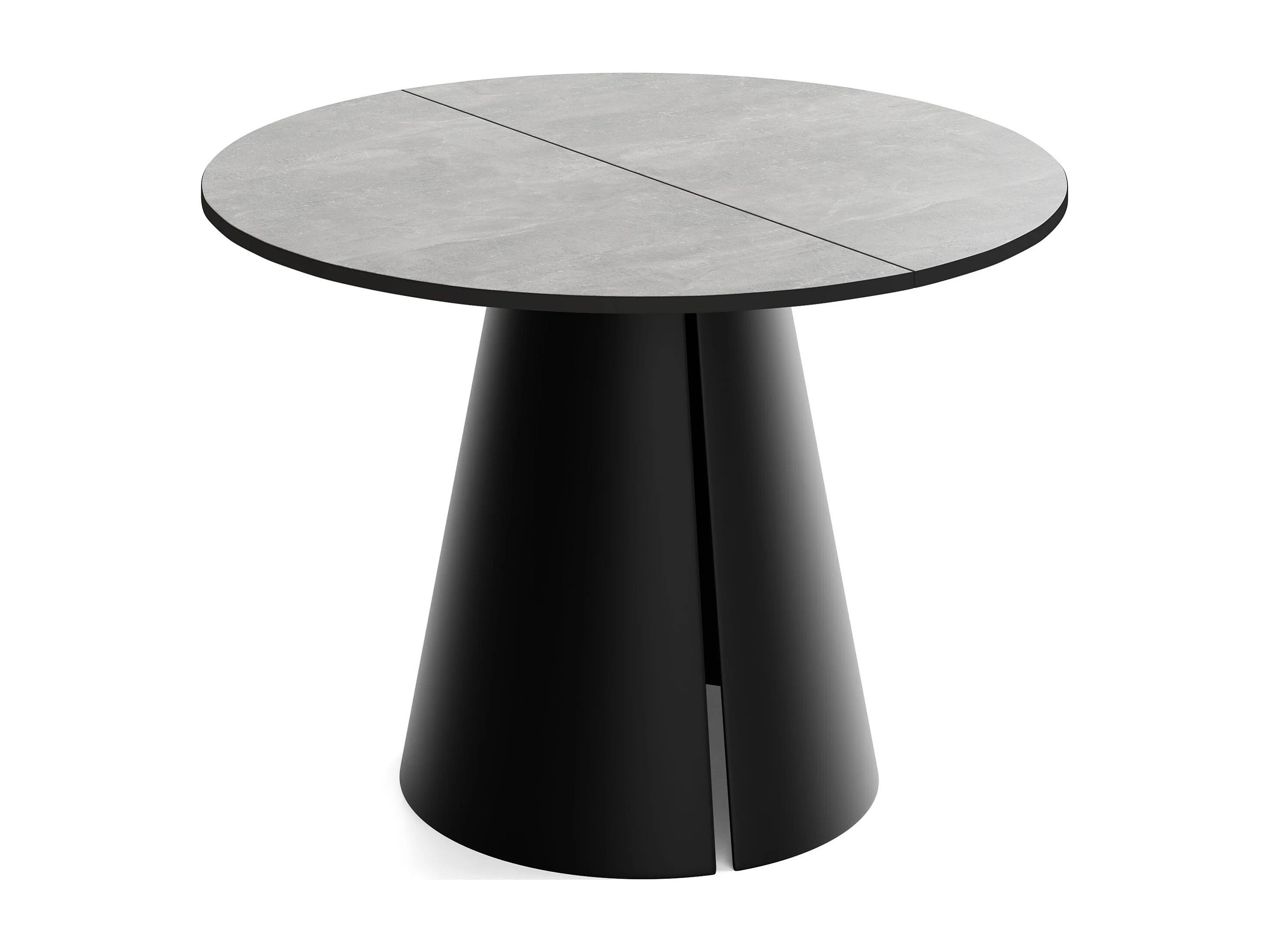 Table à Manger Ronde Extensible Style Loft – 100 à 180 cm – Table Industrielle avec Pieds en Métal Coniques Noirs pour 5 à 8 Personnes – Gain de Place – Béton Gris
