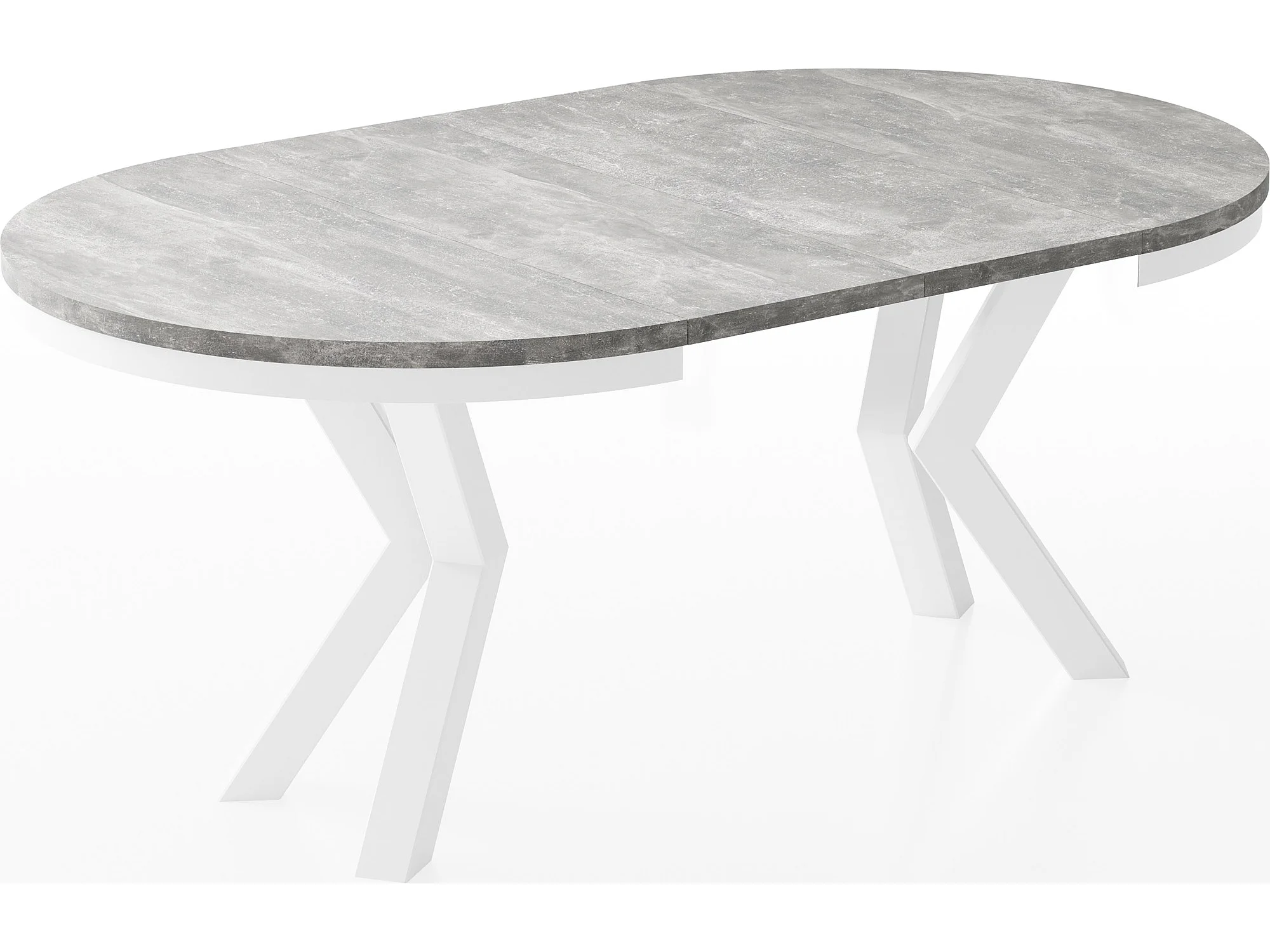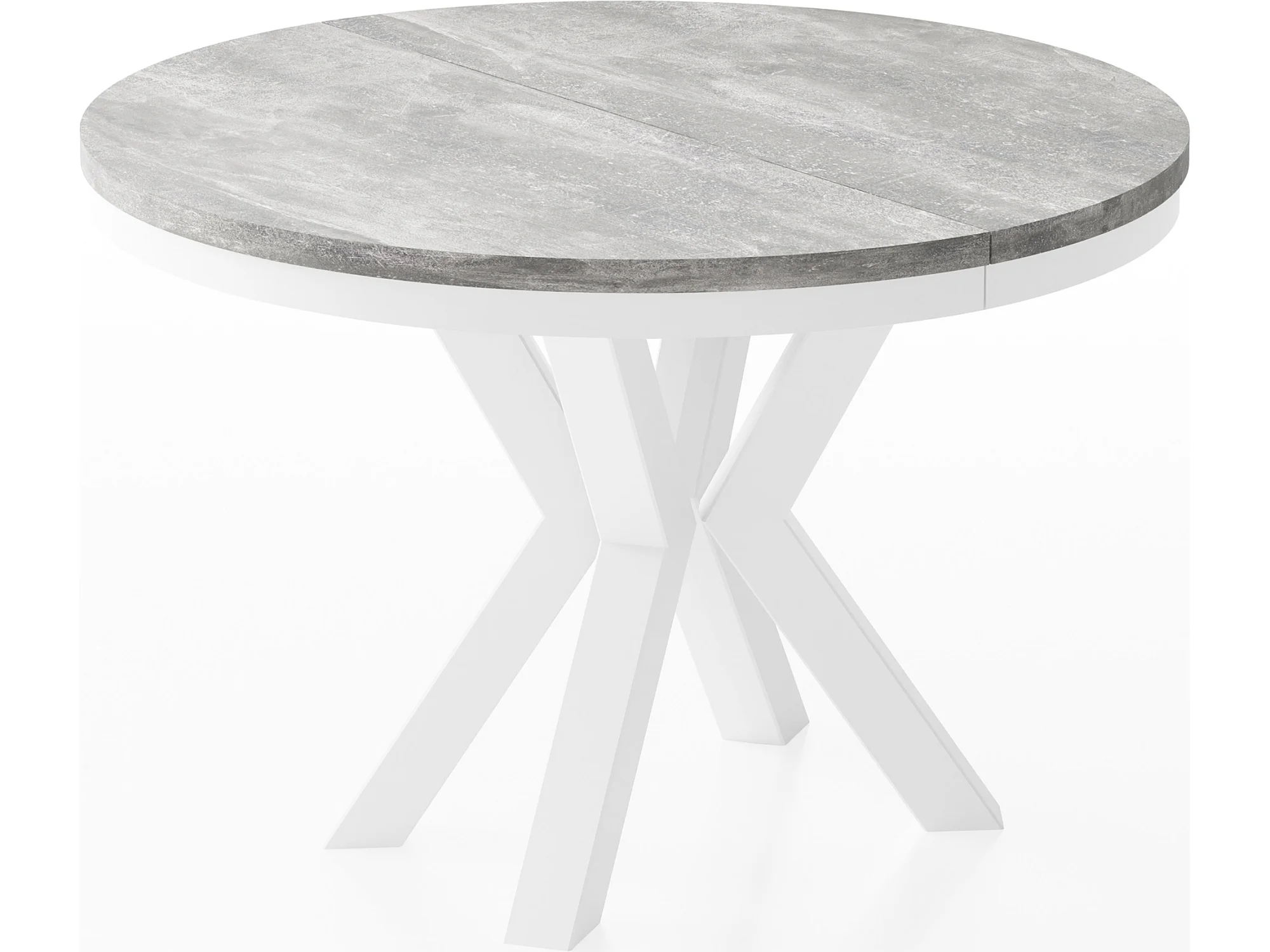 Table à Manger Ronde Extensible Style Loft - Table avec Pieds Métalliques Blancs - Table Gain de Place pour Salon - Béton Gris - 120 à 200 cm
