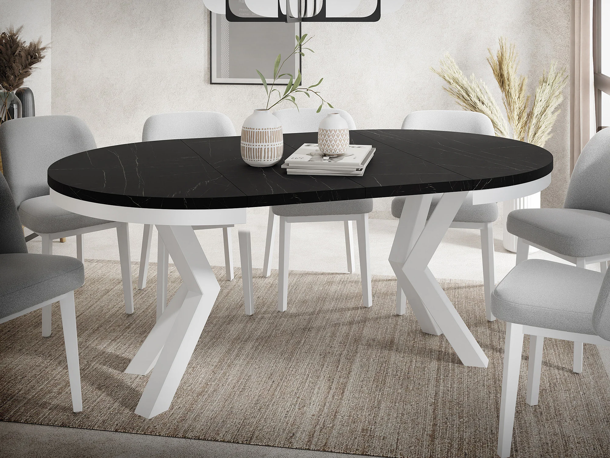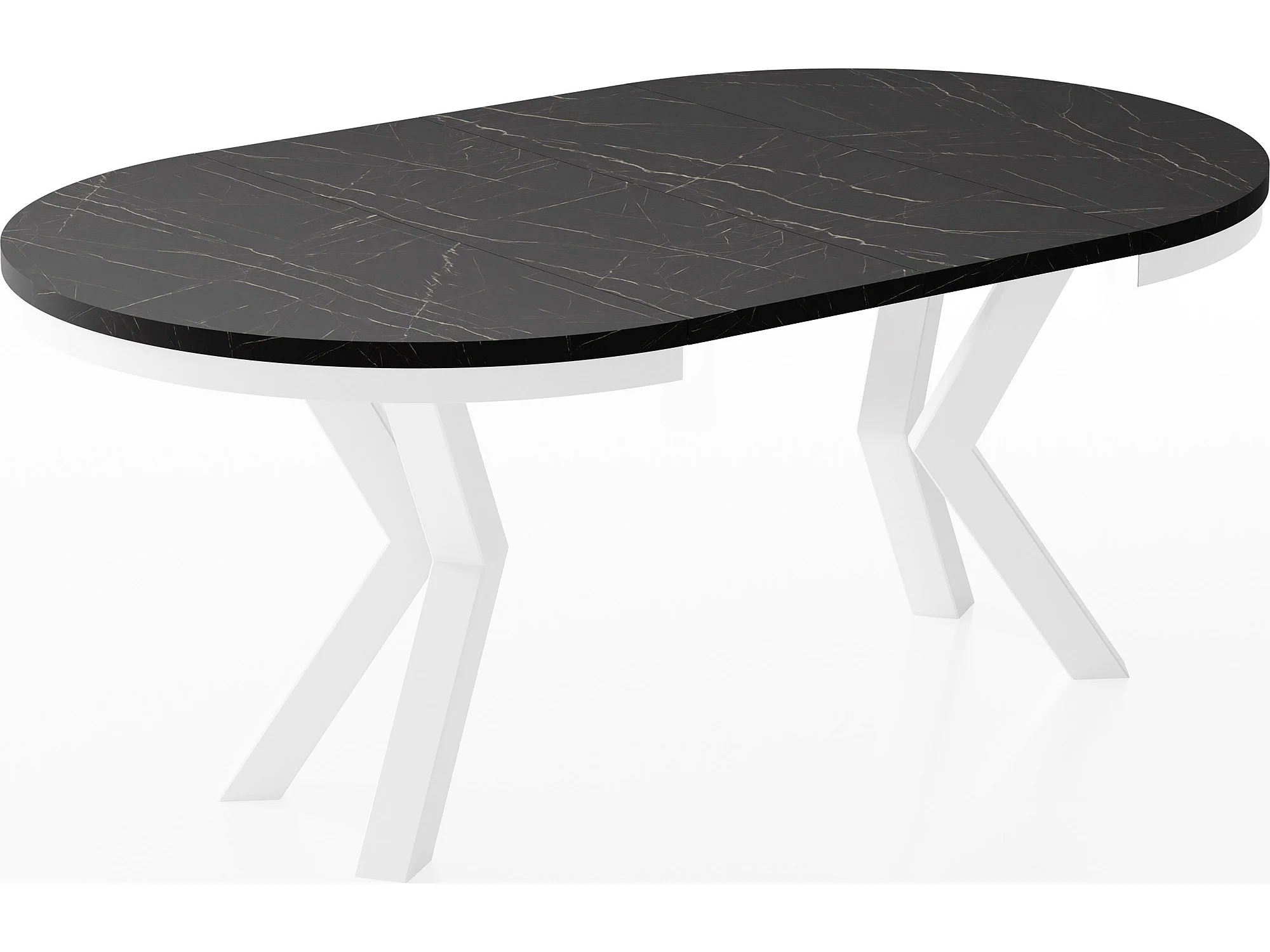Table à Manger Ronde Extensible Style Loft - Table avec Pieds Métalliques Blancs - Table Gain de Place pour Salon - Marbre Noir - 100 à 180 cm