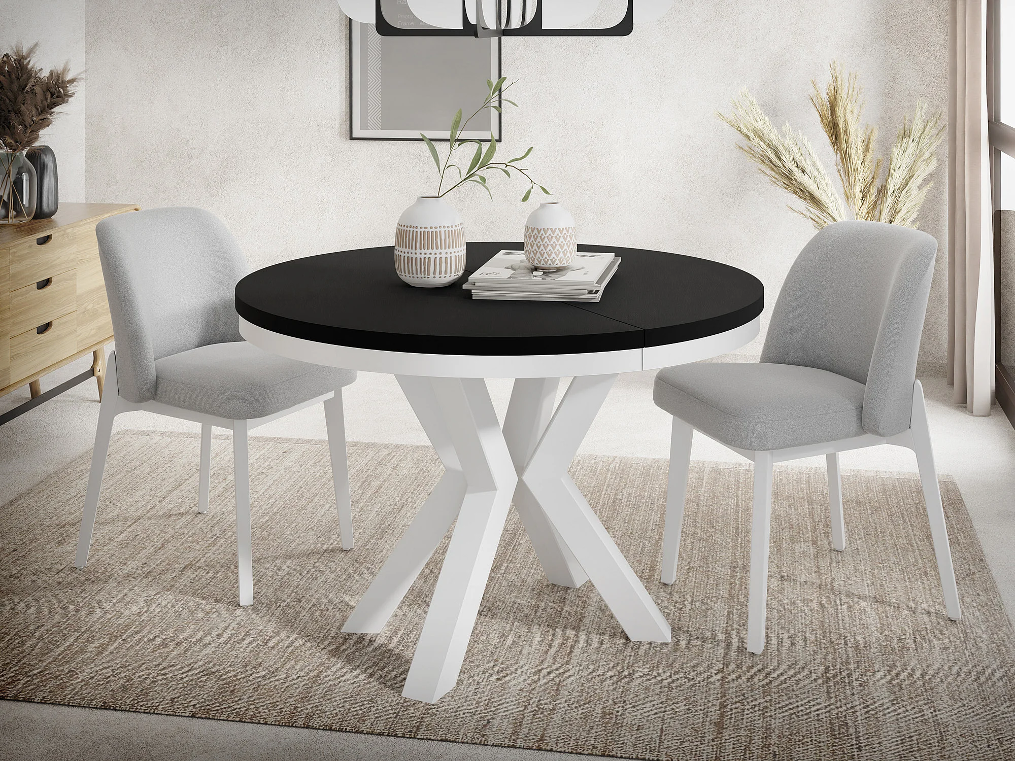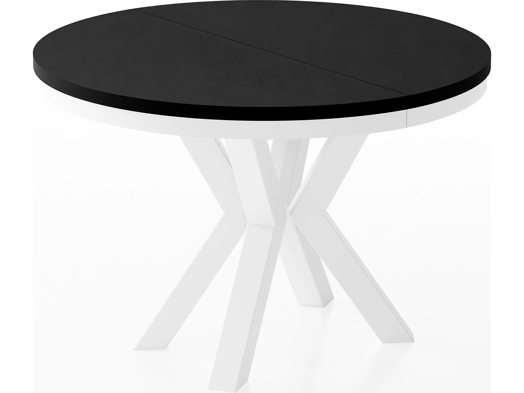 Table à Manger Ronde Extensible Style Loft - Table avec Pieds Métalliques Blancs - Table Gain de Place pour Salon - Noir - 120 à 200 cm