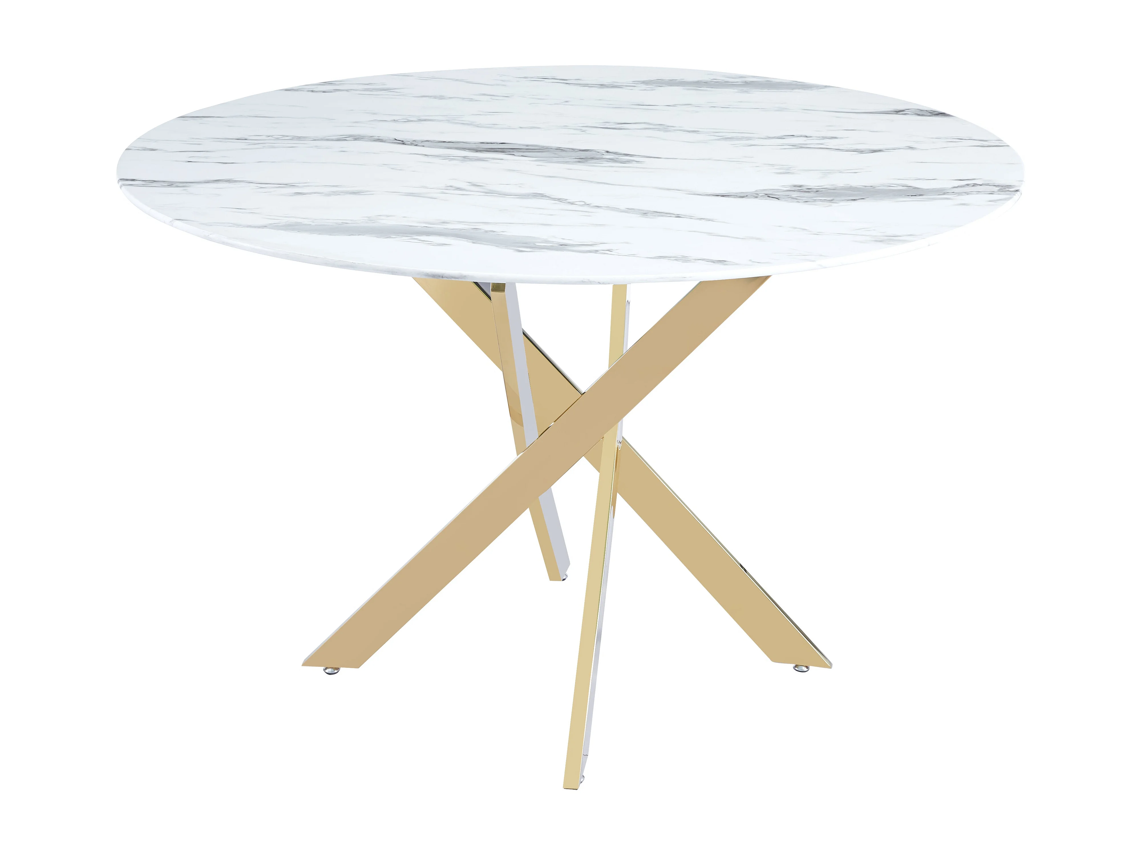 Table à manger ronde JESSICA MARBRE BLANC piedsGold 100 cm 4 couverts