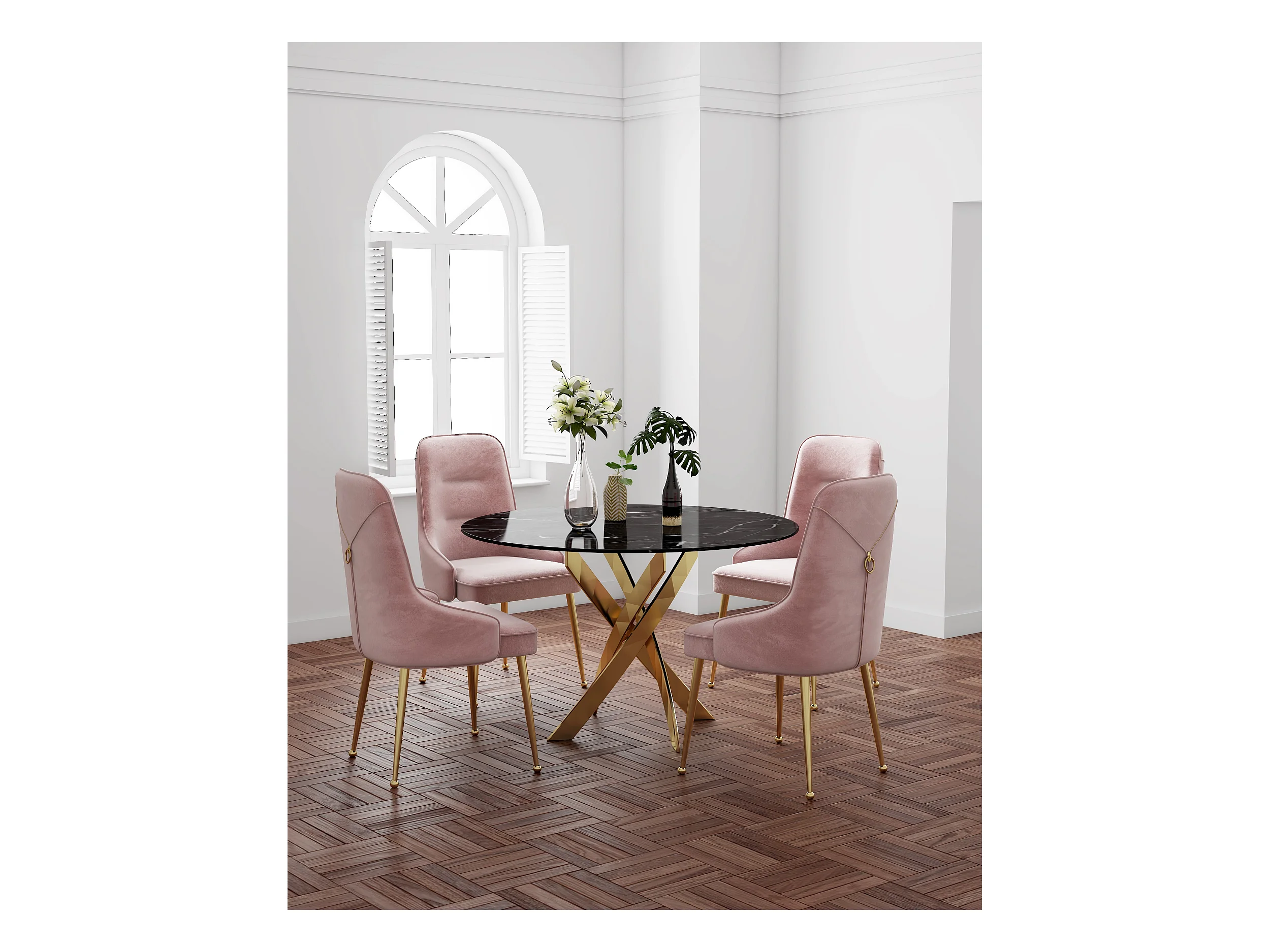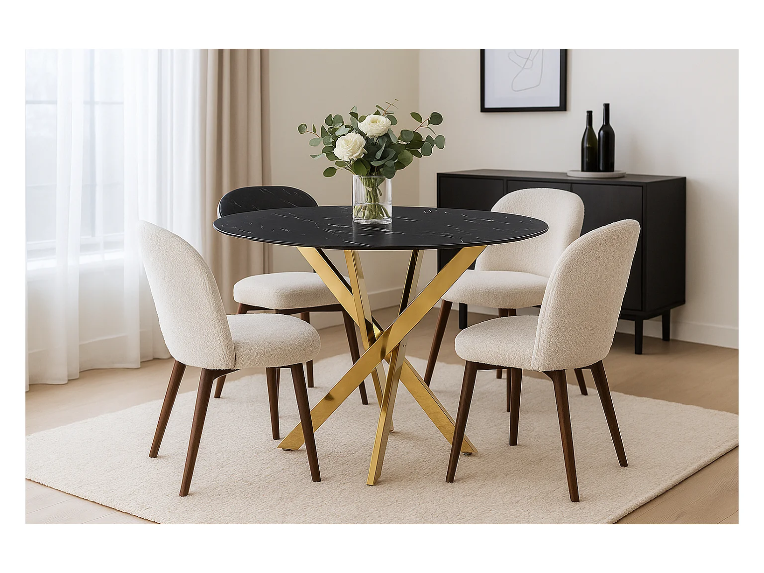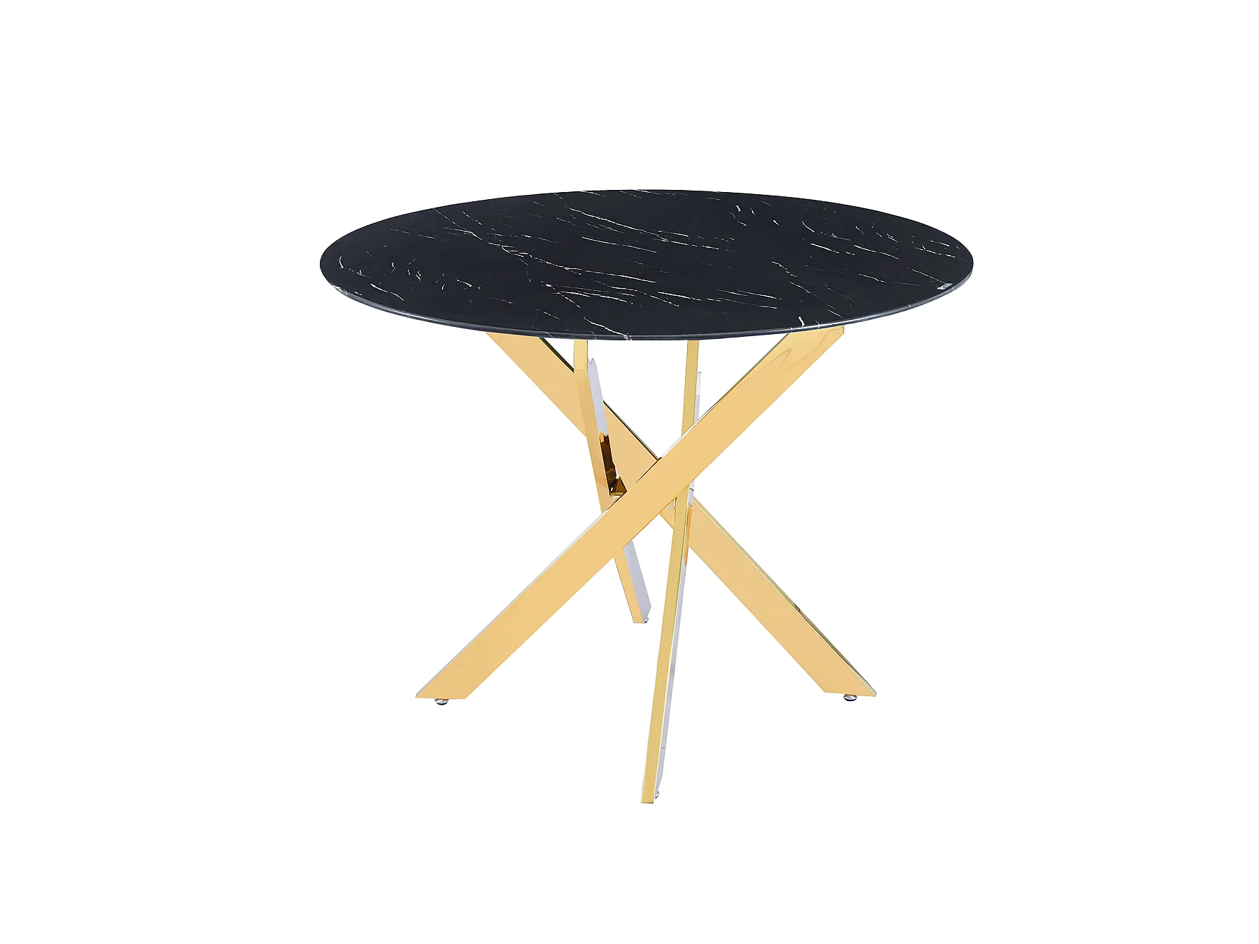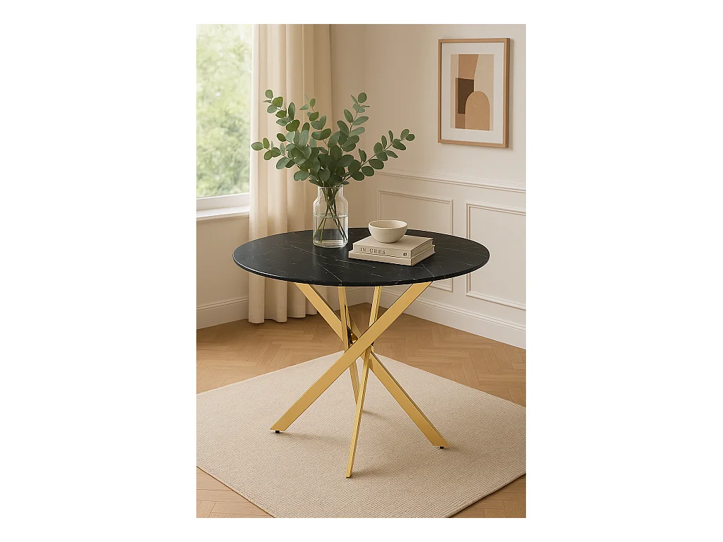 Table à manger ronde JESSICA MARBRE NOIR pieds Gold 100 cm 4 couverts