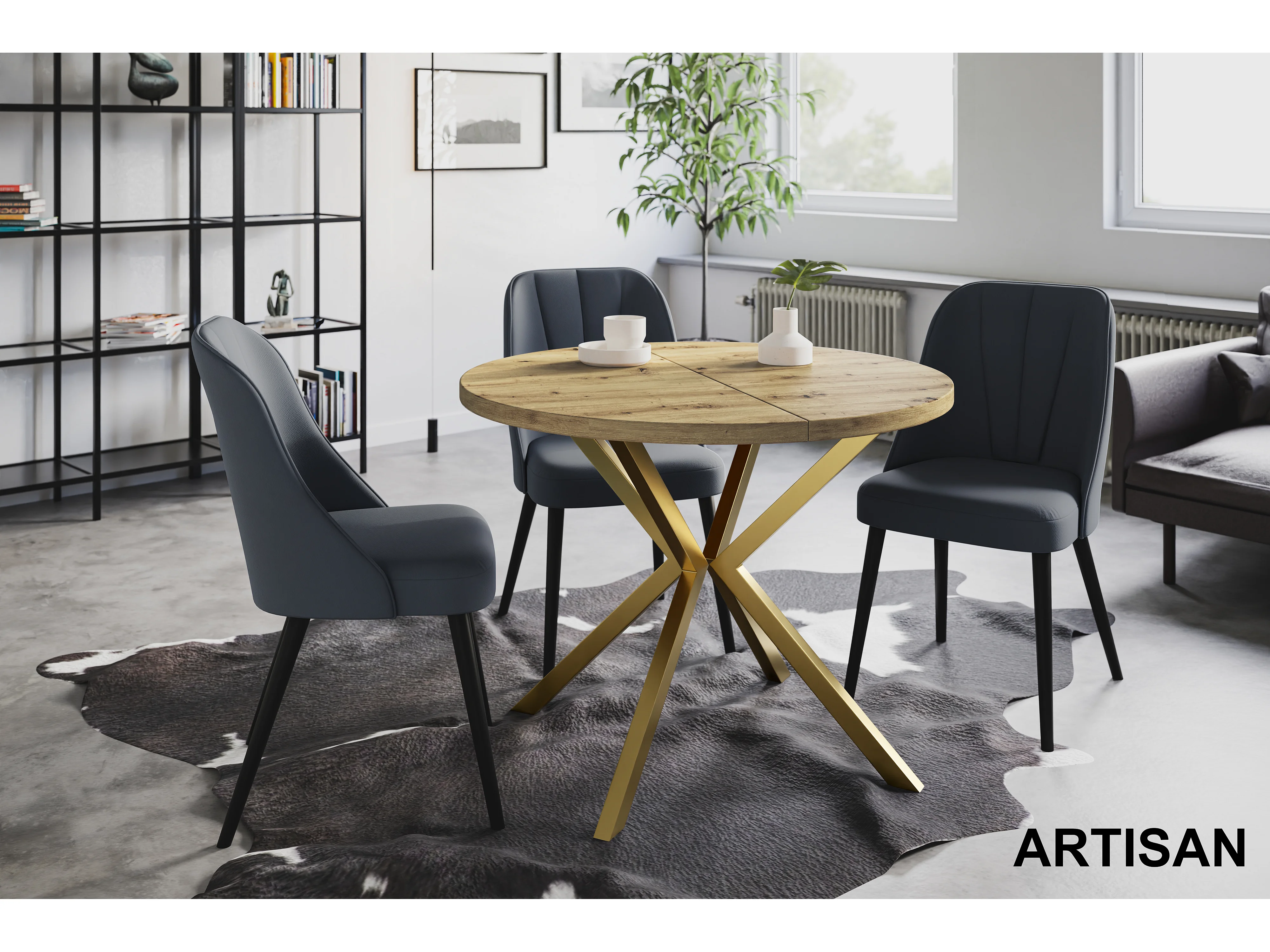 Table à manger ronde LITEN, table à rallonges Diamètre : 90 cm/170 cm, couleur de la table basse : brun mat, avec pieds métalliques couleur or