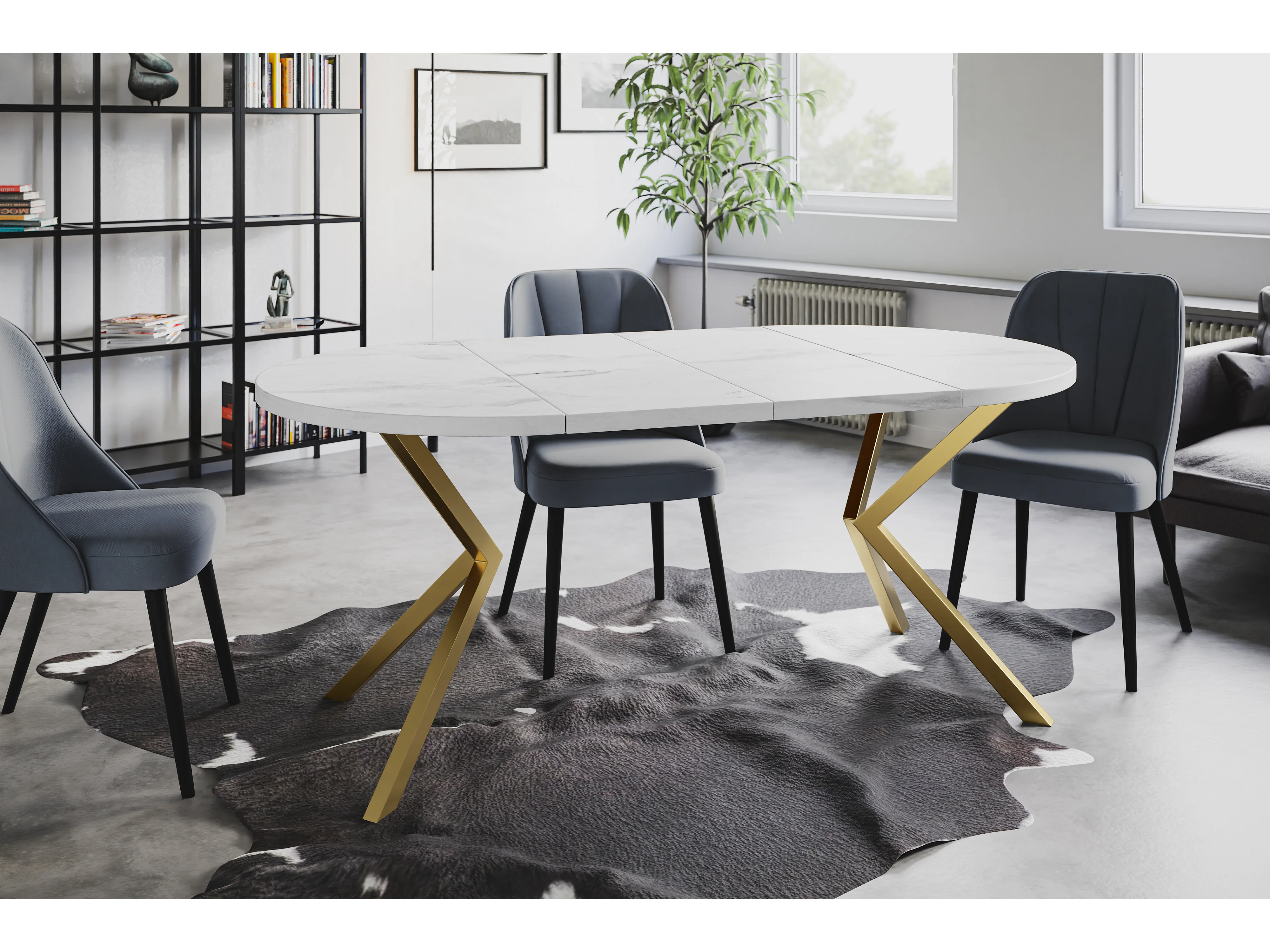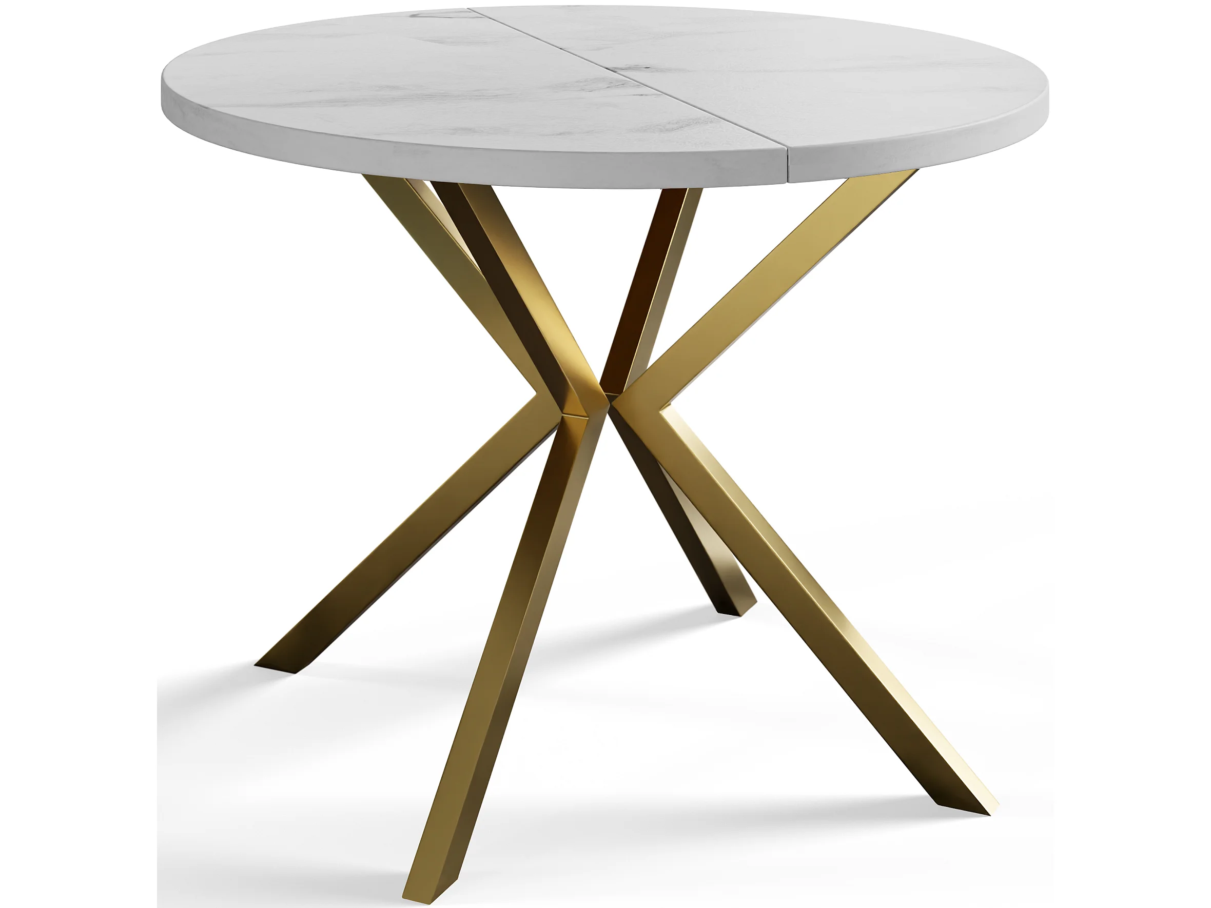 Table à manger ronde LITEN, table à rallonges Diamètre : 90 cm/170 cm, couleur de la table basse : marbre, avec pieds métalliques couleur or