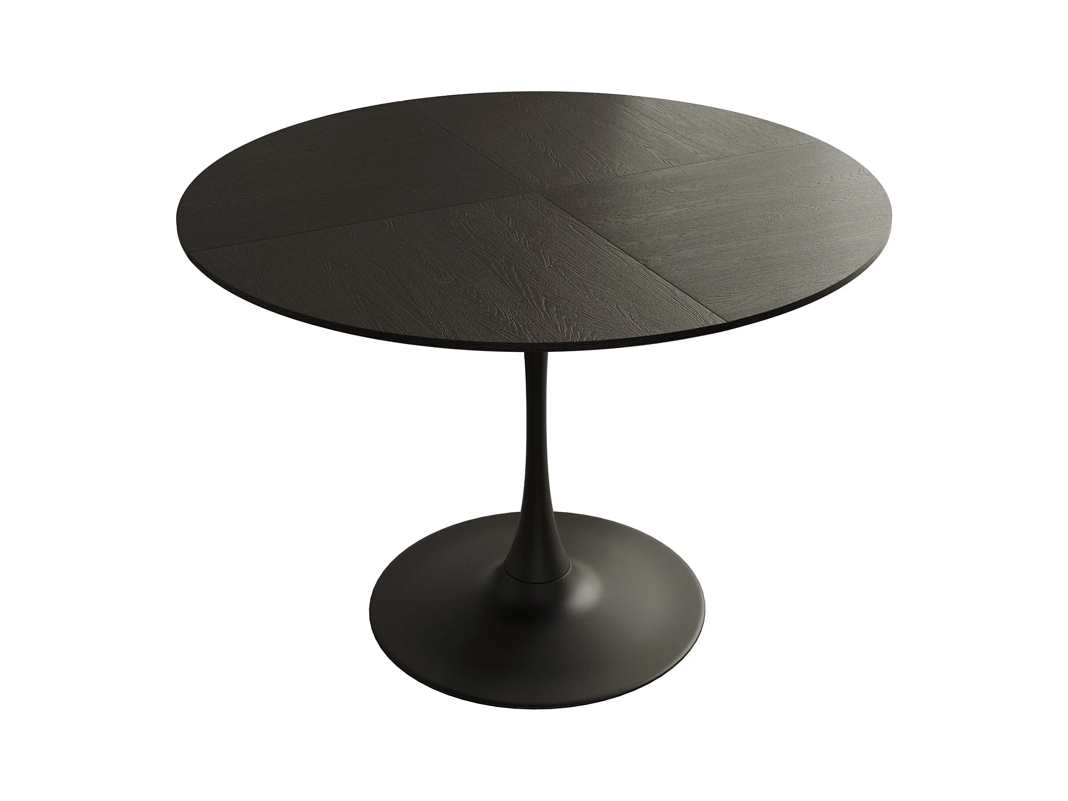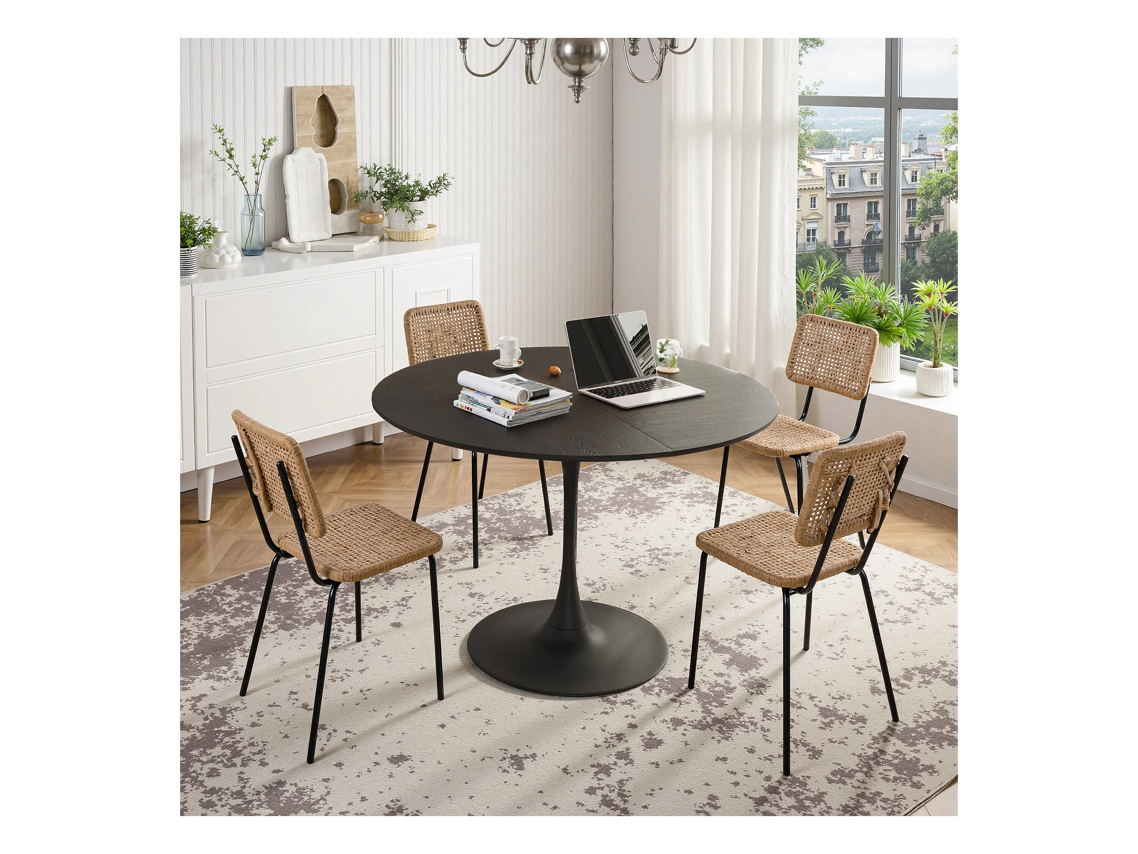 Table à Manger Ronde Moderne, Quatre Plateaux en MDF, Base Métallique, Noire (120x120x75 cm)