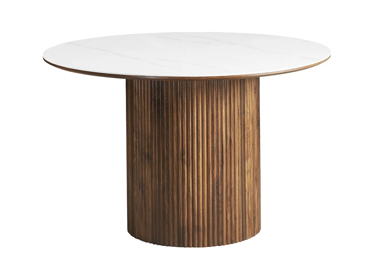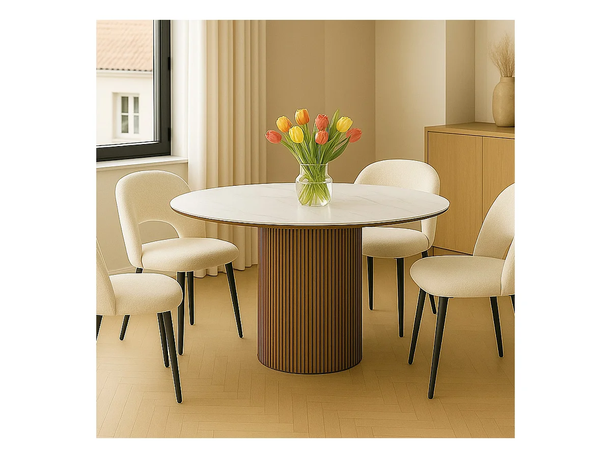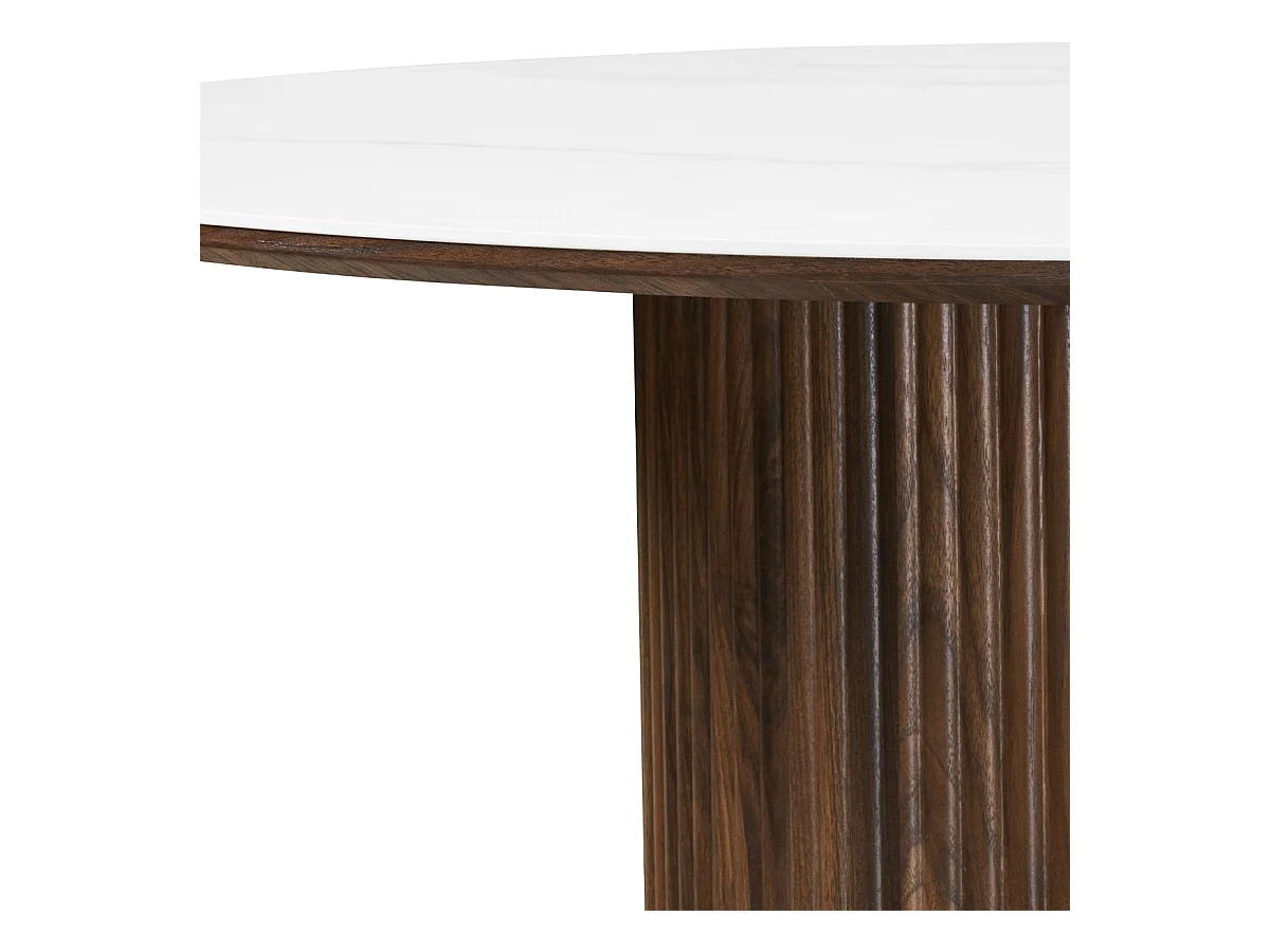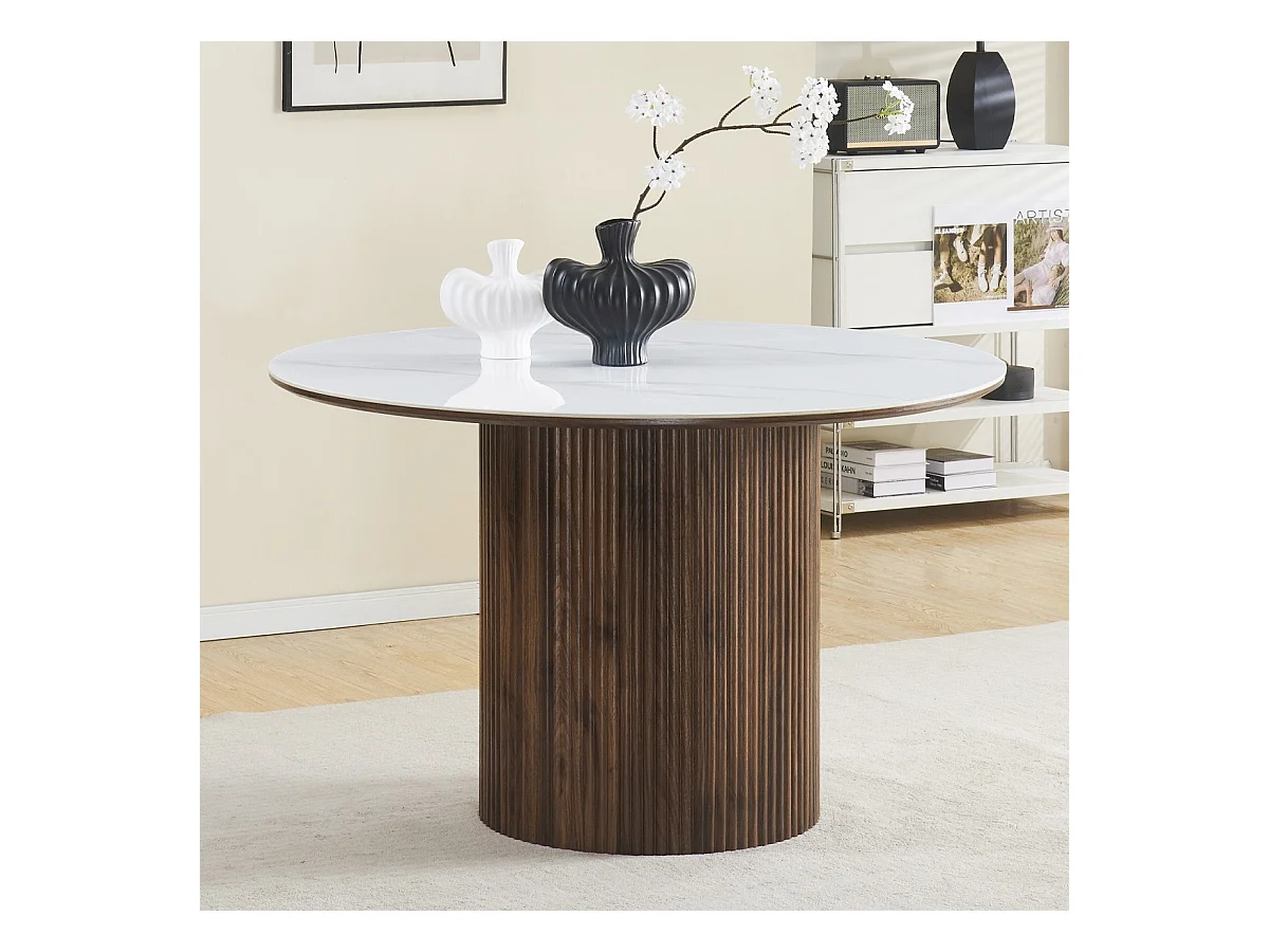 Table à manger ronde plateau en céramique effet marbre et noyer 6 personnes Ø120 cm - Mira