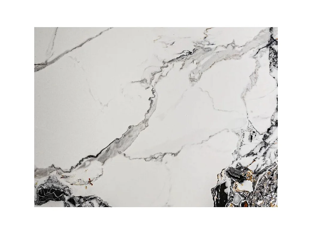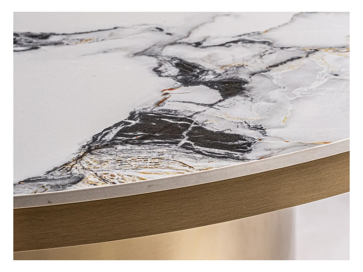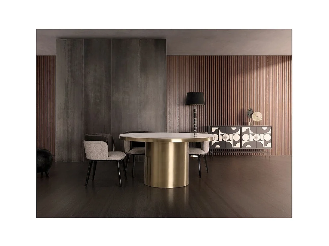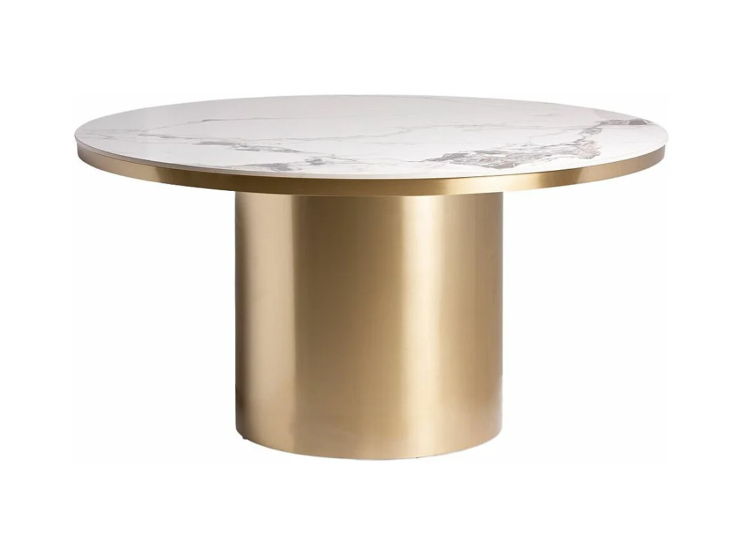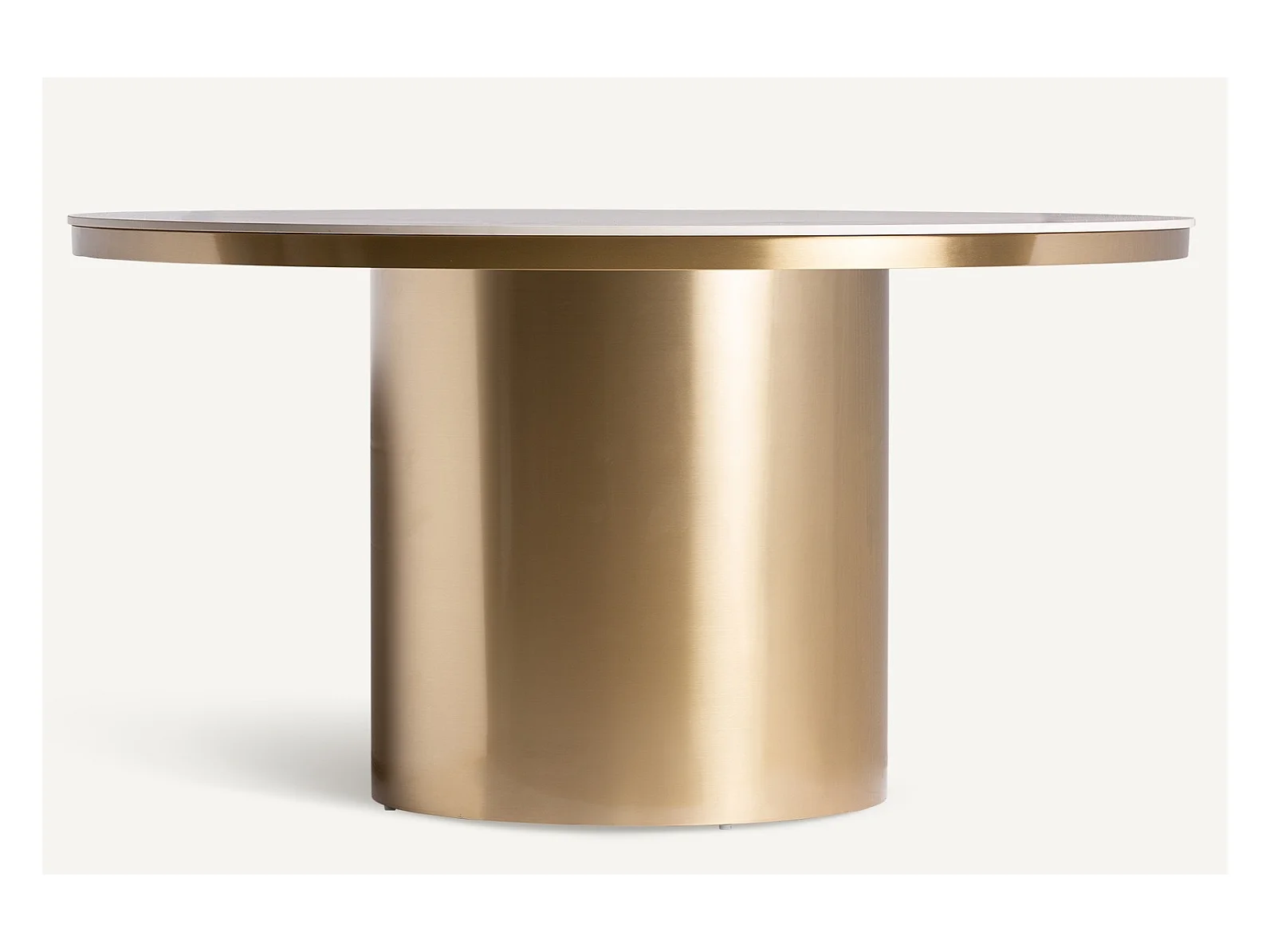 Table à manger ronde porcelaine et acier doré Tikah 150cm