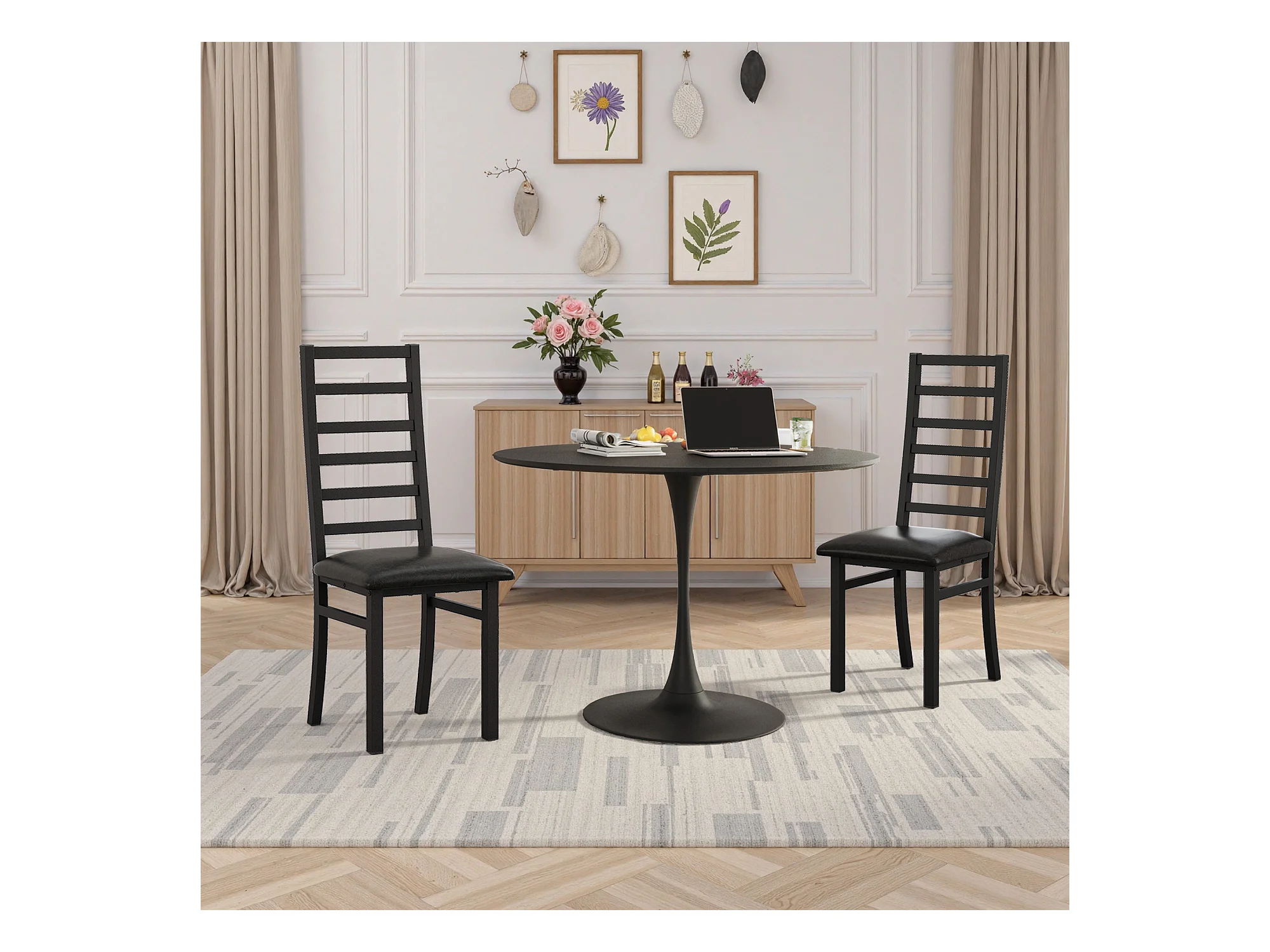 Table à manger ronde - Table à manger noir avec piètement en métal et plateau en bois massif - plateau quatre pièces