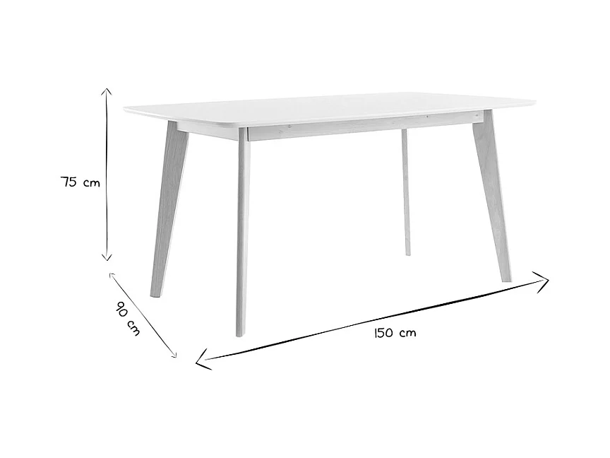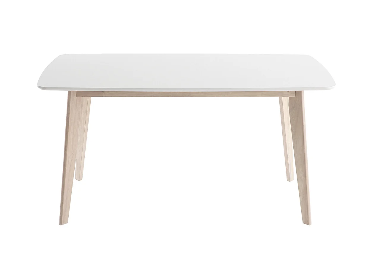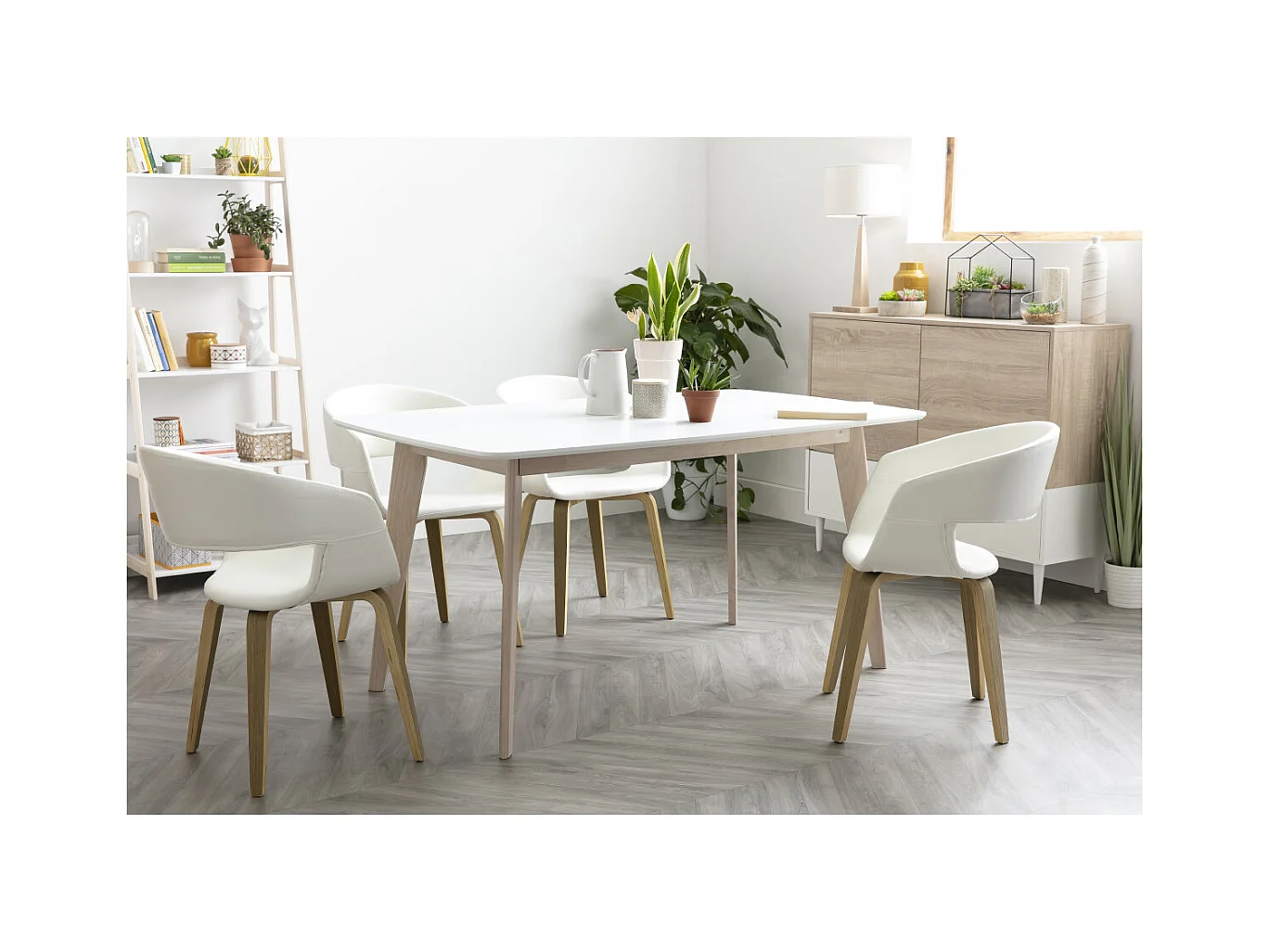 Table à manger scandinave blanc et bois clair rectangulaire L150 cm LEENA