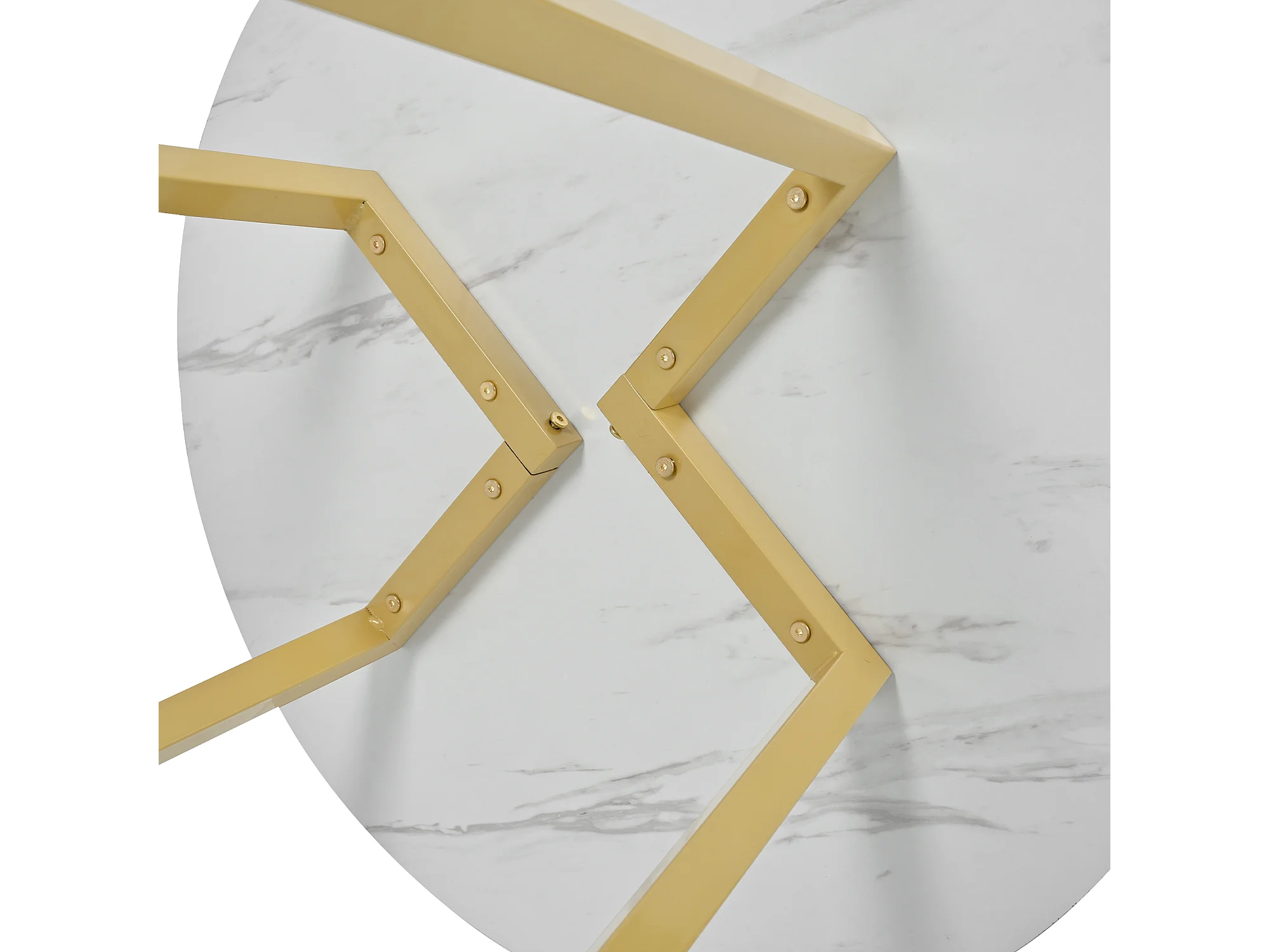 Table à manger ronde 100x100x76 cm pour 4 personnes - pied en métal doré - plateau mdf motif marbre blanc