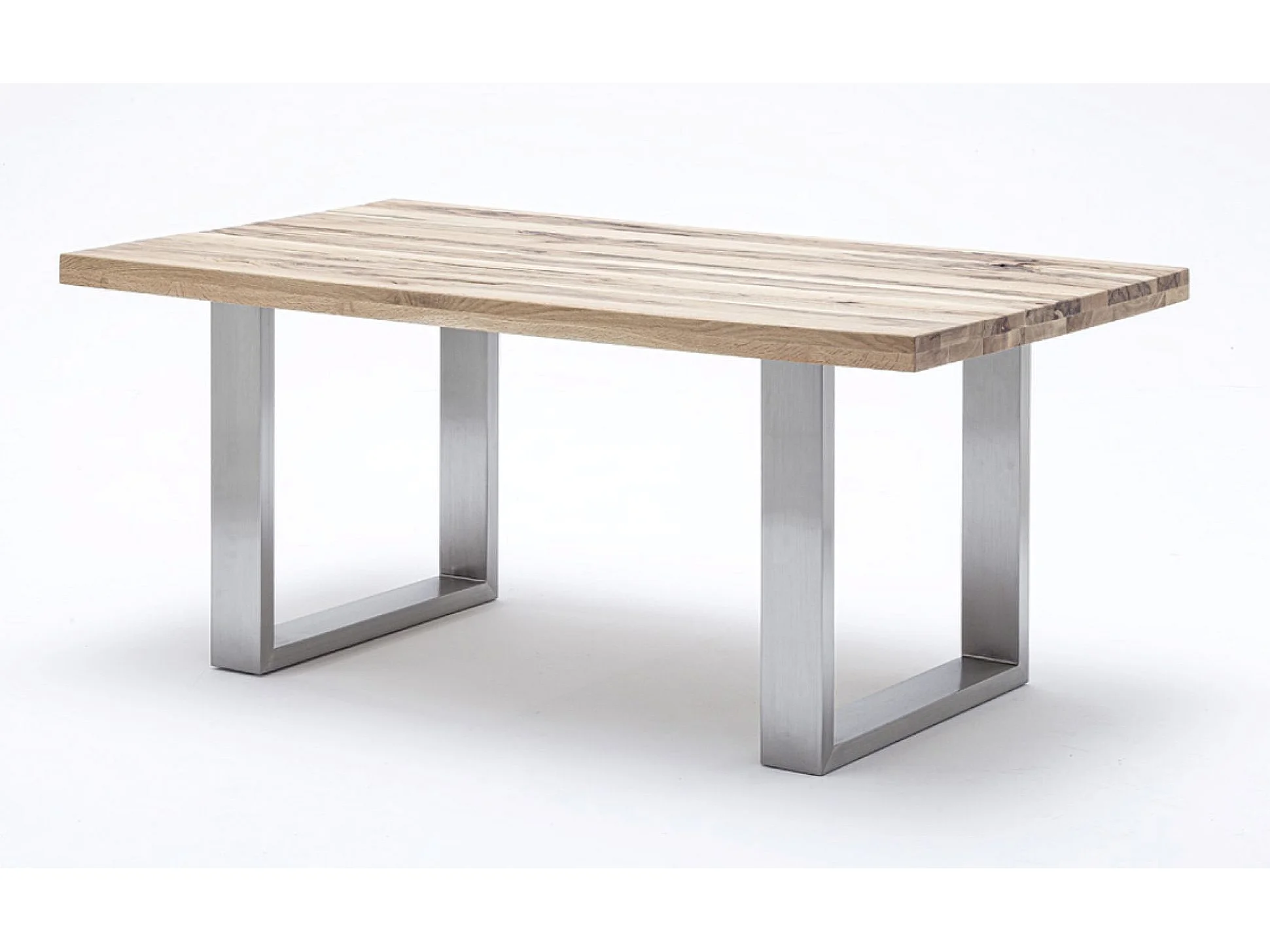 Table à manger, table de repas coloris chêne blanchis , pieds en acier inoxydable - Longueur 200 x Hauteur 76 x Profondeur 100 cm